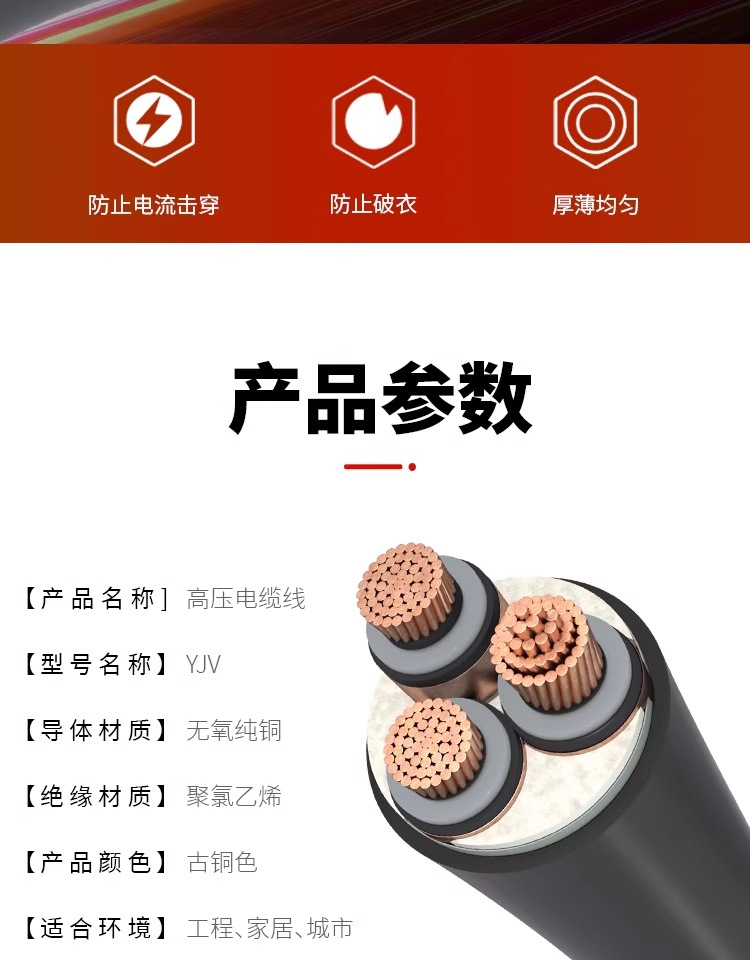 YJV22 구리 코어 고전압 케이블 26/35kv 국가 표준 3 코어 * 185/240/300/400 평방 갑옷 케이블스토어 가기