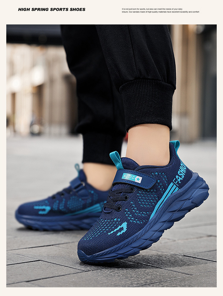 제조업체는 소년 운동화 2025 새로운 플라이 짠 경량 크로스 보더 캐주얼 중대형 어린이 학생 운동화 트렌드를 공급합니다.