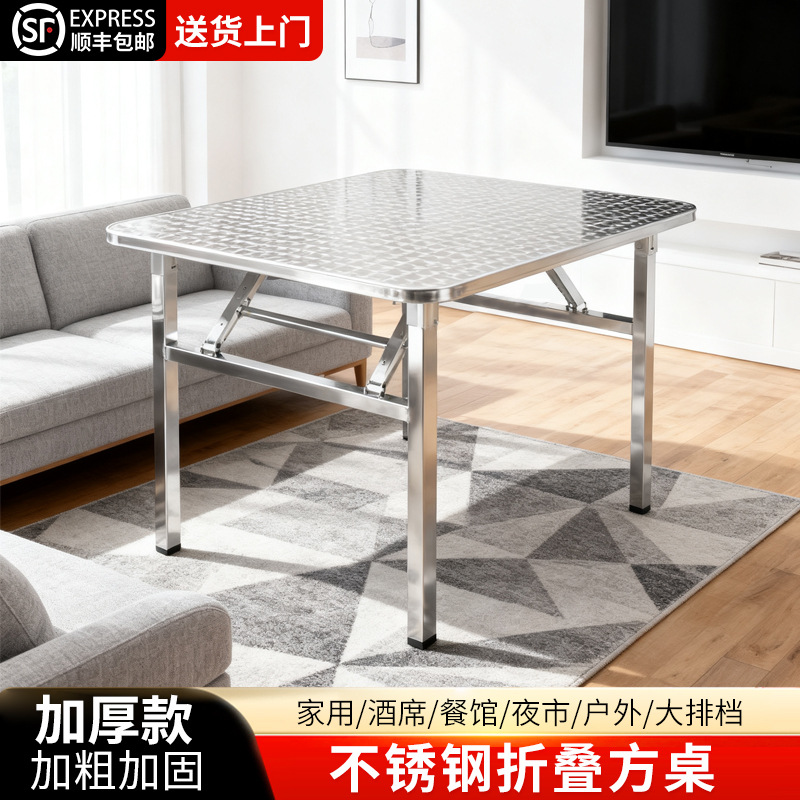 스테인레스 스틸 접이식 사각형 테이블 홈 주방 기숙사 임대 학습 식탁 밀크 티 먹는 스톨 캠핑 바베큐 테이블스토어 가기
