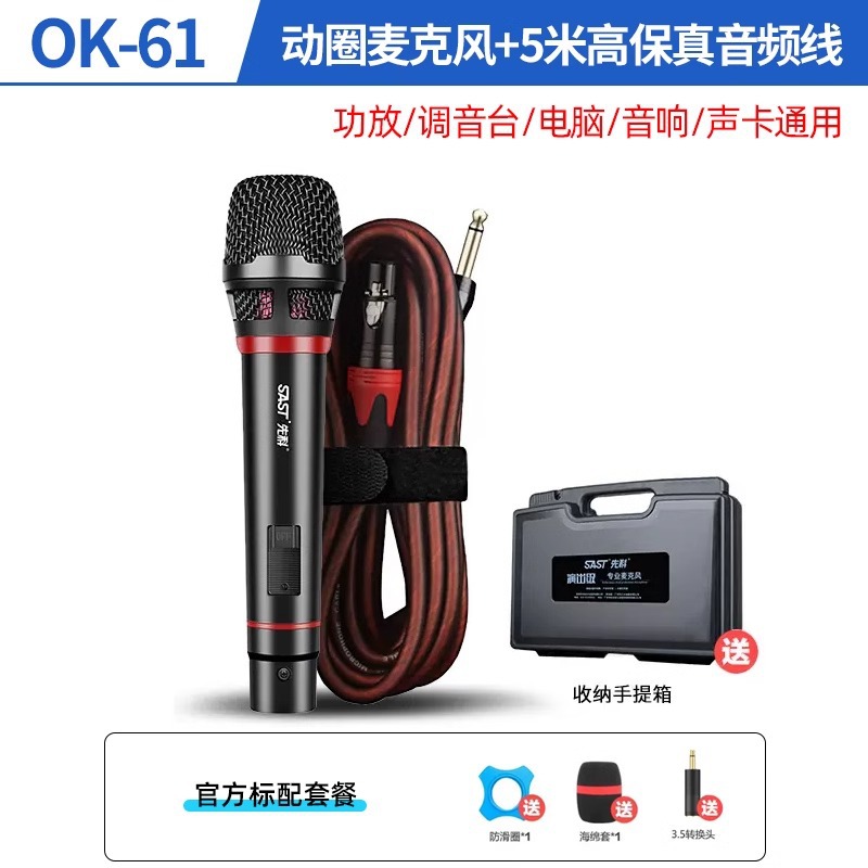 • OK-61 다이나믹 마이크 + 5m선 + 수납가방 [금속재질, 고화질 음질, 강력한 하울링 방지]