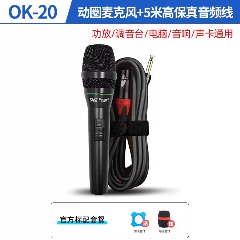 • OK-20 [블랙] 다이나믹 마이크 + 5m선 [금속재질, 고화질 음질, 하울링 방지]