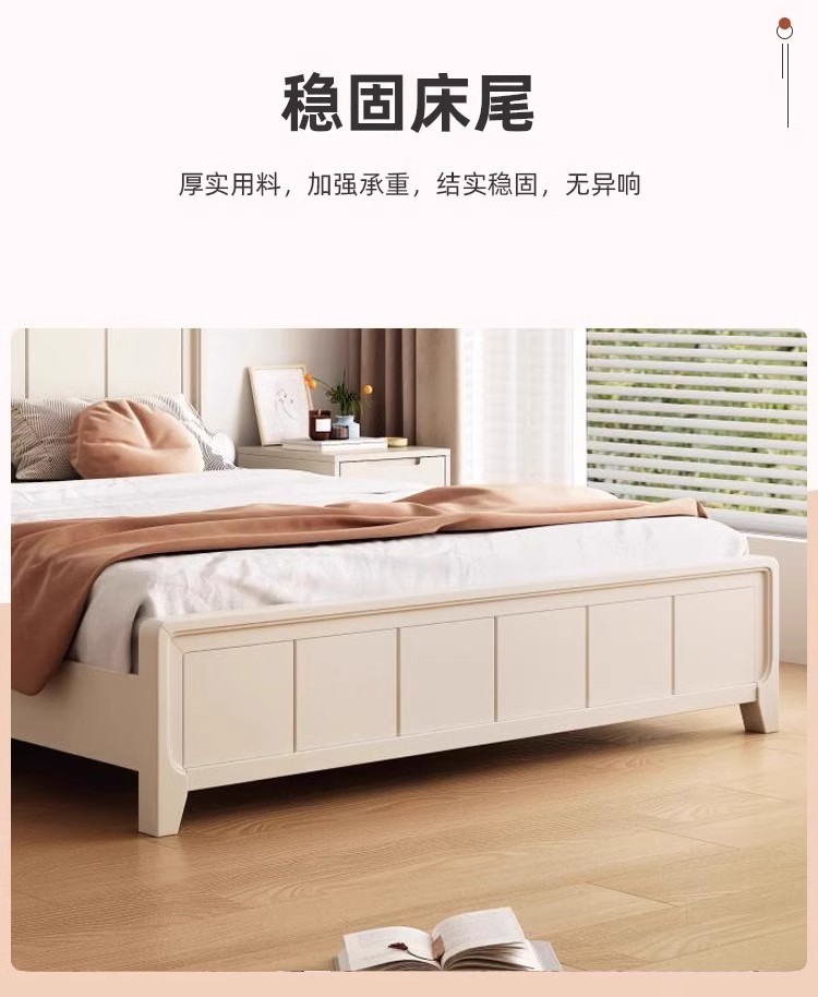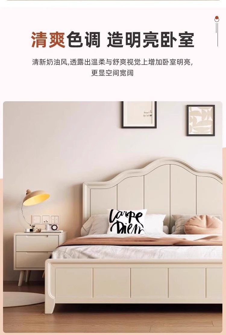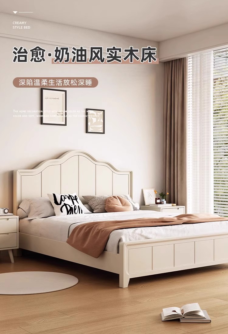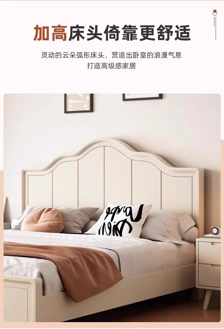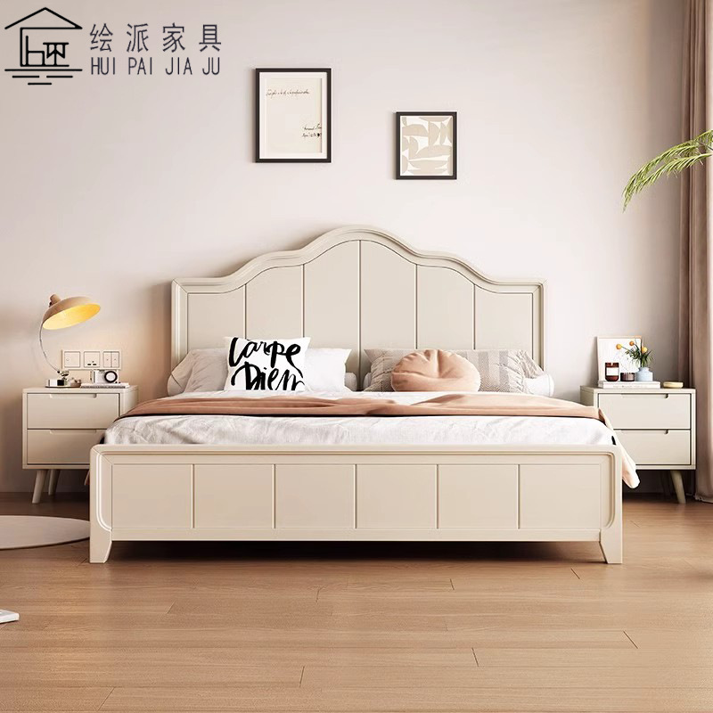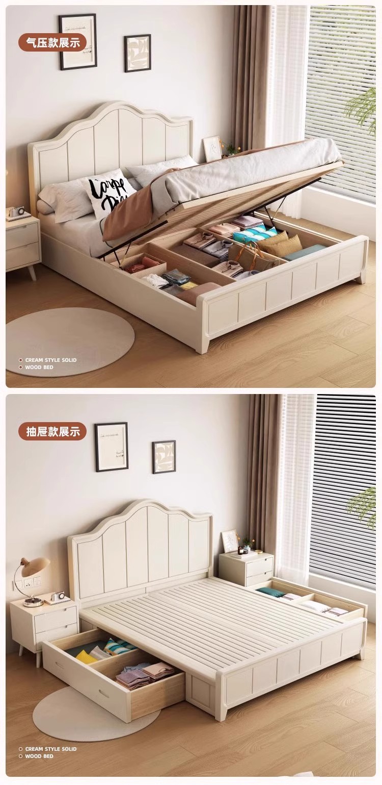 북유럽 흰색 단단한 나무 침대 현대 간단한 1.5m 싱글 및 더블 침대 크림 스타일 공주 침대 1.8m 마스터 침실 수납 침대