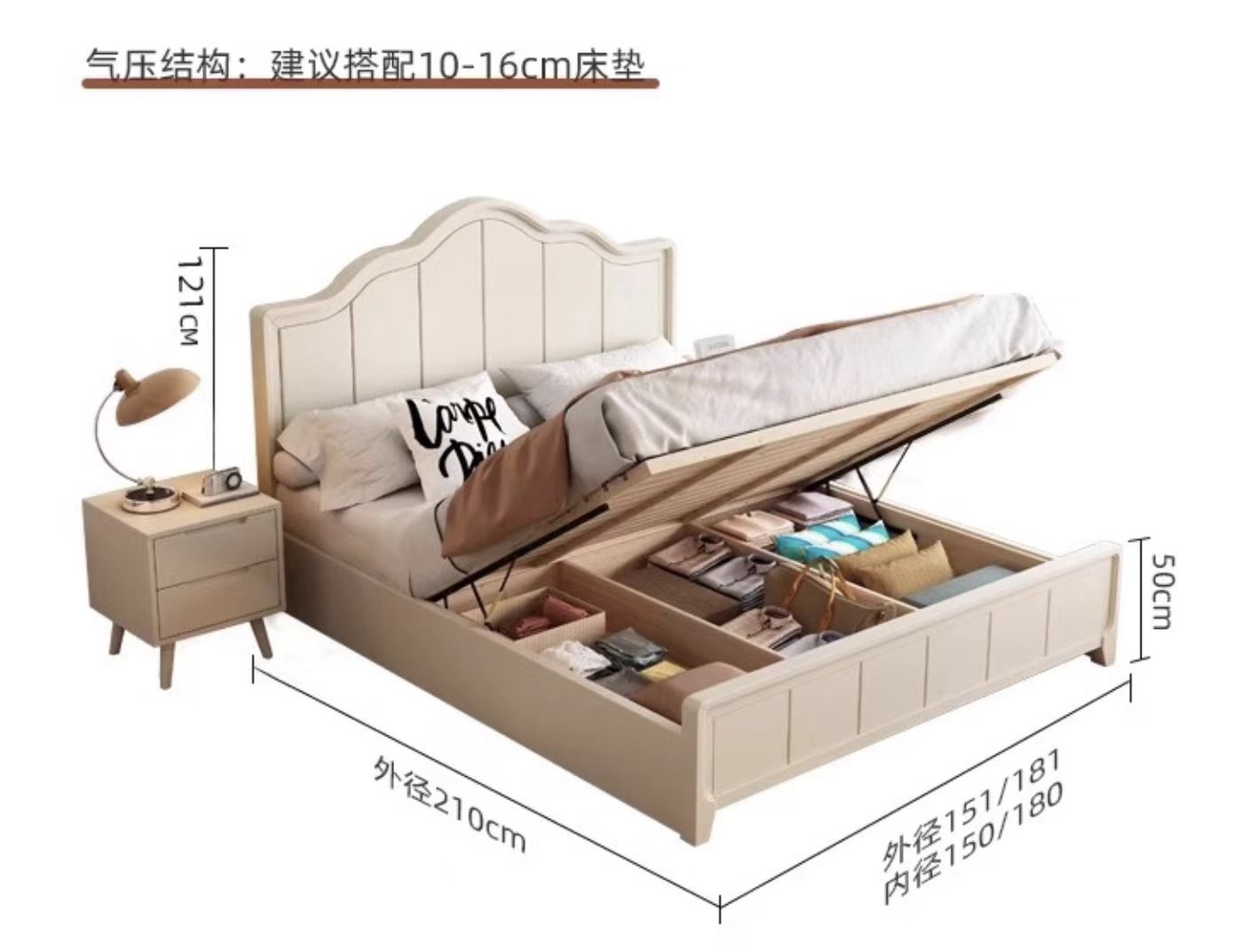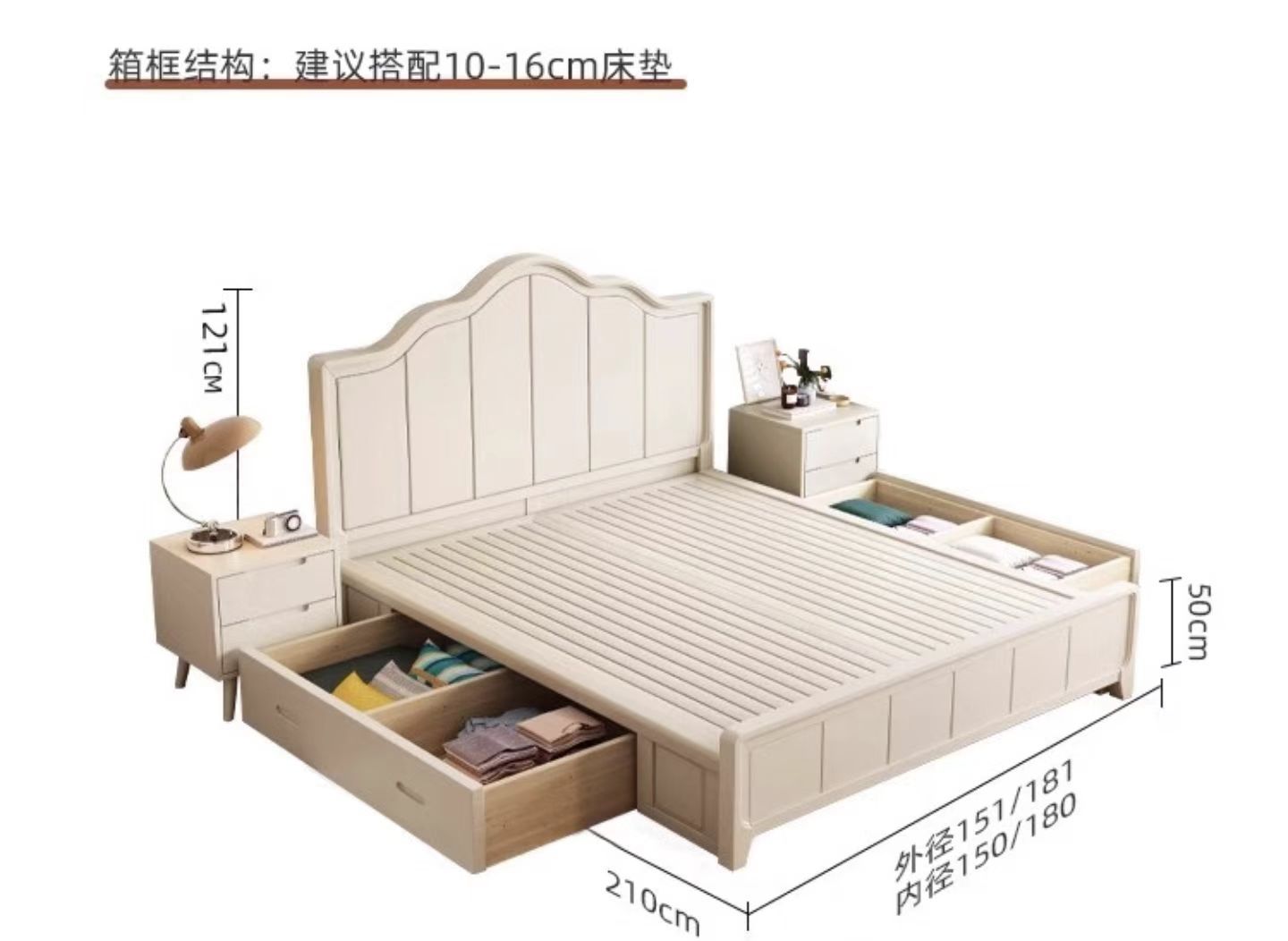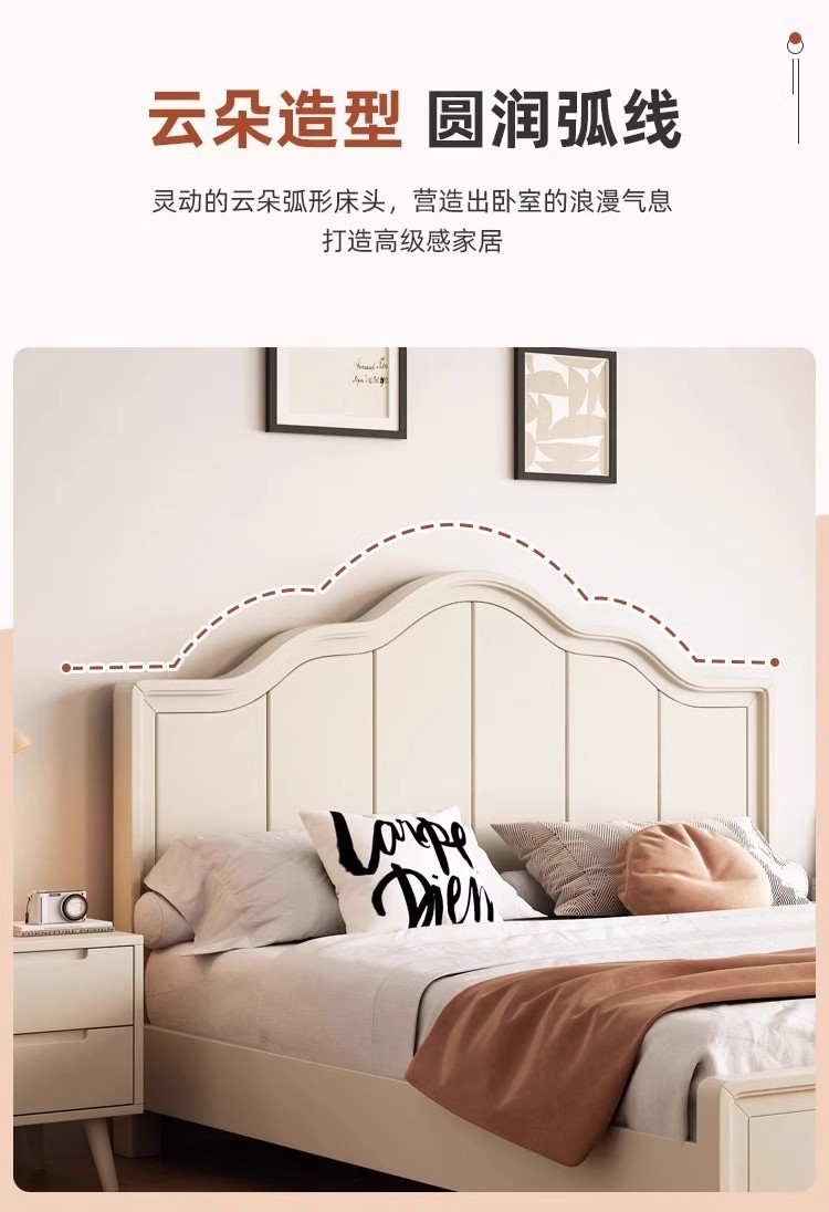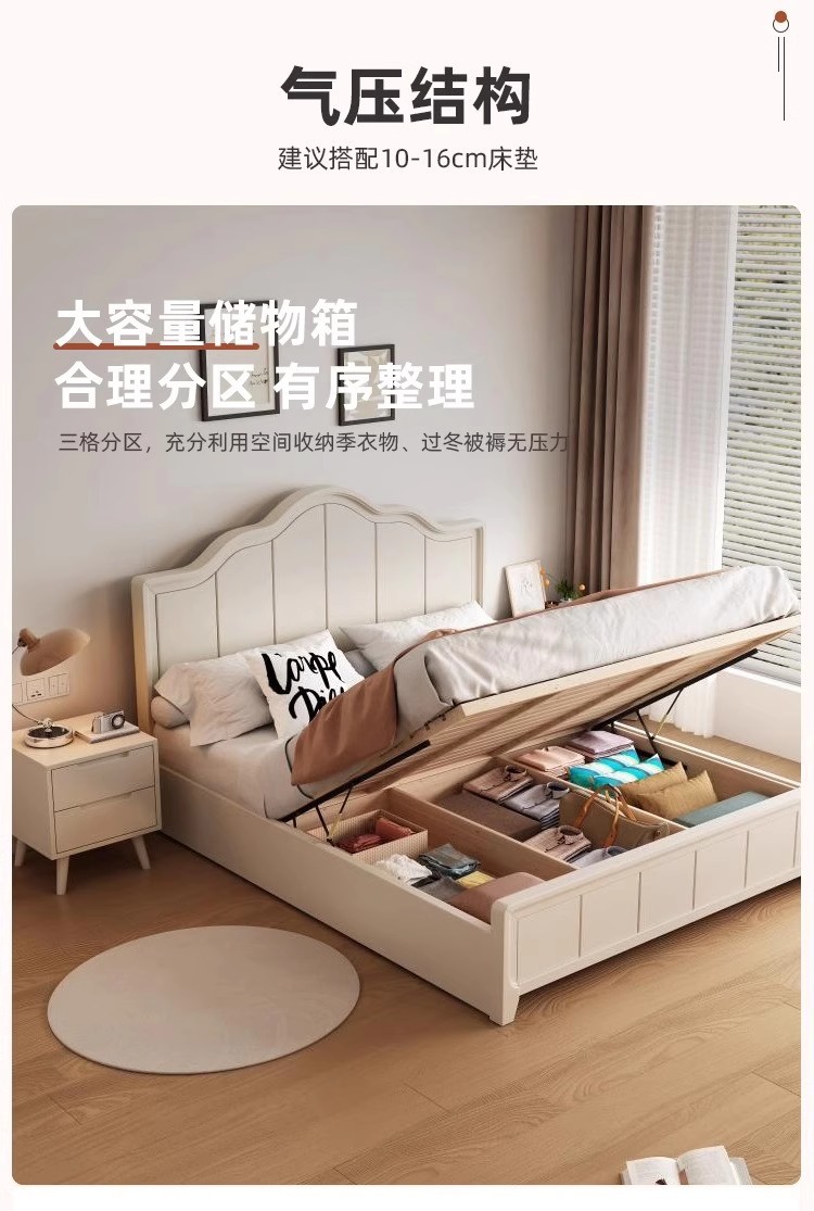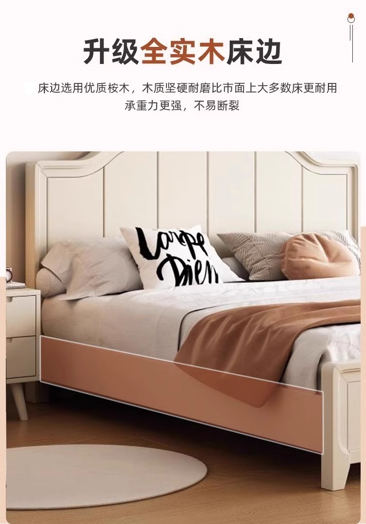북유럽 흰색 단단한 나무 침대 현대 간단한 1.5m 싱글 및 더블 침대 크림 스타일 공주 침대 1.8m 마스터 침실 수납 침대