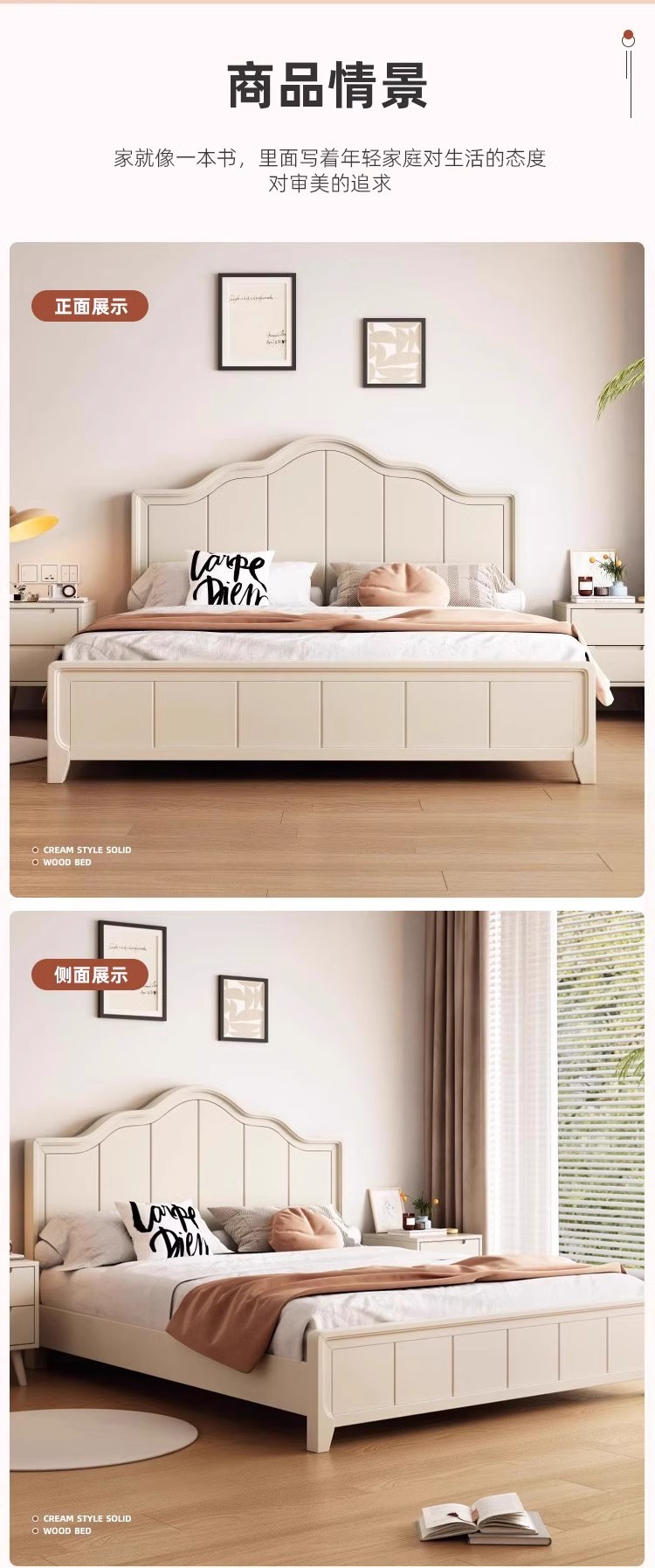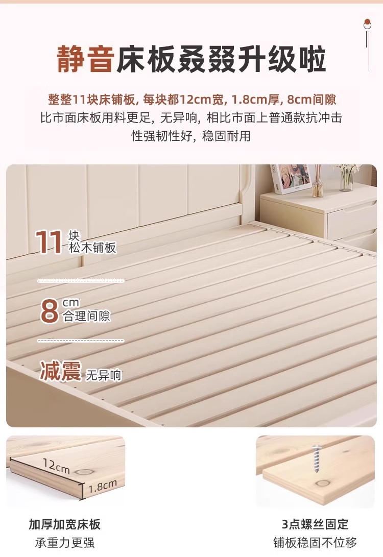 북유럽 흰색 단단한 나무 침대 현대 간단한 1.5m 싱글 및 더블 침대 크림 스타일 공주 침대 1.8m 마스터 침실 수납 침대스토어 가기
