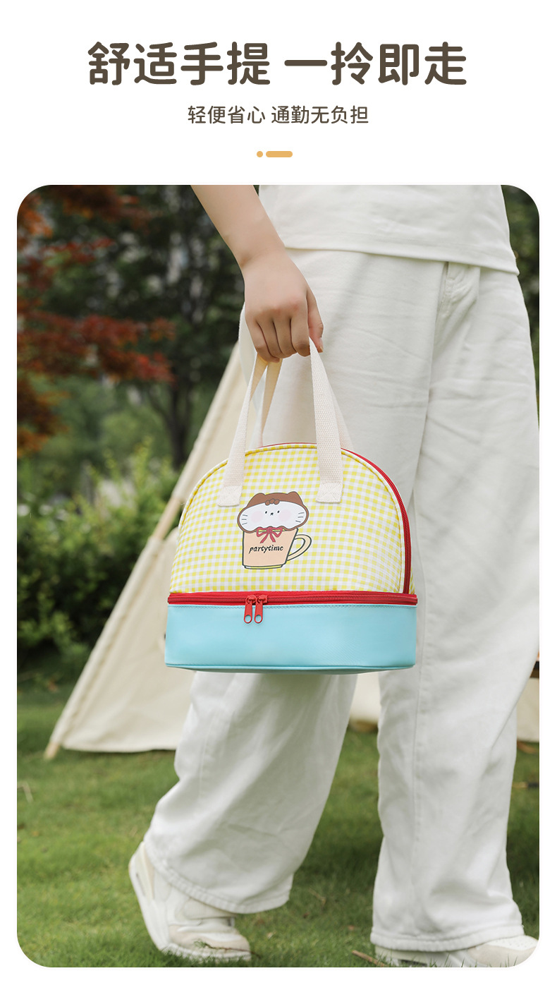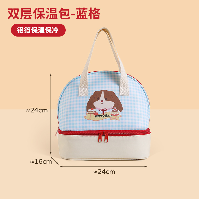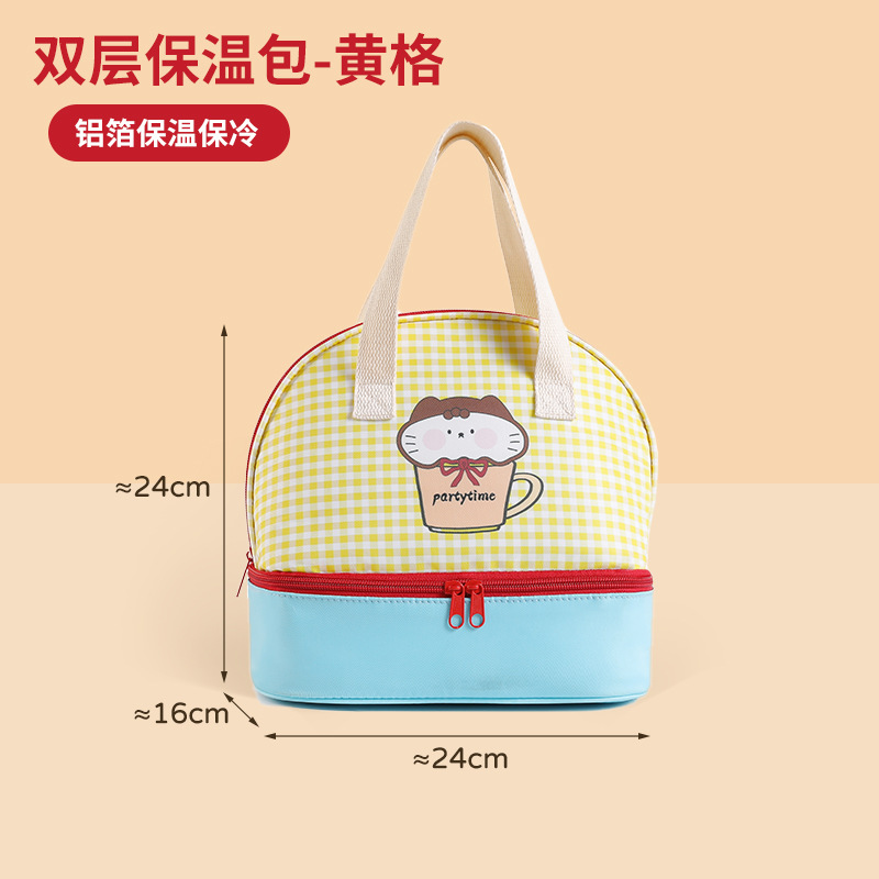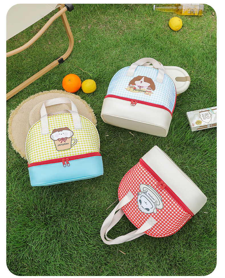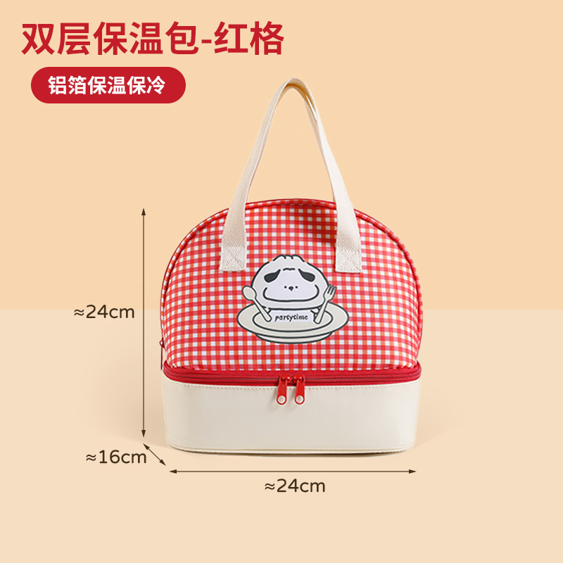 신입생 도시락 가방, 더블 레이어 만화 격자 무늬 도시락 가방, 직장인 도시락 가방, 야외 보온 가방스토어 가기