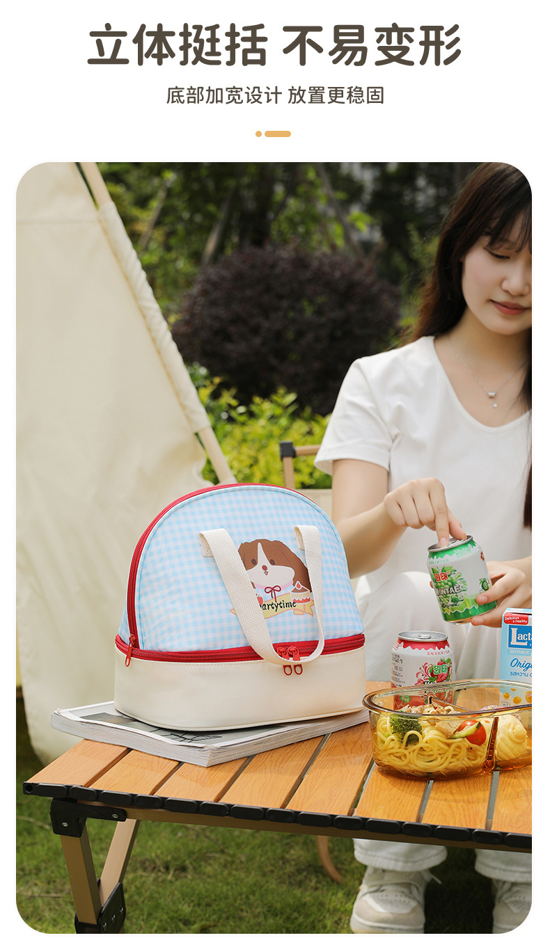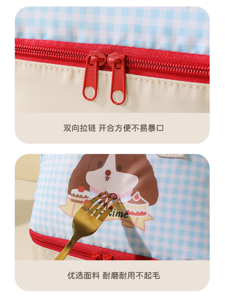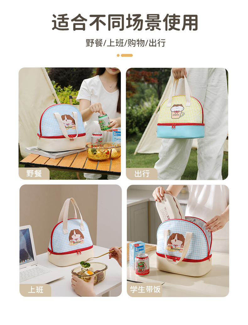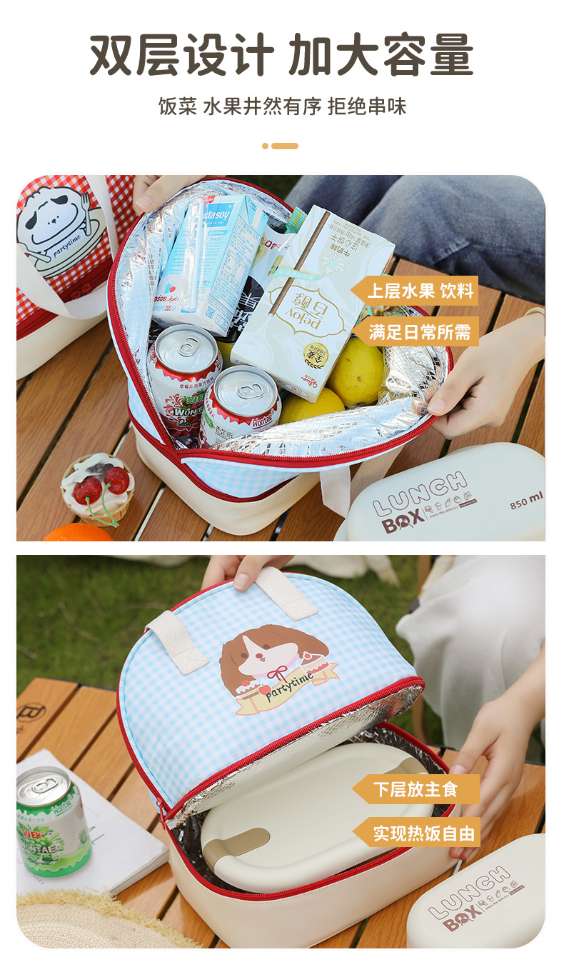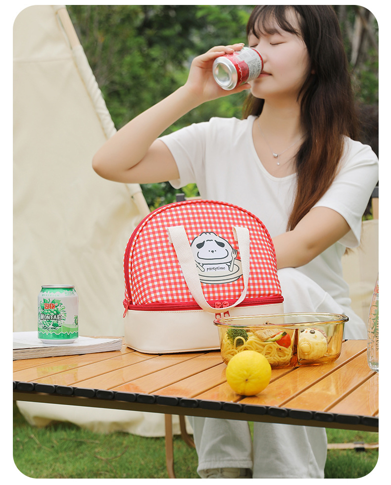 신입생 도시락 가방, 더블 레이어 만화 격자 무늬 도시락 가방, 직장인 도시락 가방, 야외 보온 가방스토어 가기