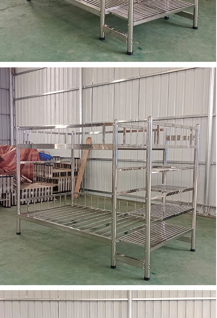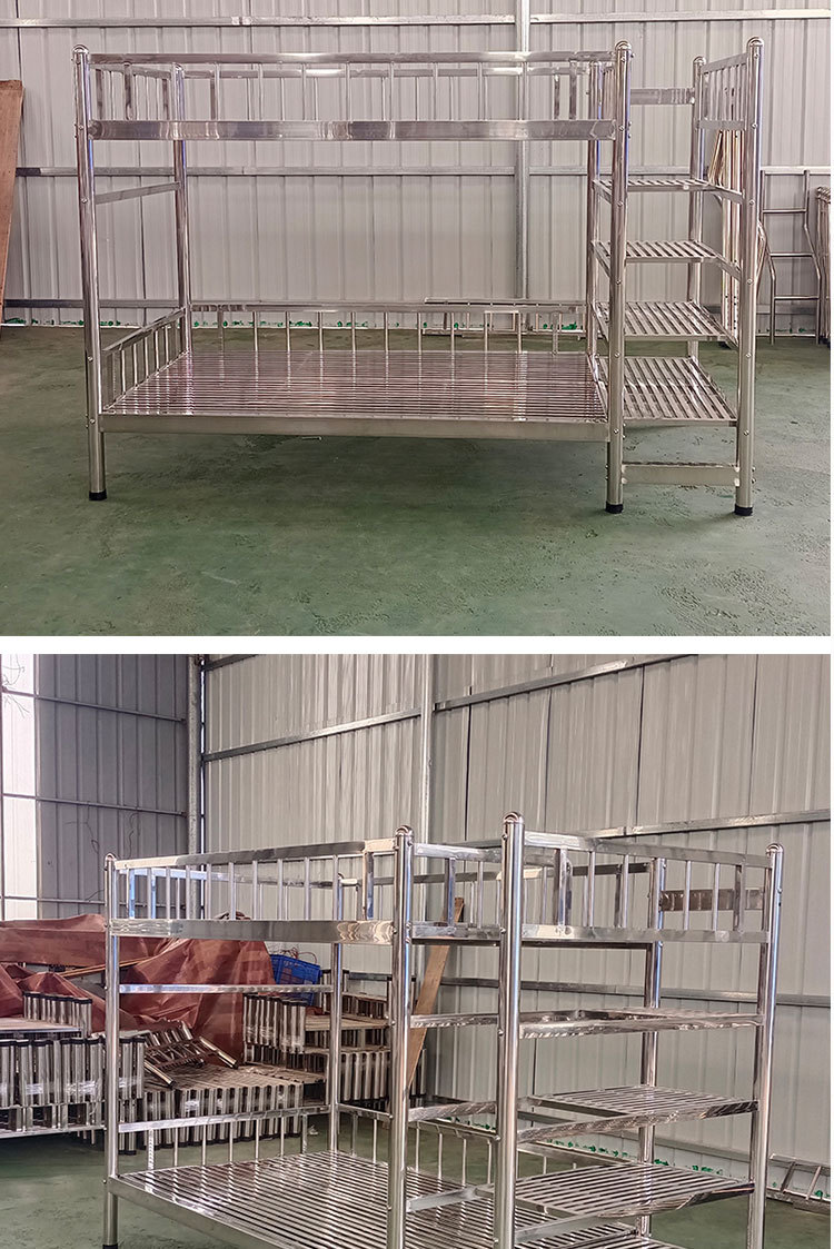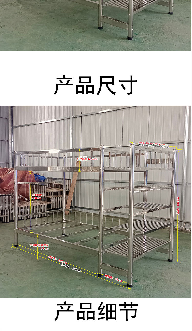 • 202 침대 프레임 + 3면 가드레일 + 202 스테인레스 스틸 침대 보드 + 계단식 침대, 상단 및 하단 테이블