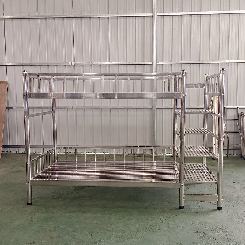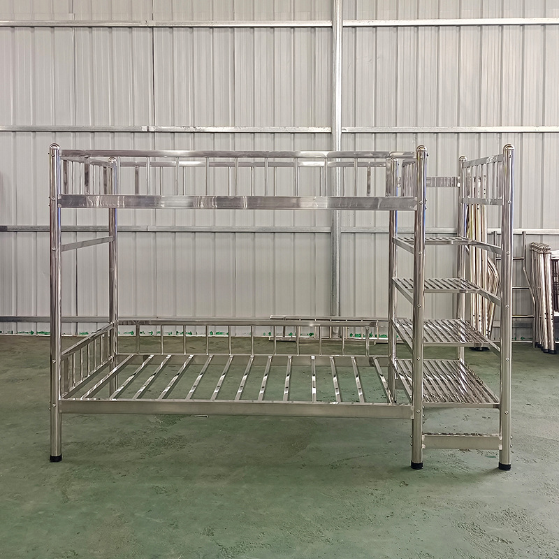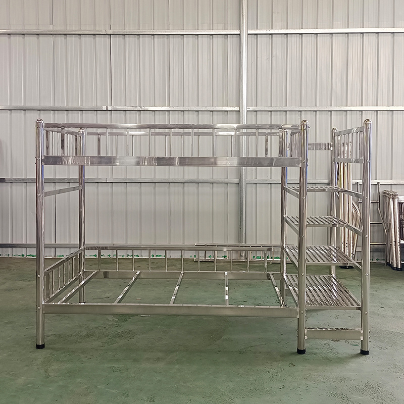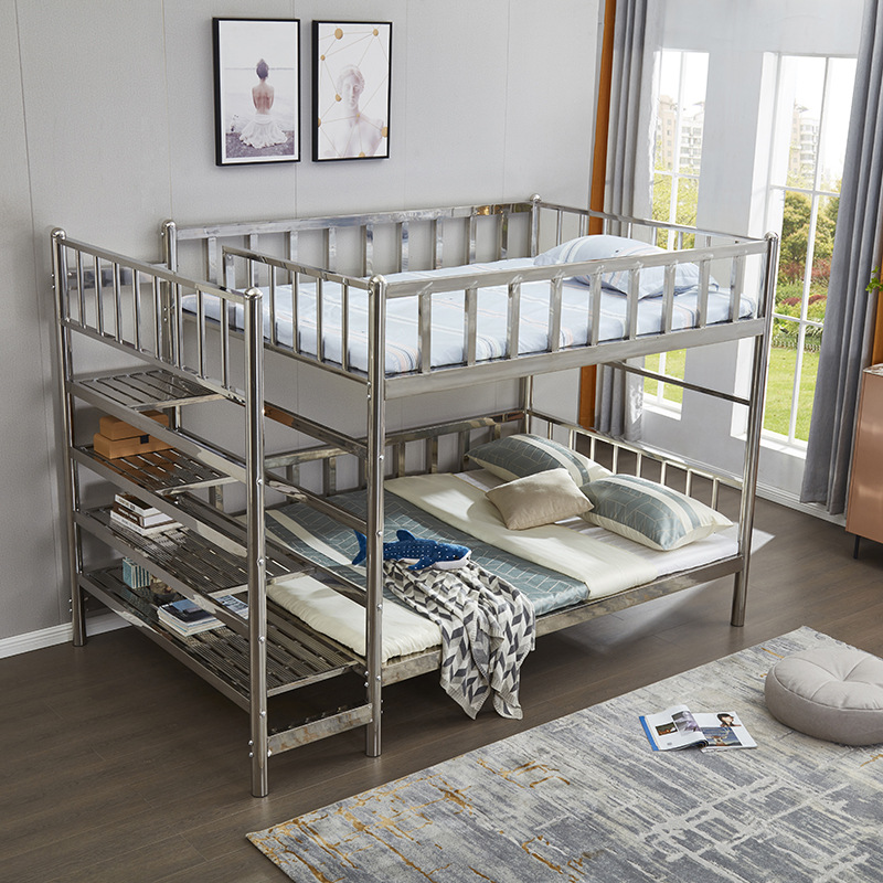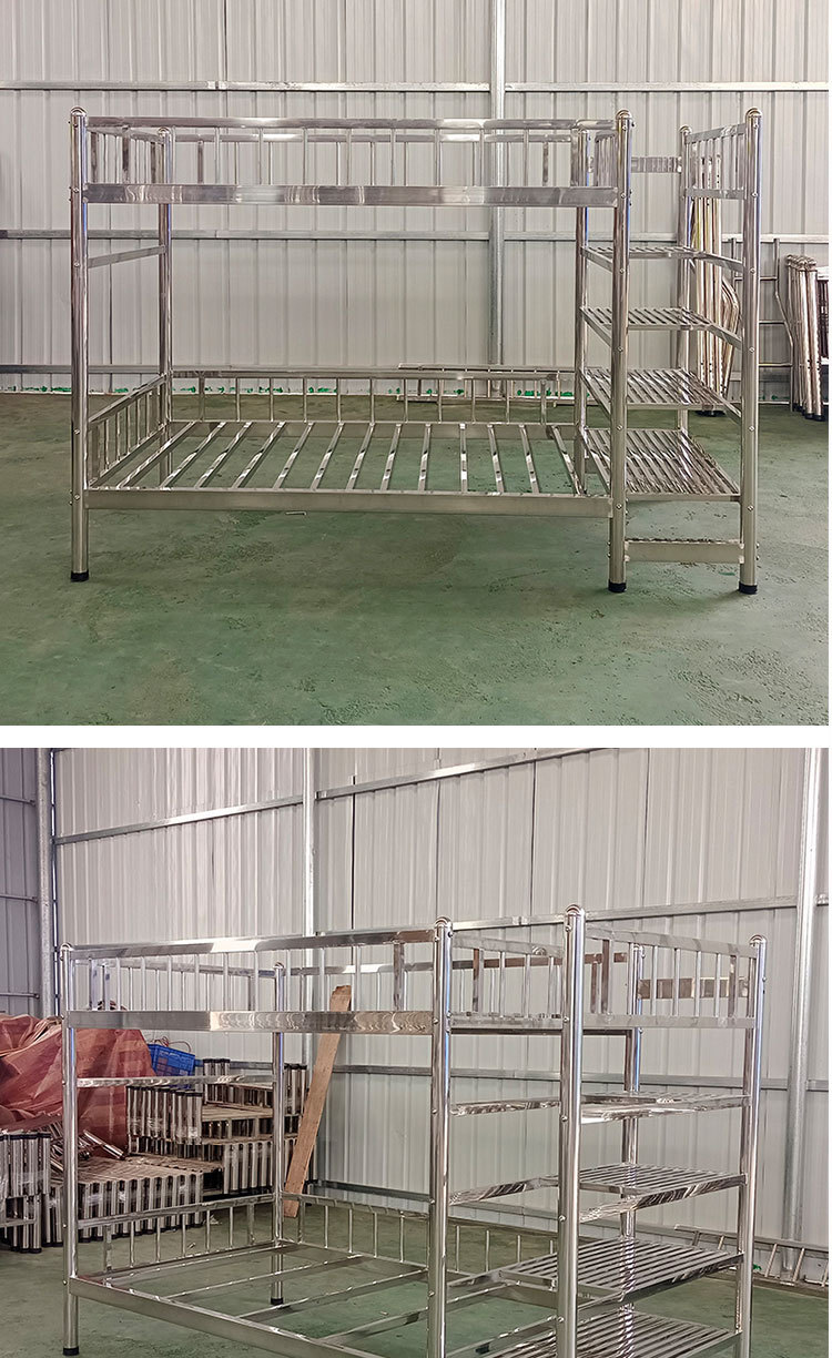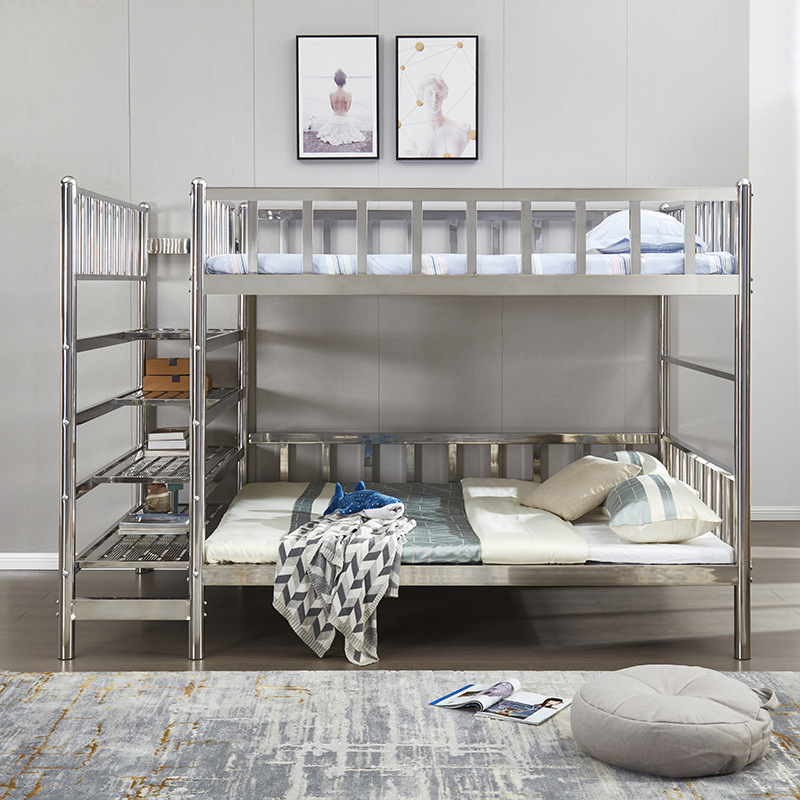 • 304 침대 프레임 + 3면 가드레일 + 202 스테인레스 스틸 침대 보드 + 계단식 침대, 상단 및 하단 테이블