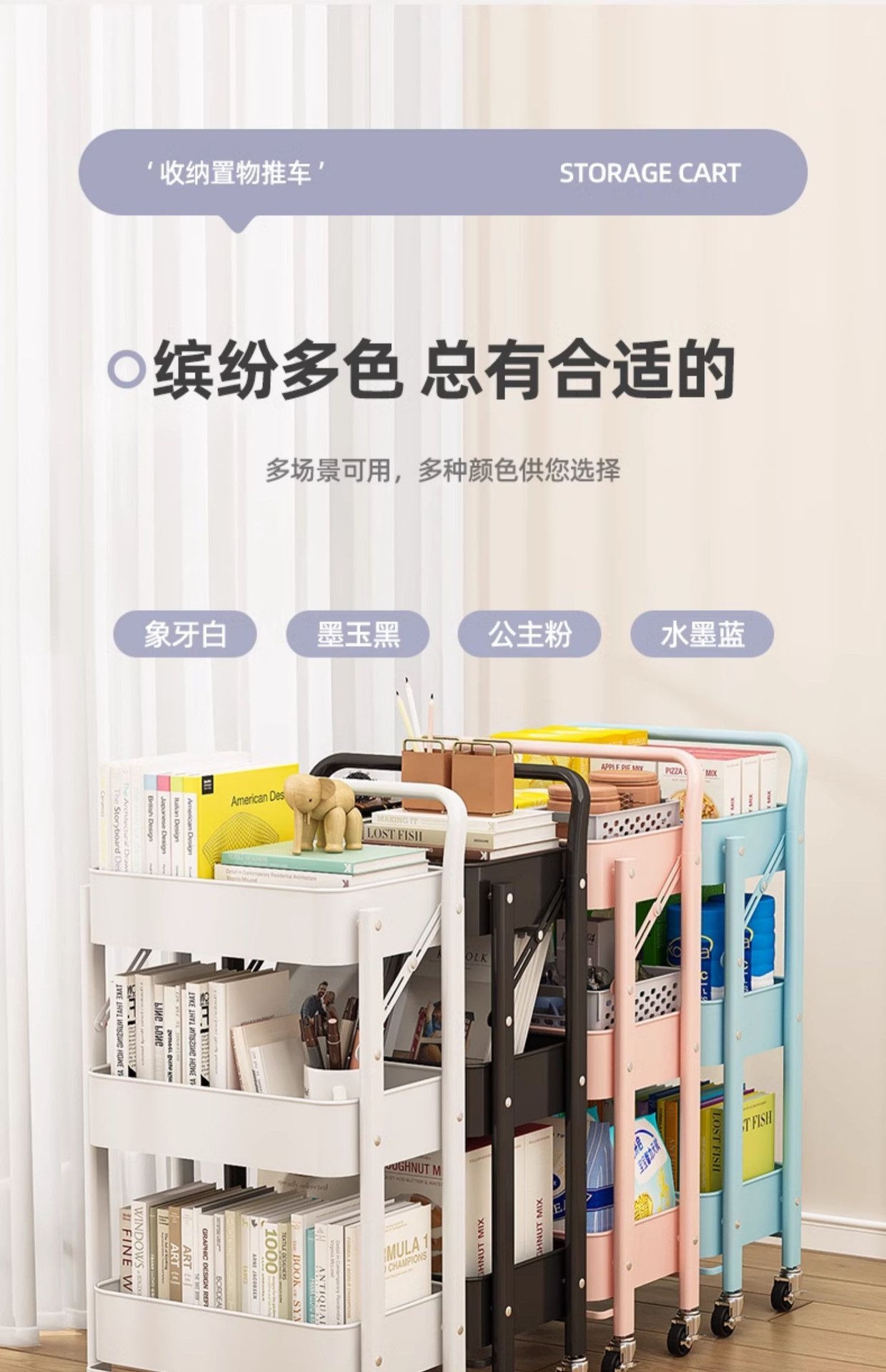 제조업체 맞춤형 바닥에서 천장까지 다층 트롤리 보관 랙 침실 스낵 보관 욕실 모바일 정리 랙