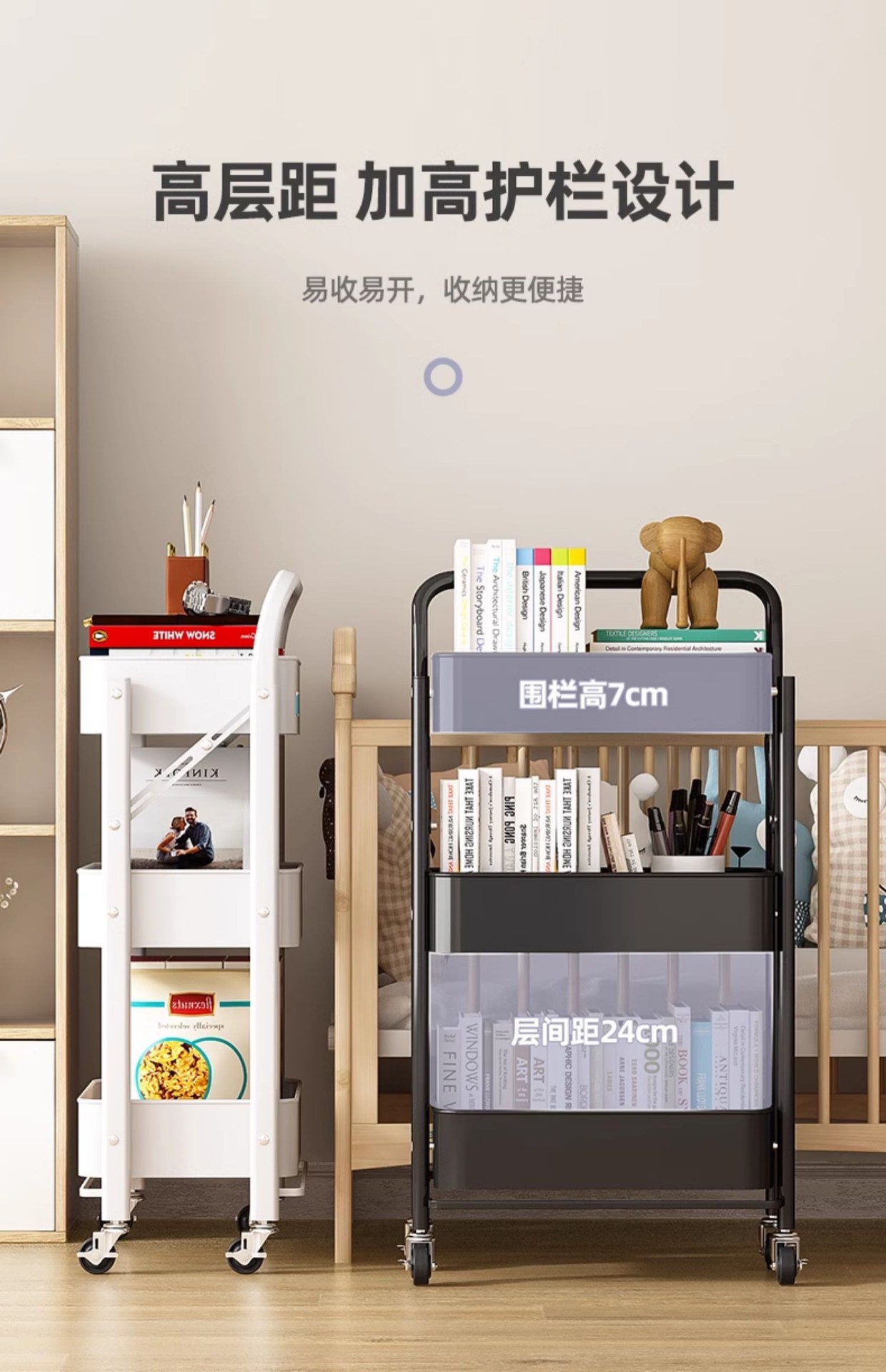 제조업체 맞춤형 바닥에서 천장까지 다층 트롤리 보관 랙 침실 스낵 보관 욕실 모바일 정리 랙스토어 가기