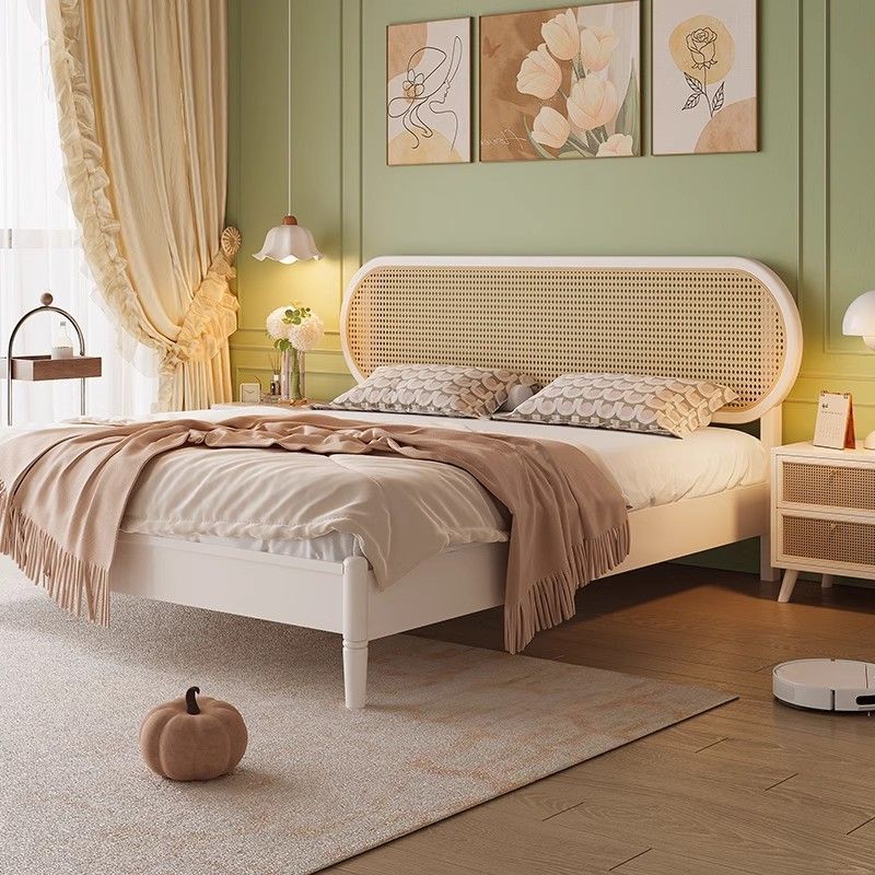 HS 북유럽 단단한 나무 등나무 침대 크림 스타일 복고풍 1.8 더블 침대 화이트 1.5m 프랑스 단순 현대 웨딩 침대스토어 가기