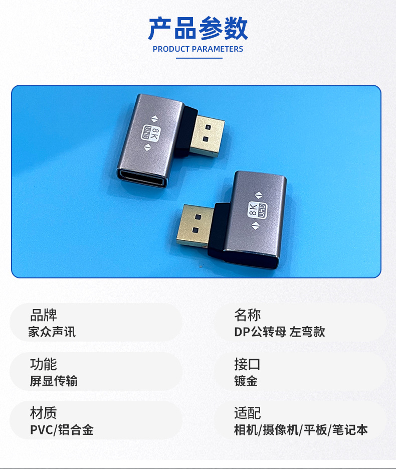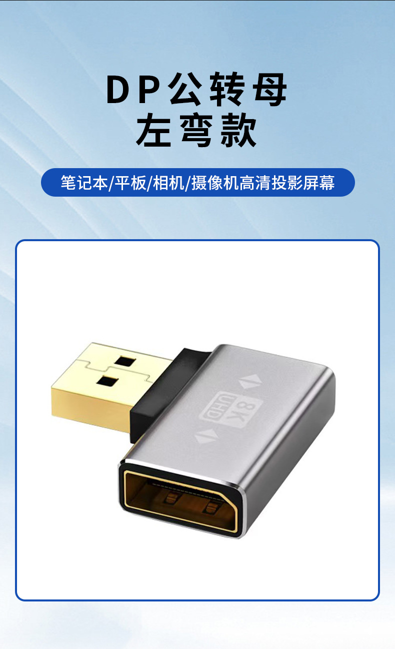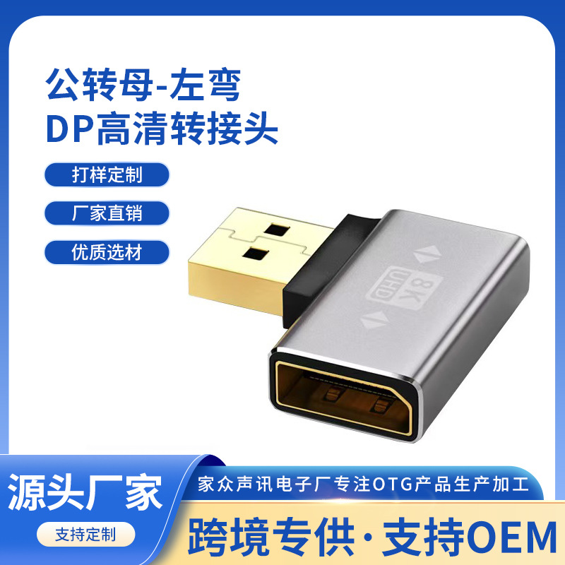 DP 남성-여성 왼쪽 곡선 변환기 Displayport 어댑터 HD 전송 휴대폰 프로젝션 어댑터스토어 가기