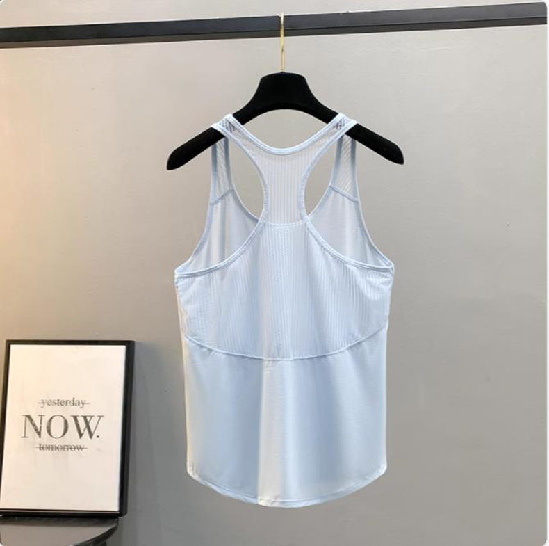 여름 얇은 메쉬 통기성 요가 백 여성 느슨한 빠른 건조 스포츠 조끼 피트니스 훈련 민소매 탑