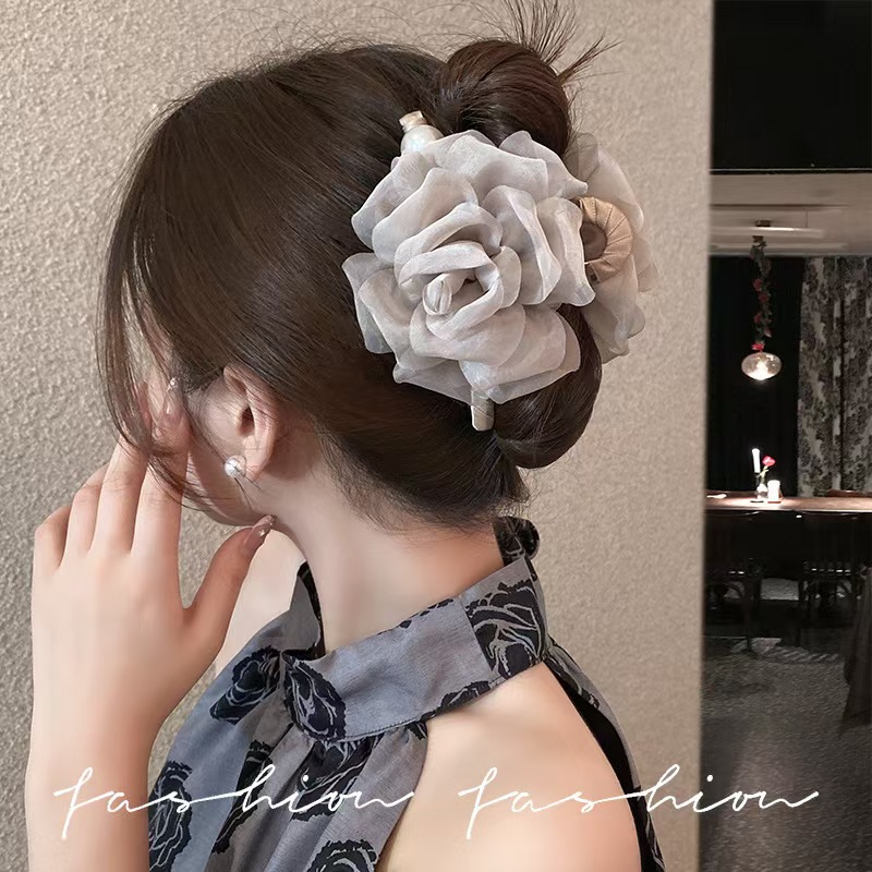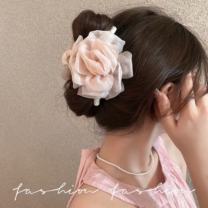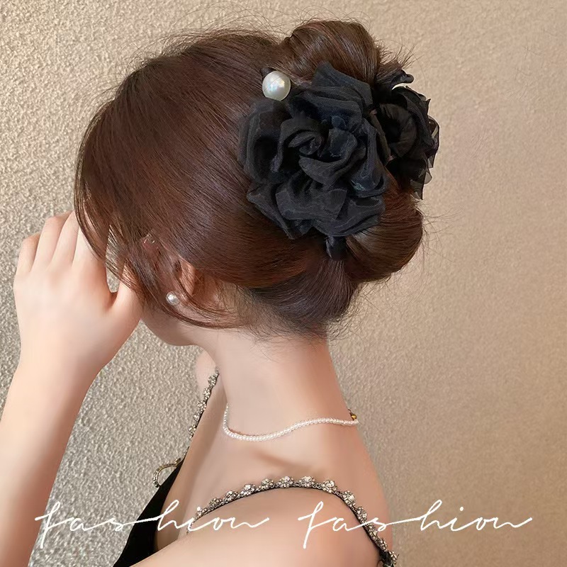 여성을 위한 부드러운 꽃 모조 비즈 클립, 고급 2025 새로운 스타일의 상어 클립, 머리 뒤에 있는 슈퍼 요정 머리핀 헤어 액세서리