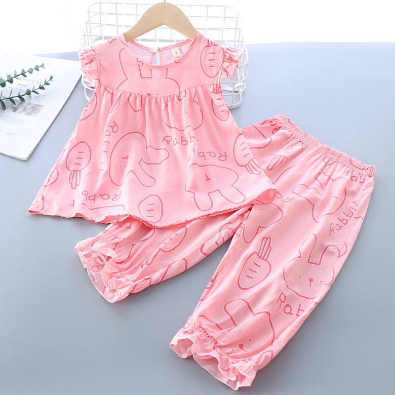 아동용 여름 면화 인공 면화 정장, 여아용 잠옷, 가정복, 유아용 얇은 조끼, 크롭 팬츠, 투피스 세트