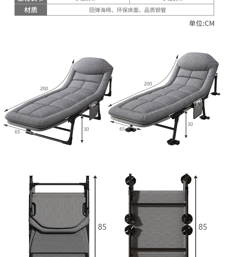 접이식 침대 점심 시간 사무실 낮잠 침대 휴대용 야외 낮잠 안락 의자 접이식 홈 케어 침대 싱글스토어 가기