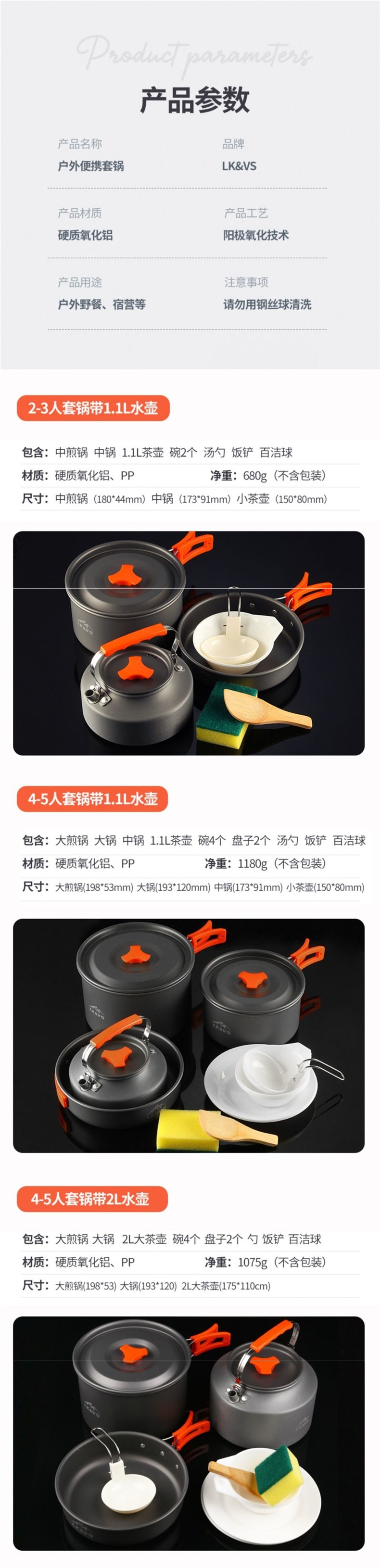 • 3~5인용 냄비 세트: 중간 튀김 + 중간 삶기 + 0.8 주전자