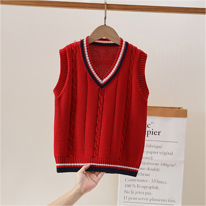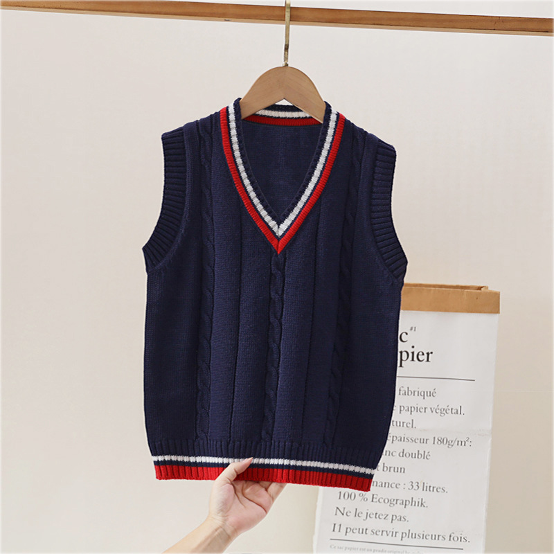 어린이 니트 조끼 봄과 가을 유치원 및 초등학교 교복 소년과 소녀 풀오버 대학 스타일 스웨터 조끼스토어 가기