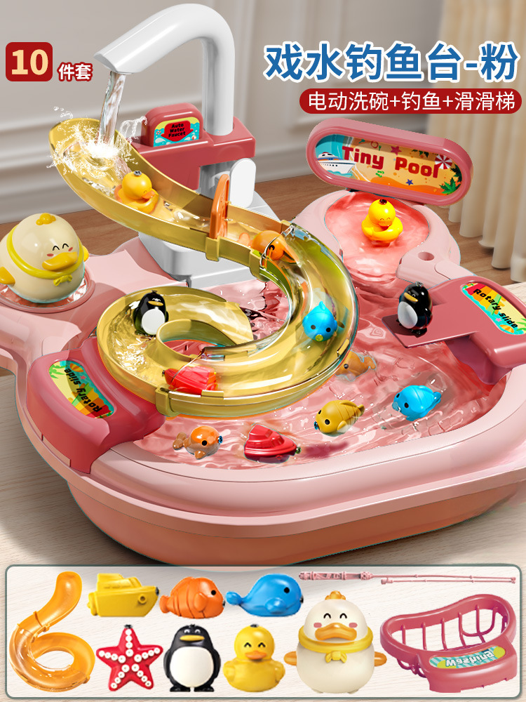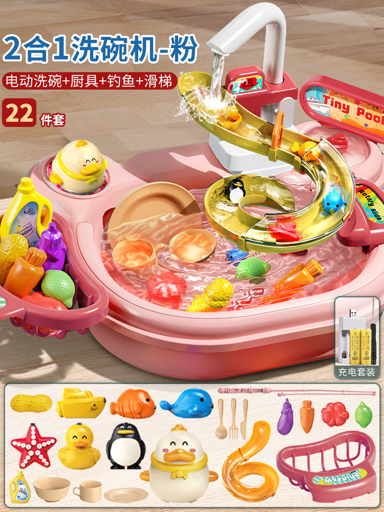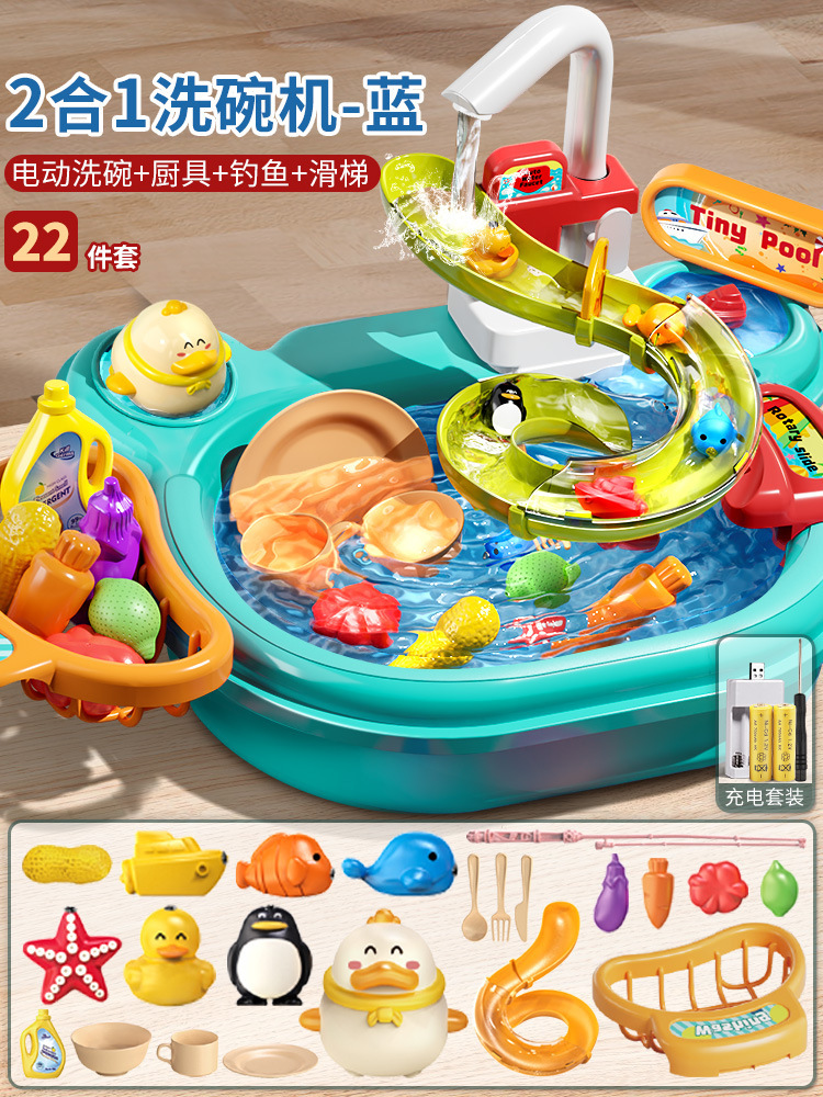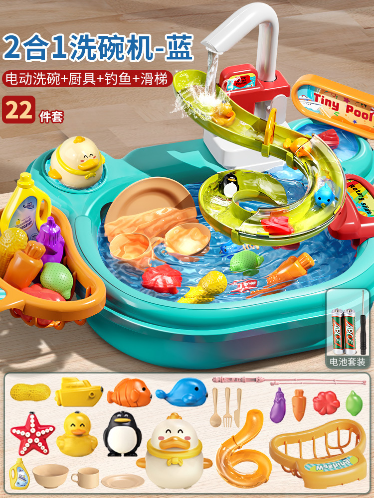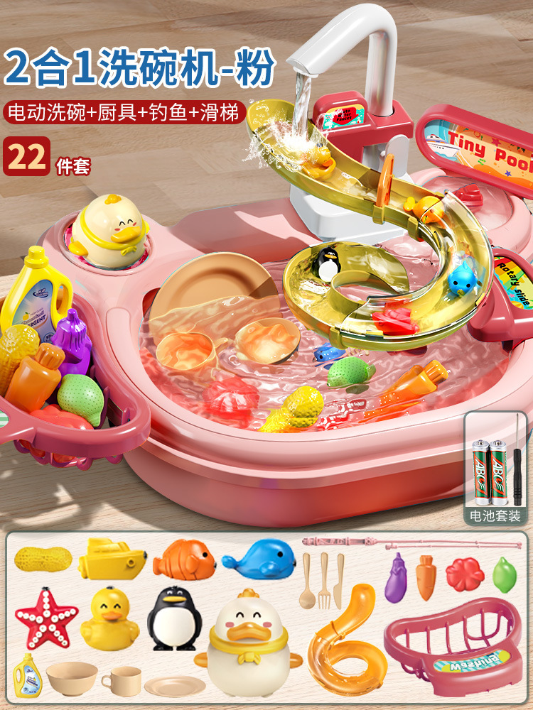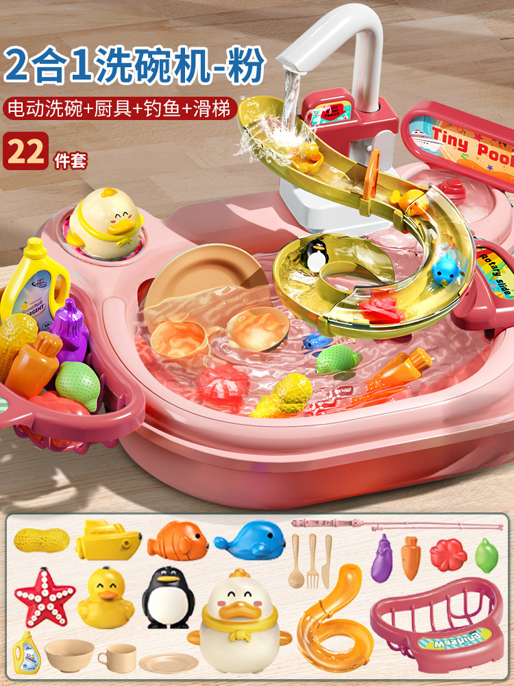 어린이 전기 식기 세척기 소년과 소녀 놀이 주방 완전 자동 물 놀이 교육 낚시 장난감 워터 파크