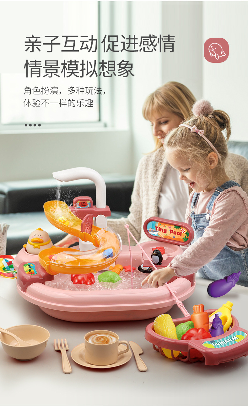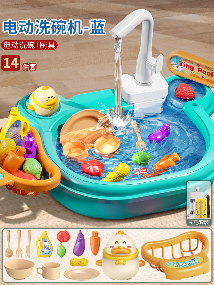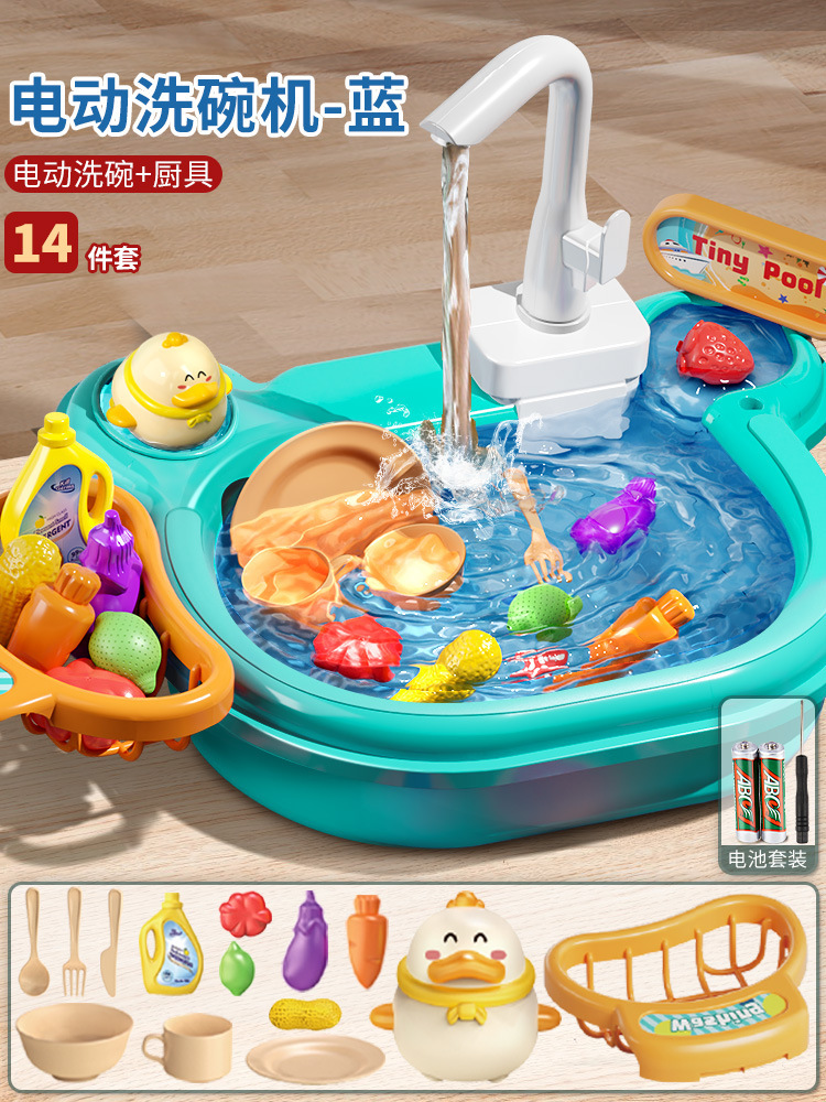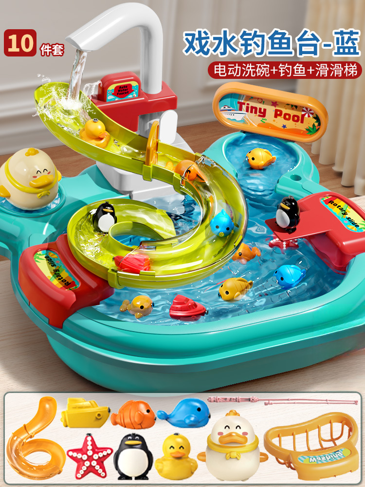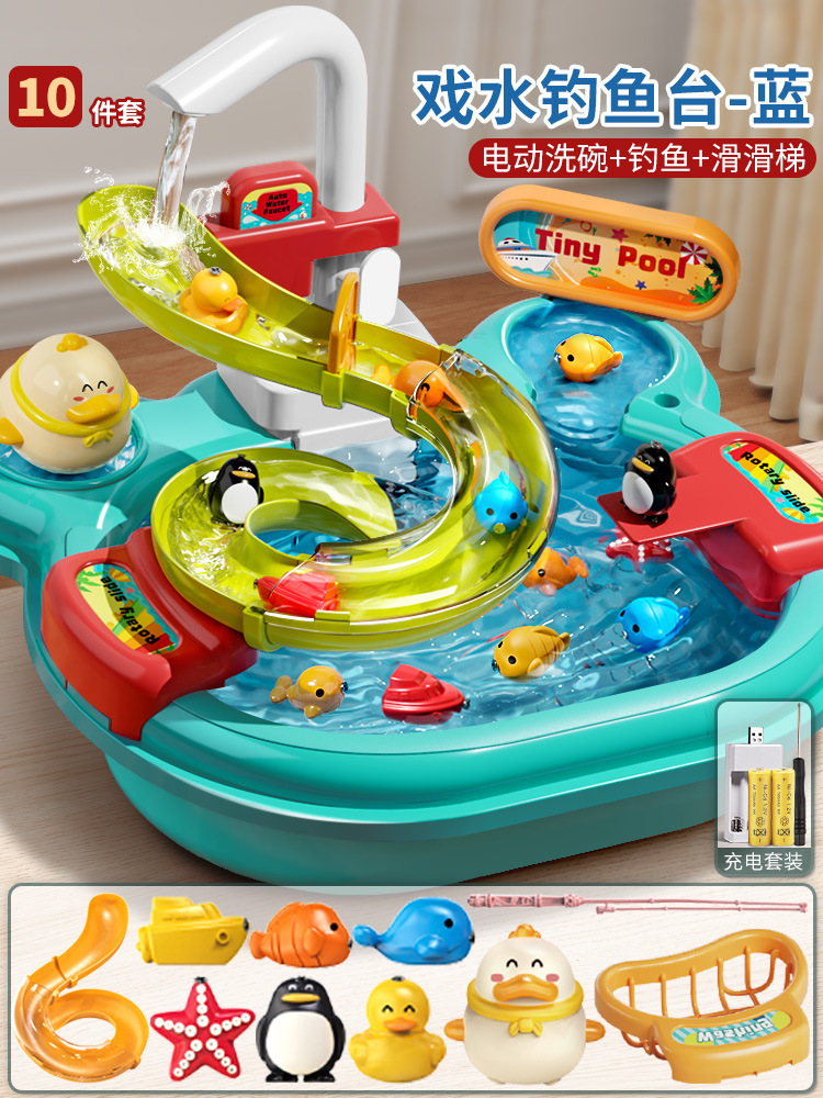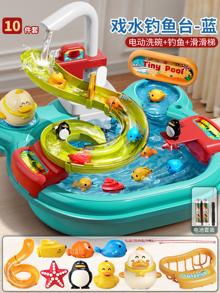 어린이 전기 식기 세척기 소년과 소녀 놀이 주방 완전 자동 물 놀이 교육 낚시 장난감 워터 파크
