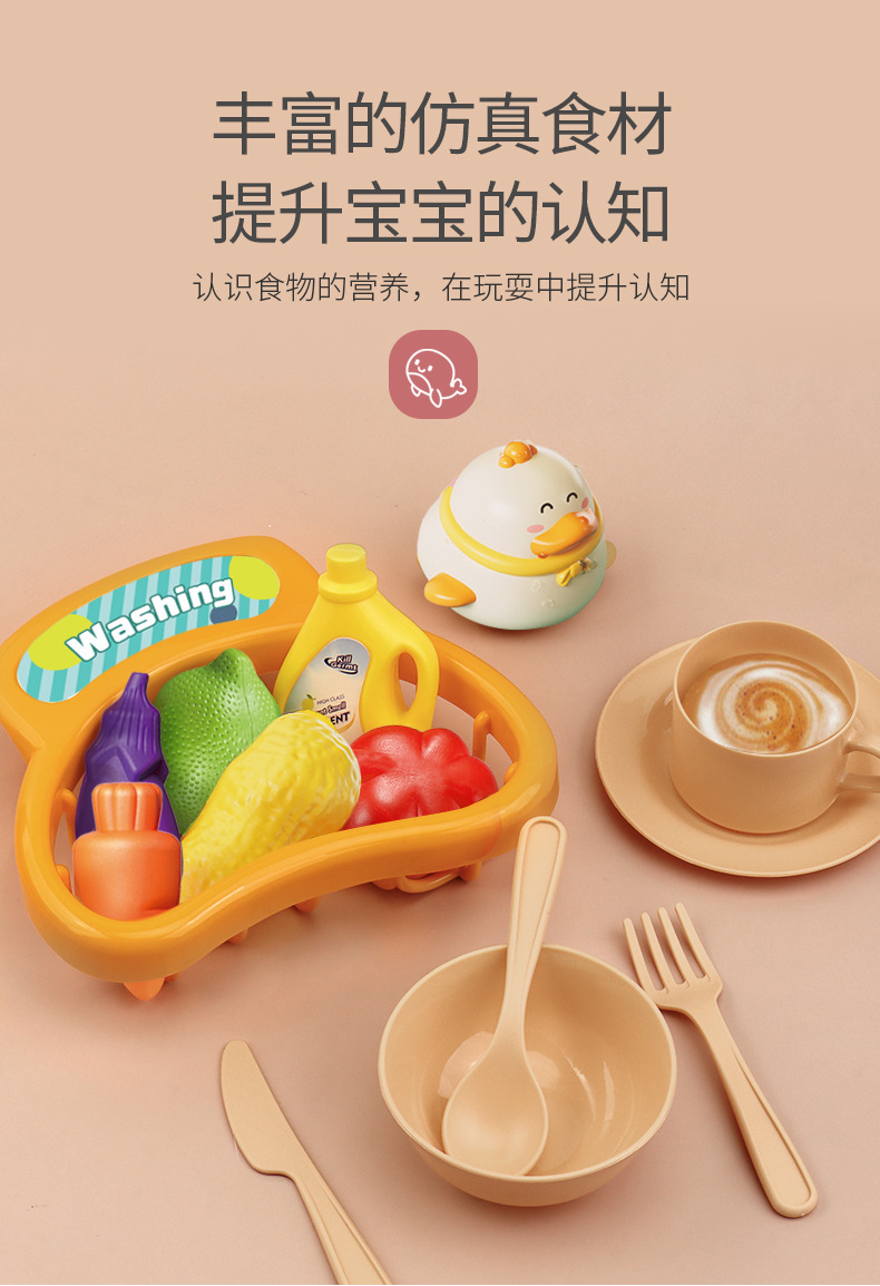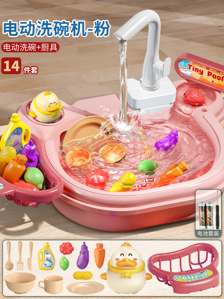 • 핑크/2-in-1 식기세척기 [주방용품 13개 + 생선 6개 + 막대 1개 + 슬라이드 + 오리꼬집기] + 배터리
