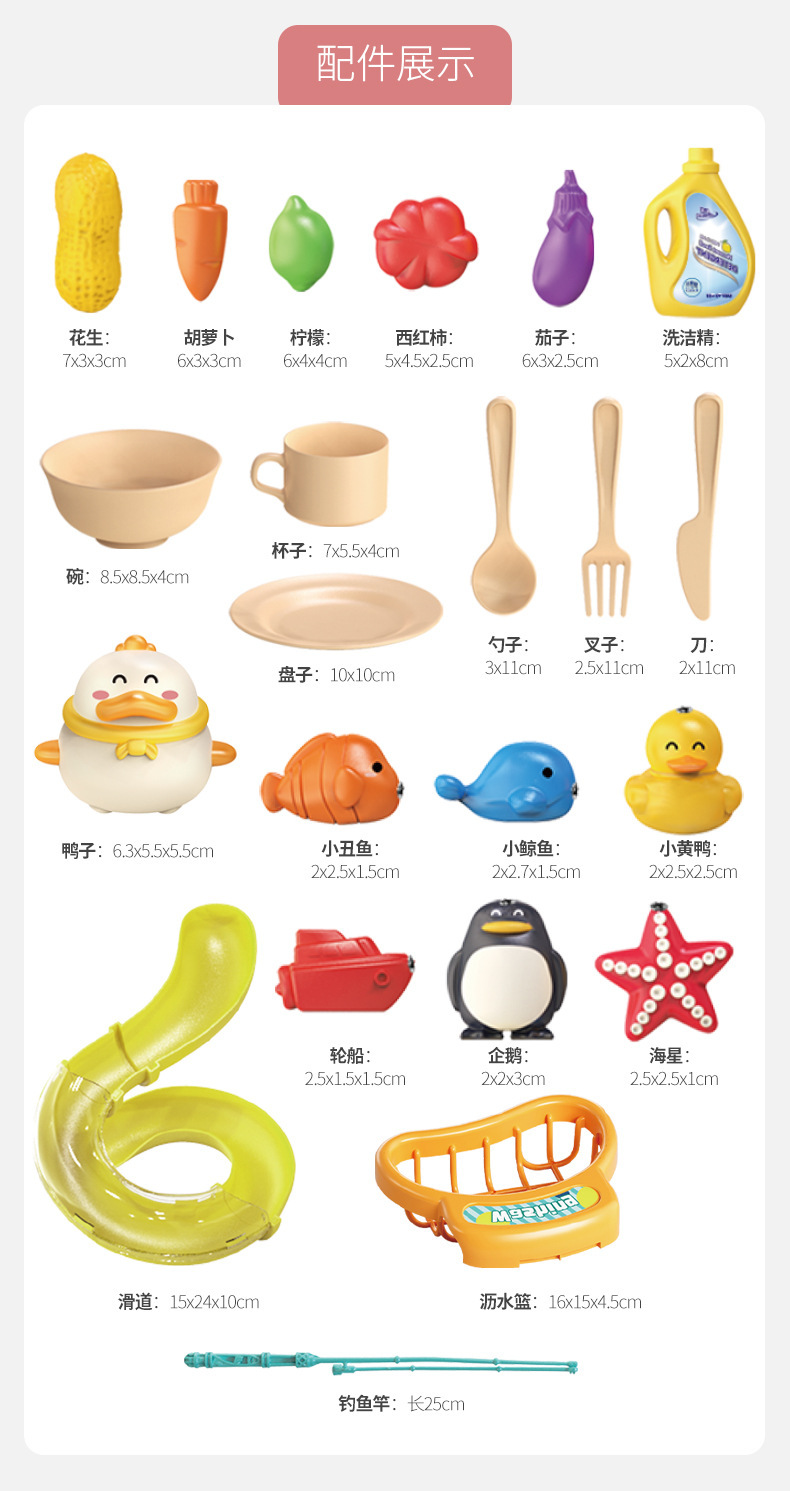• 핑크/2-in-1 식기세척기 [주방용품 13개 + 생선 6개 + 막대 1개 + 슬라이드 + 오리꼬집기]