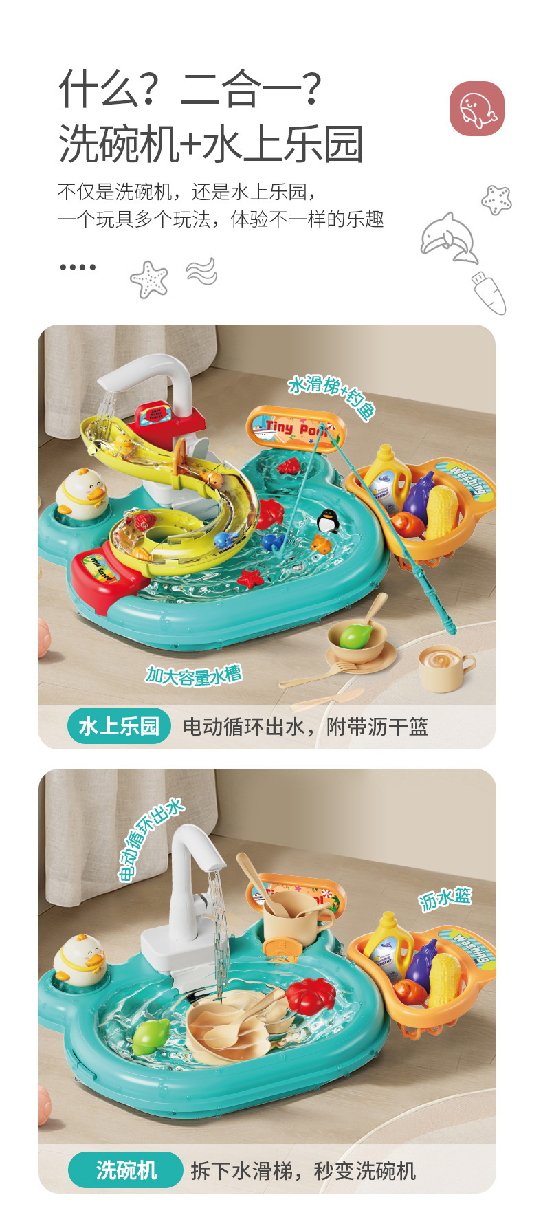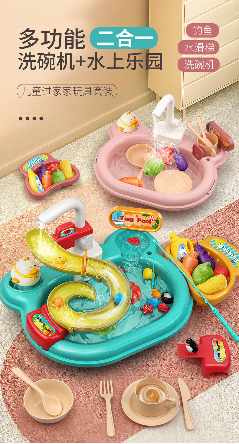 어린이 전기 식기 세척기 소년과 소녀 놀이 주방 완전 자동 물 놀이 교육 낚시 장난감 워터 파크스토어 가기
