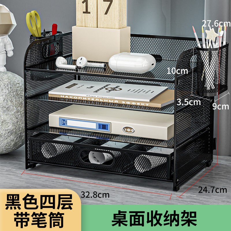 • 019B-블랙 4단 파일걸이(서랍1개+펜홀더2개)