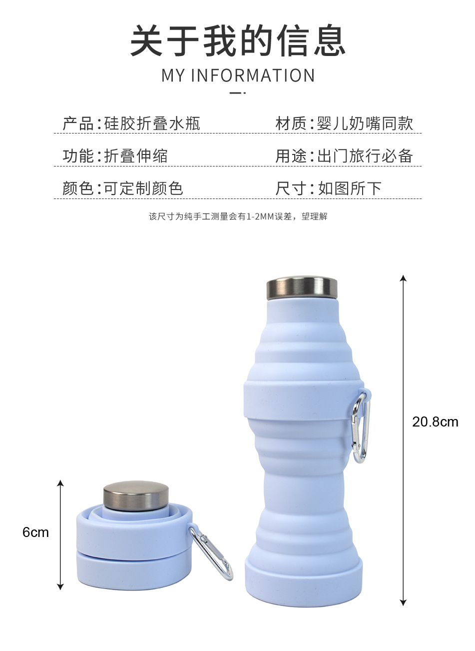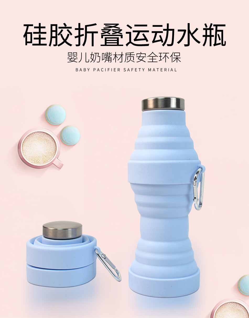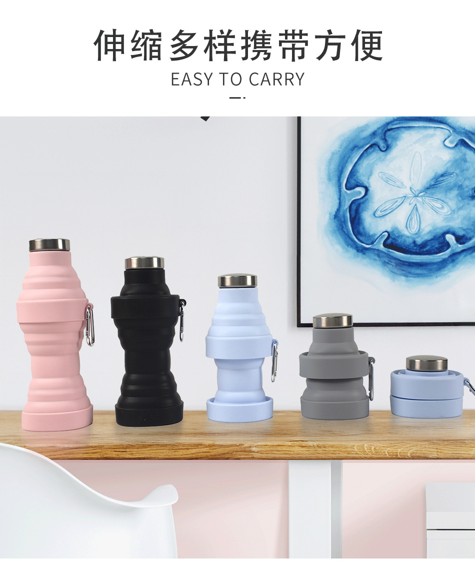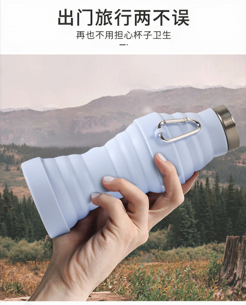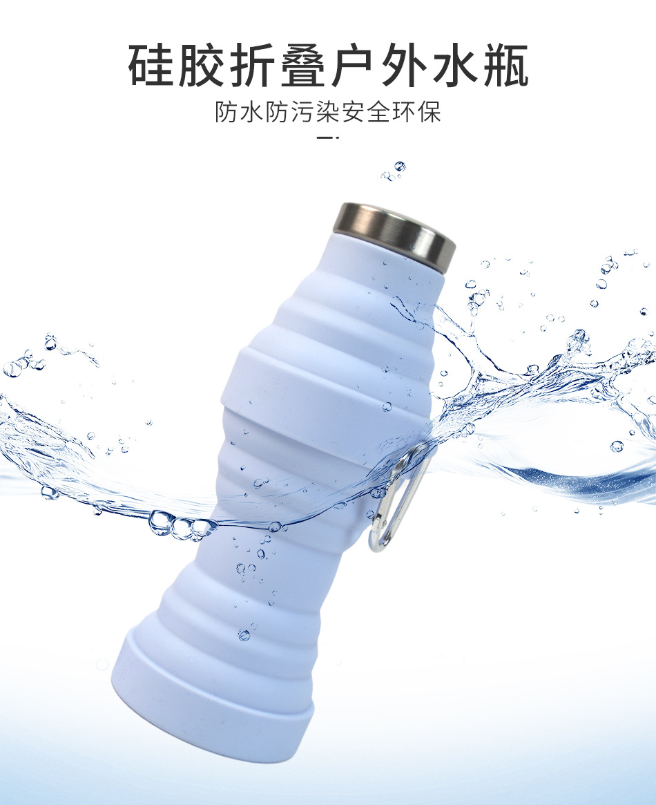 실리콘 접이식 물컵 식품 등급 물병 스포츠 야외 접이식 실리콘 물병 카라비너 포함스토어 가기