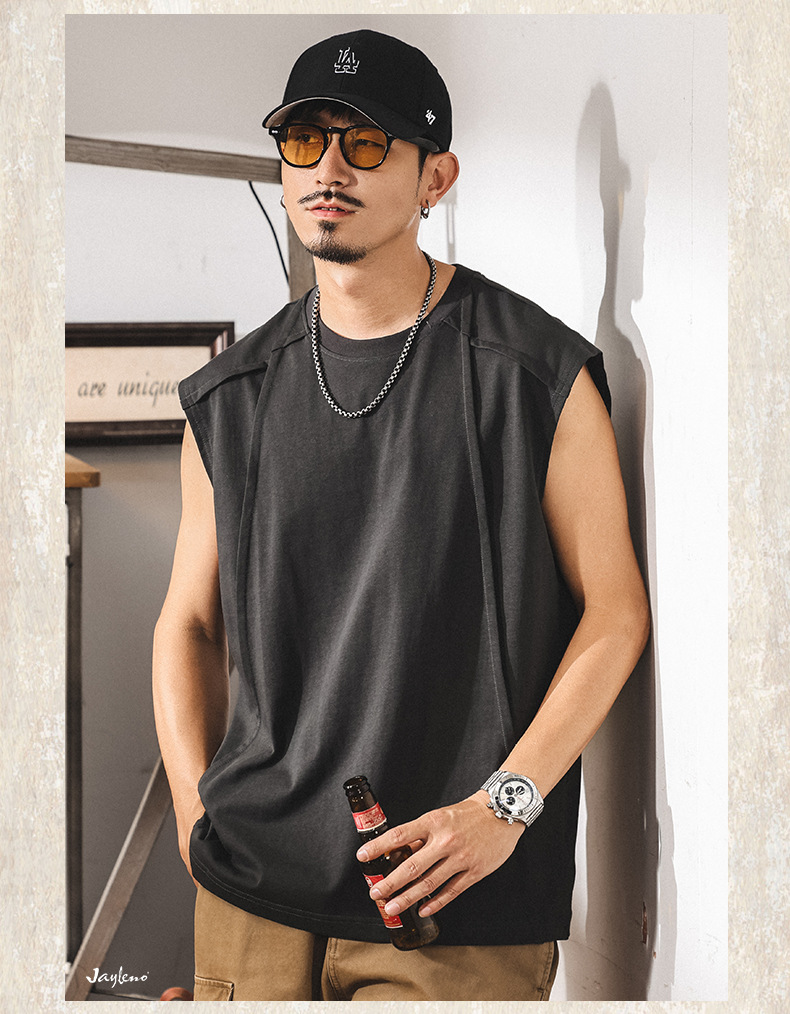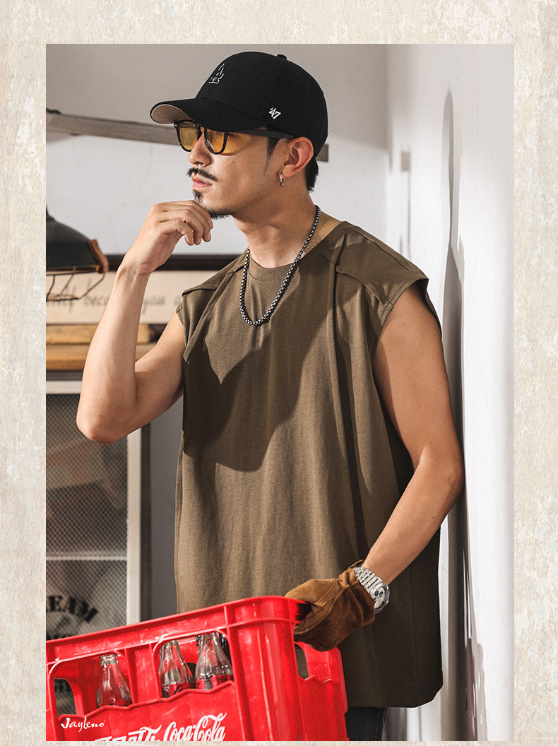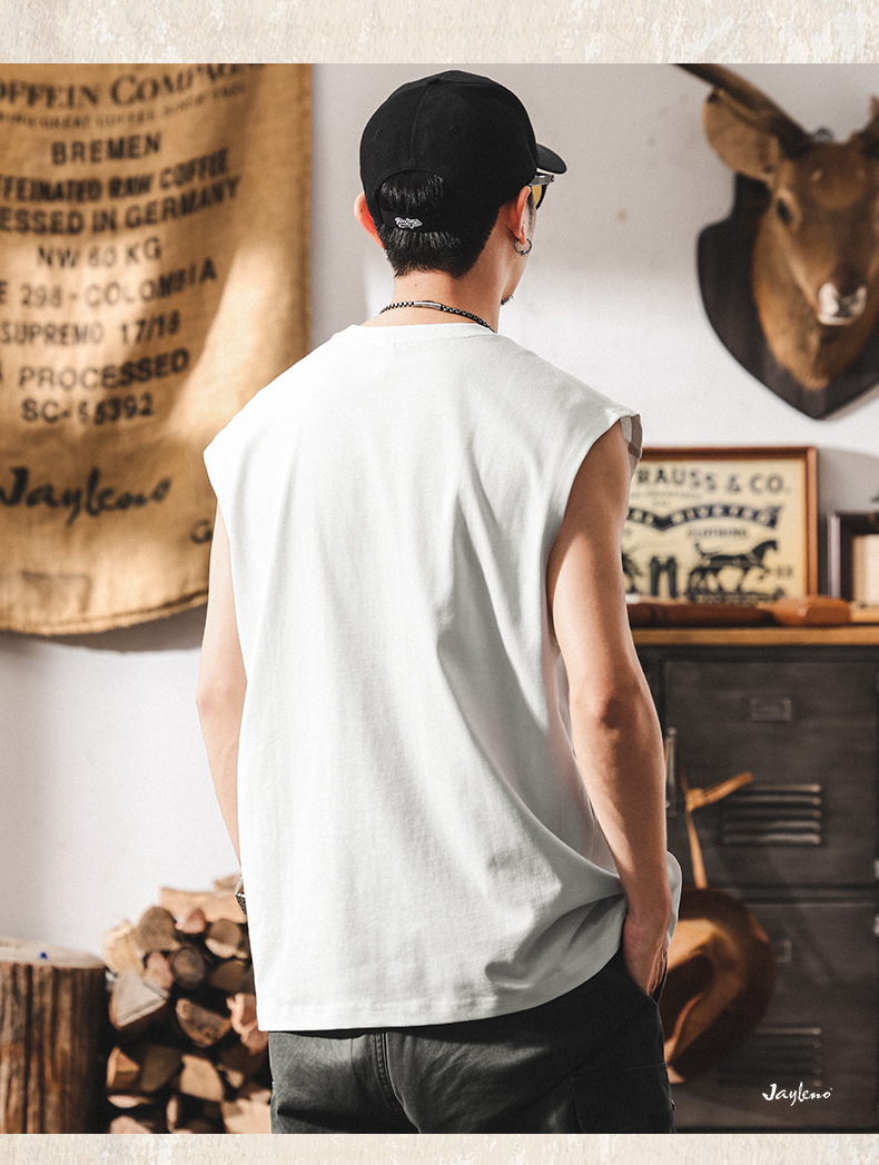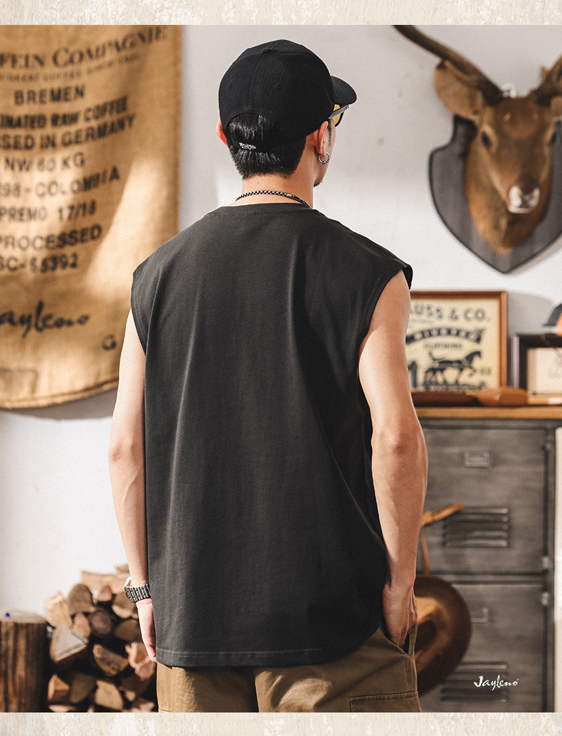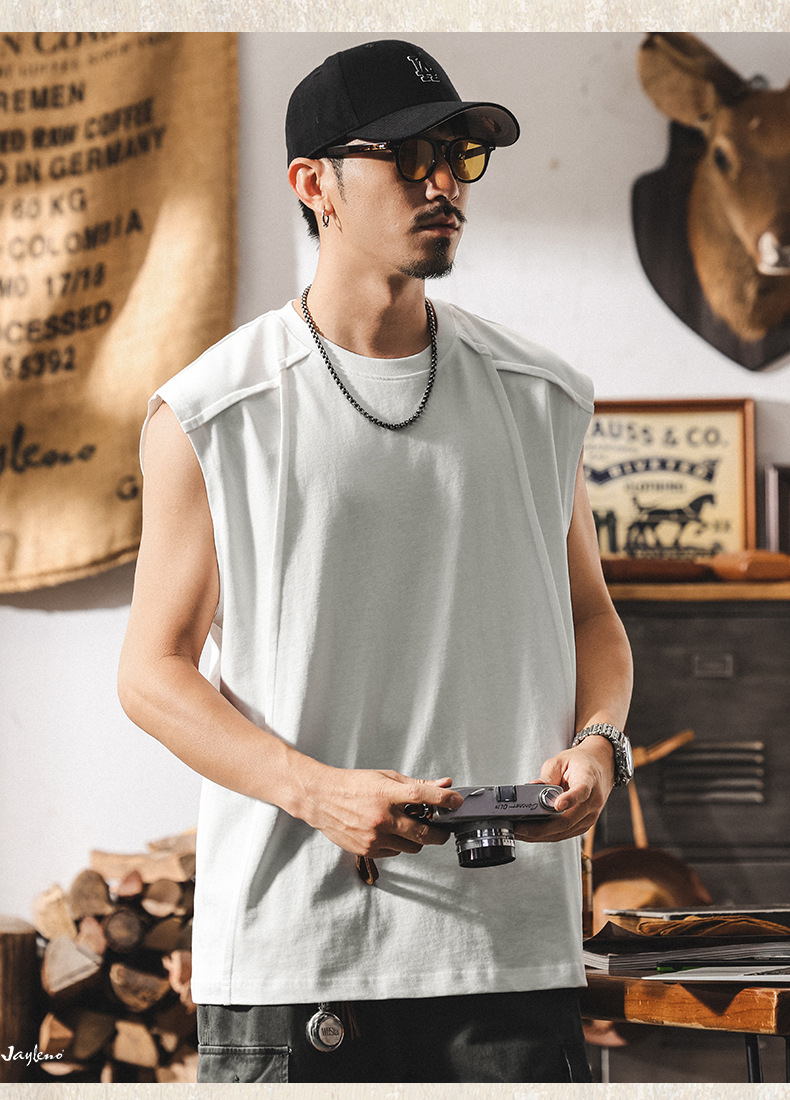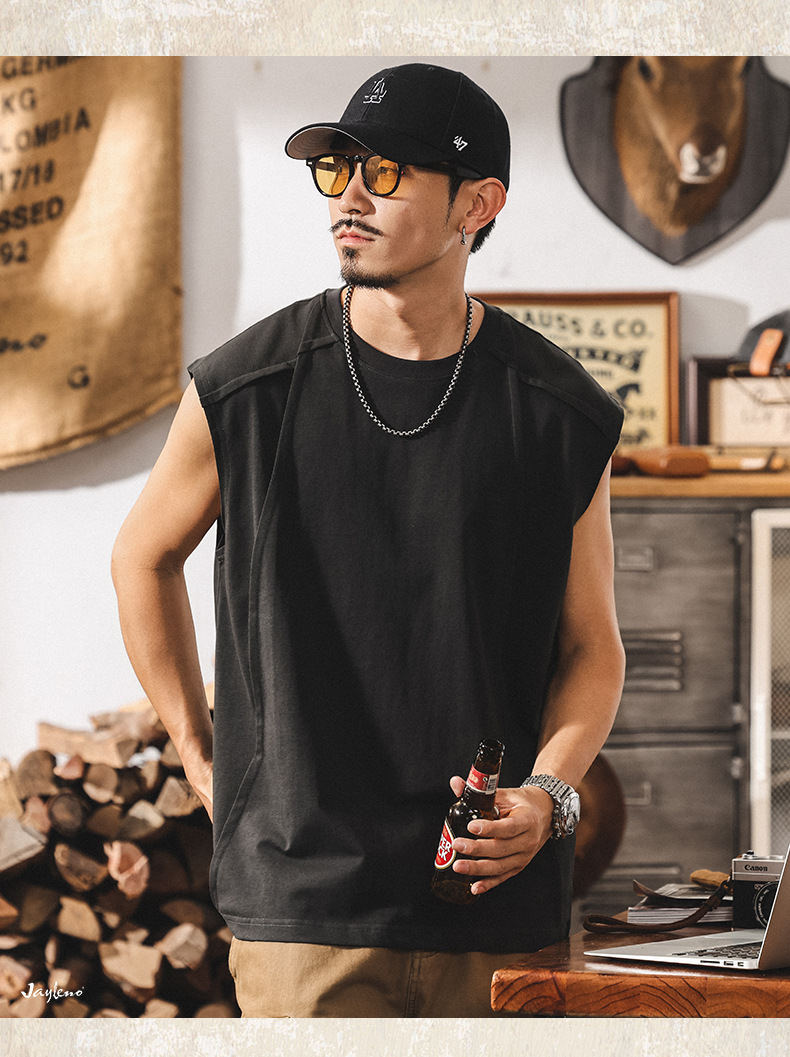 아메리칸 레트로 헤비급 280g 남성용 조끼 여름 신작 트렌디 브랜드 스플 라이스 조끼 루즈 민소매 코튼 티셔츠스토어 가기