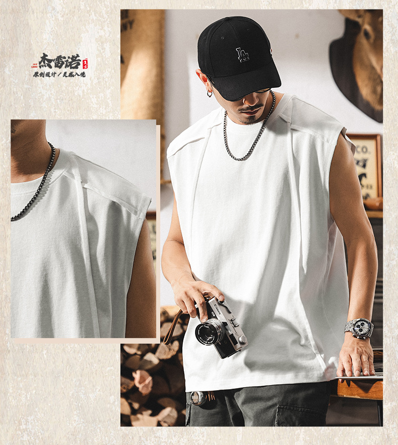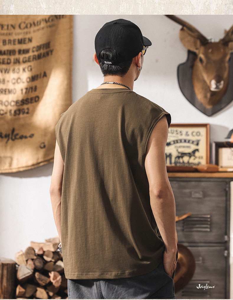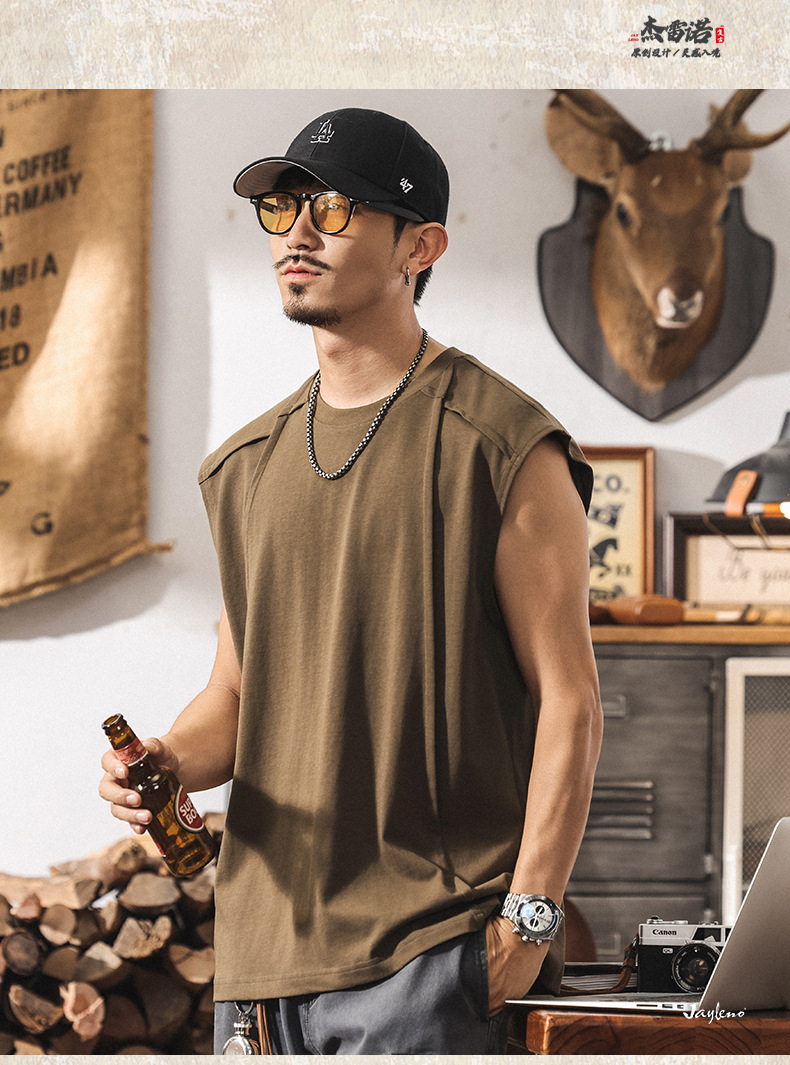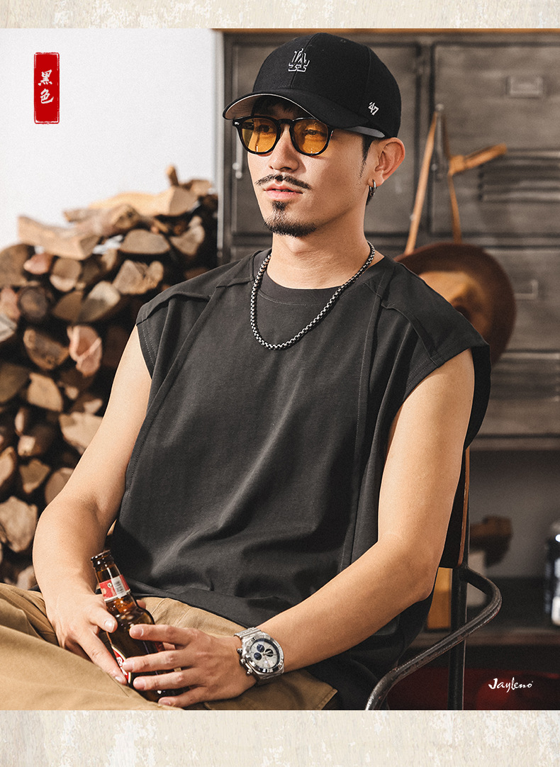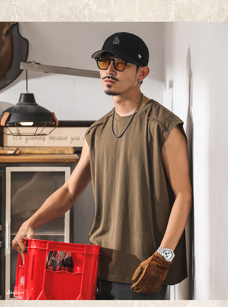 아메리칸 레트로 헤비급 280g 남성용 조끼 여름 신작 트렌디 브랜드 스플 라이스 조끼 루즈 민소매 코튼 티셔츠스토어 가기