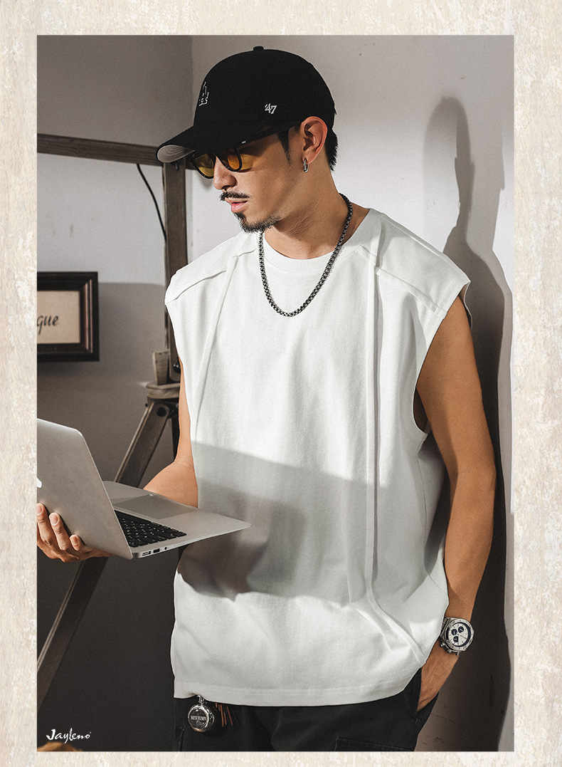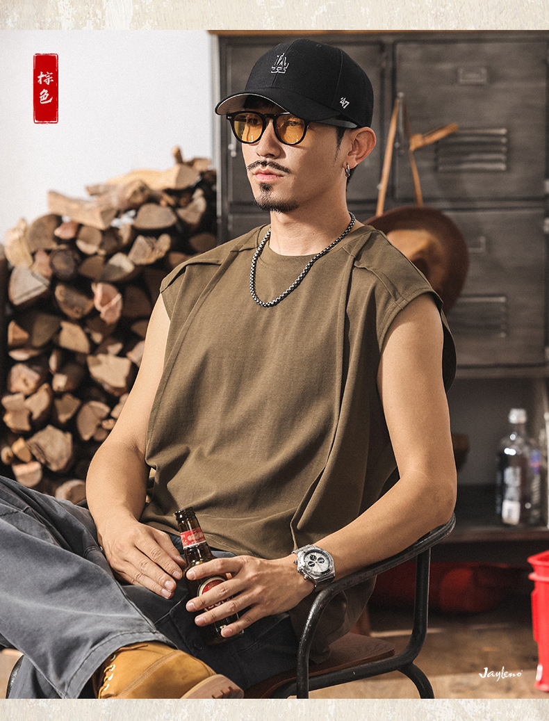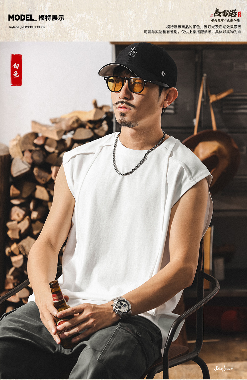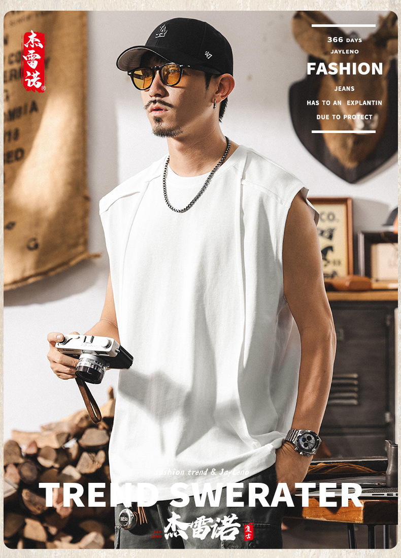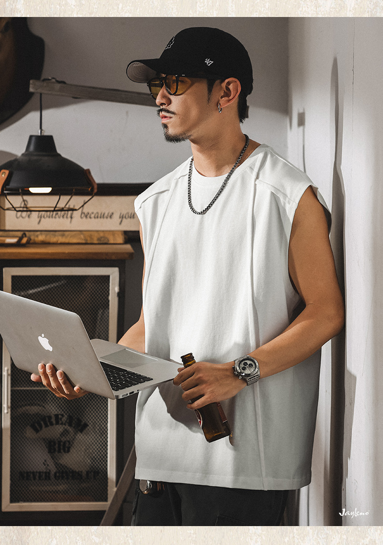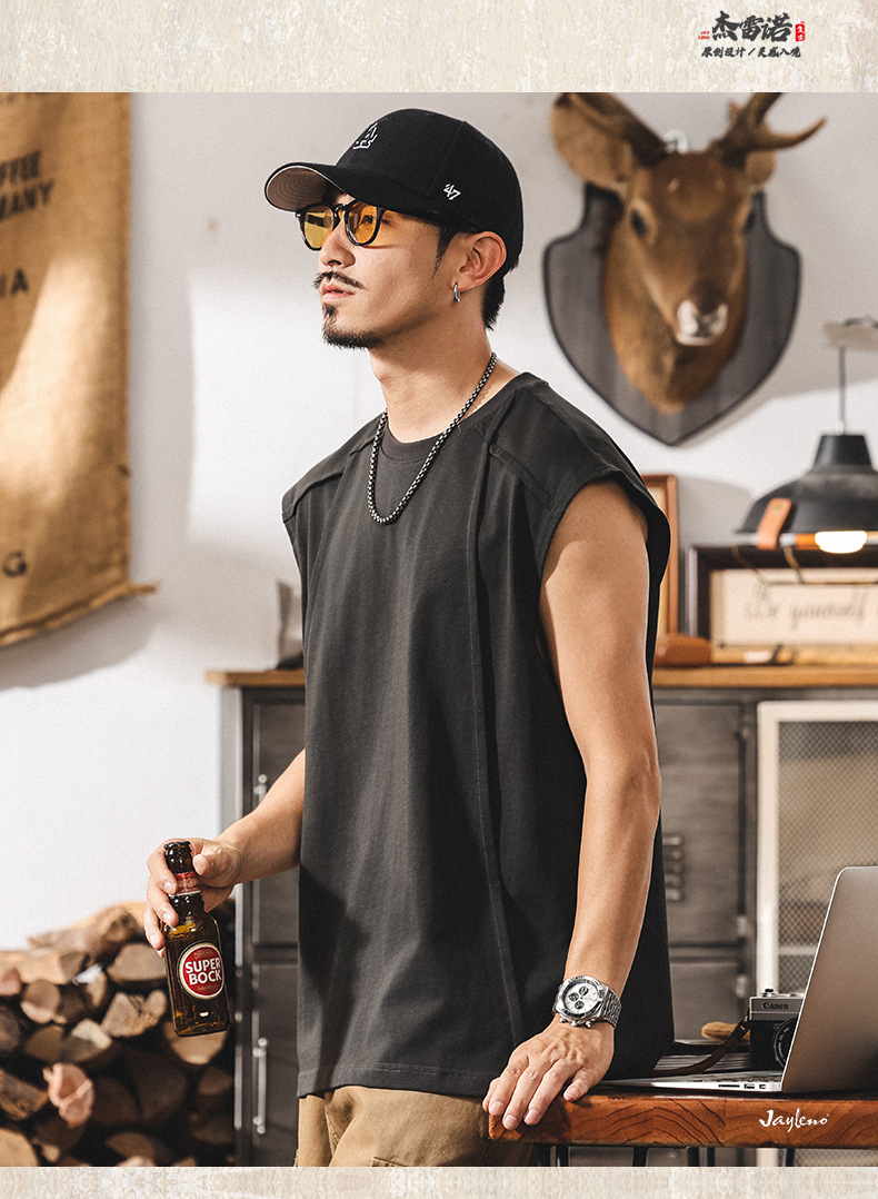 아메리칸 레트로 헤비급 280g 남성용 조끼 여름 신작 트렌디 브랜드 스플 라이스 조끼 루즈 민소매 코튼 티셔츠스토어 가기