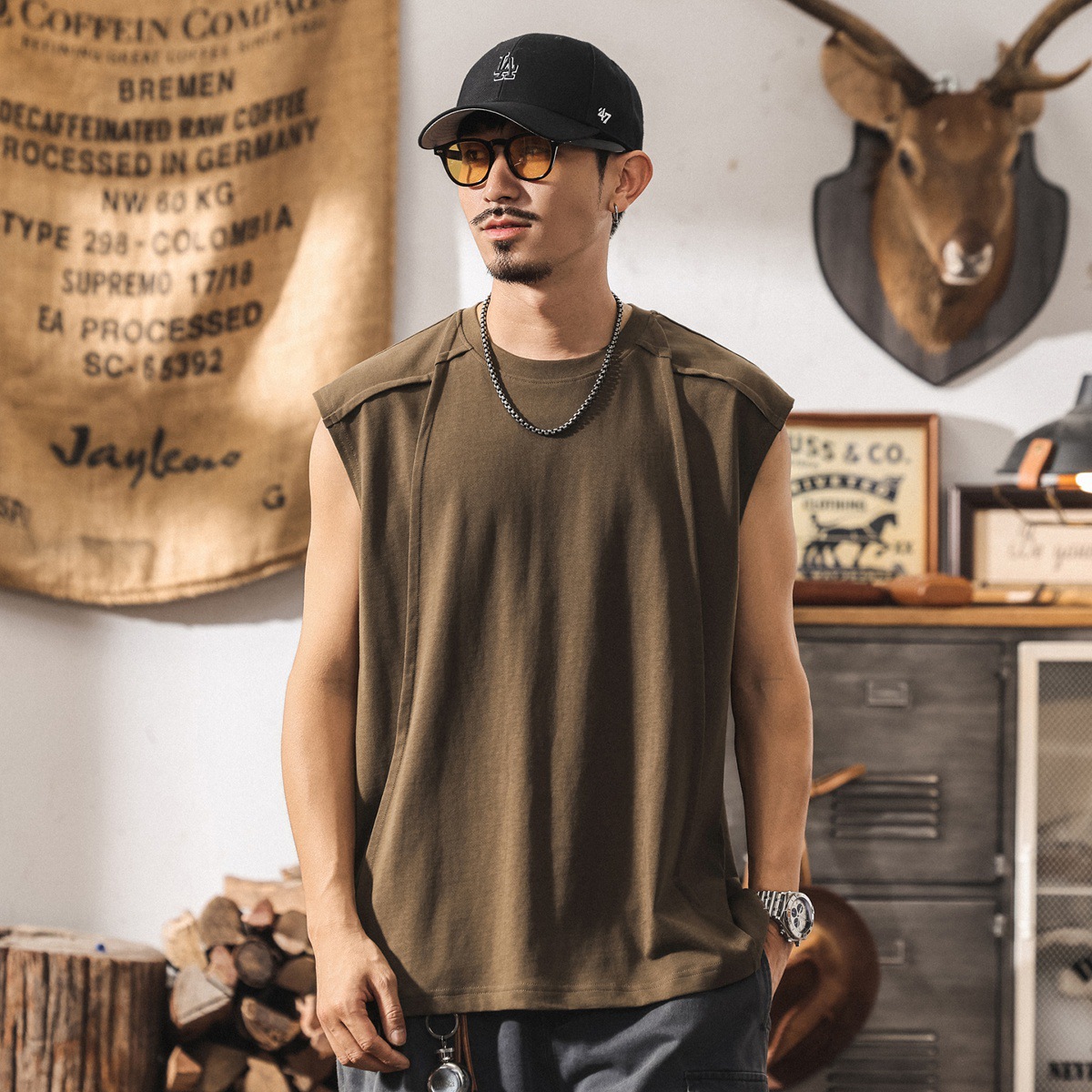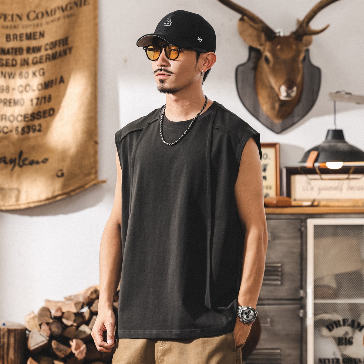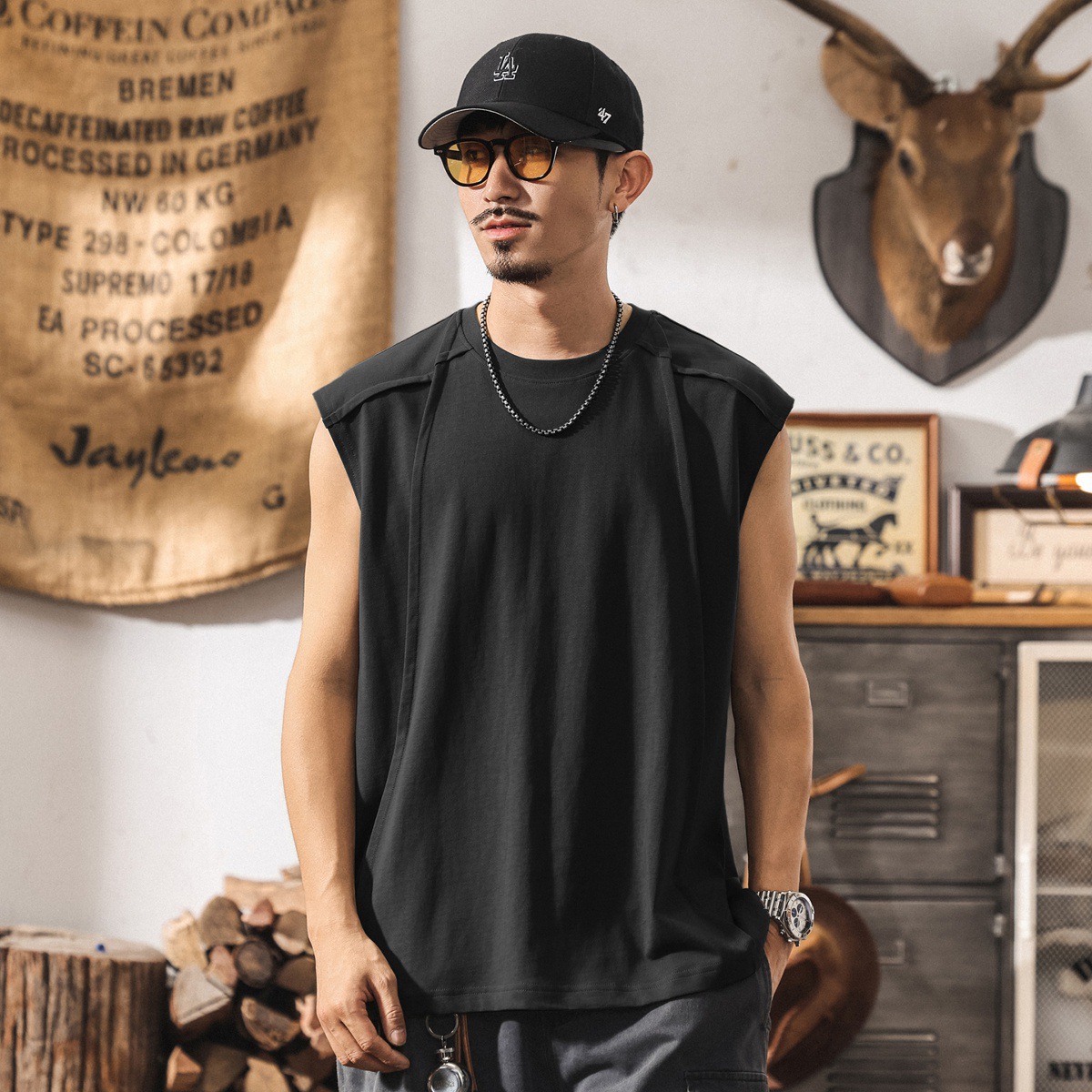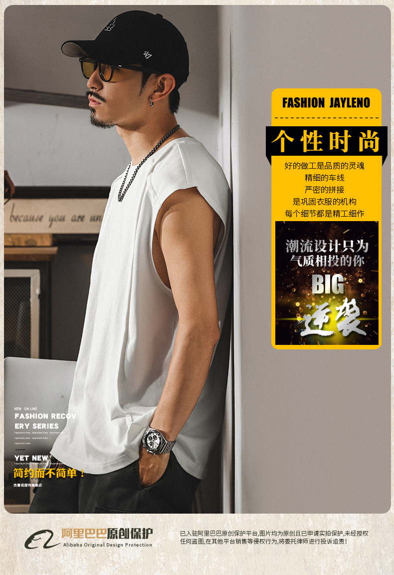 아메리칸 레트로 헤비급 280g 남성용 조끼 여름 신작 트렌디 브랜드 스플 라이스 조끼 루즈 민소매 코튼 티셔츠스토어 가기