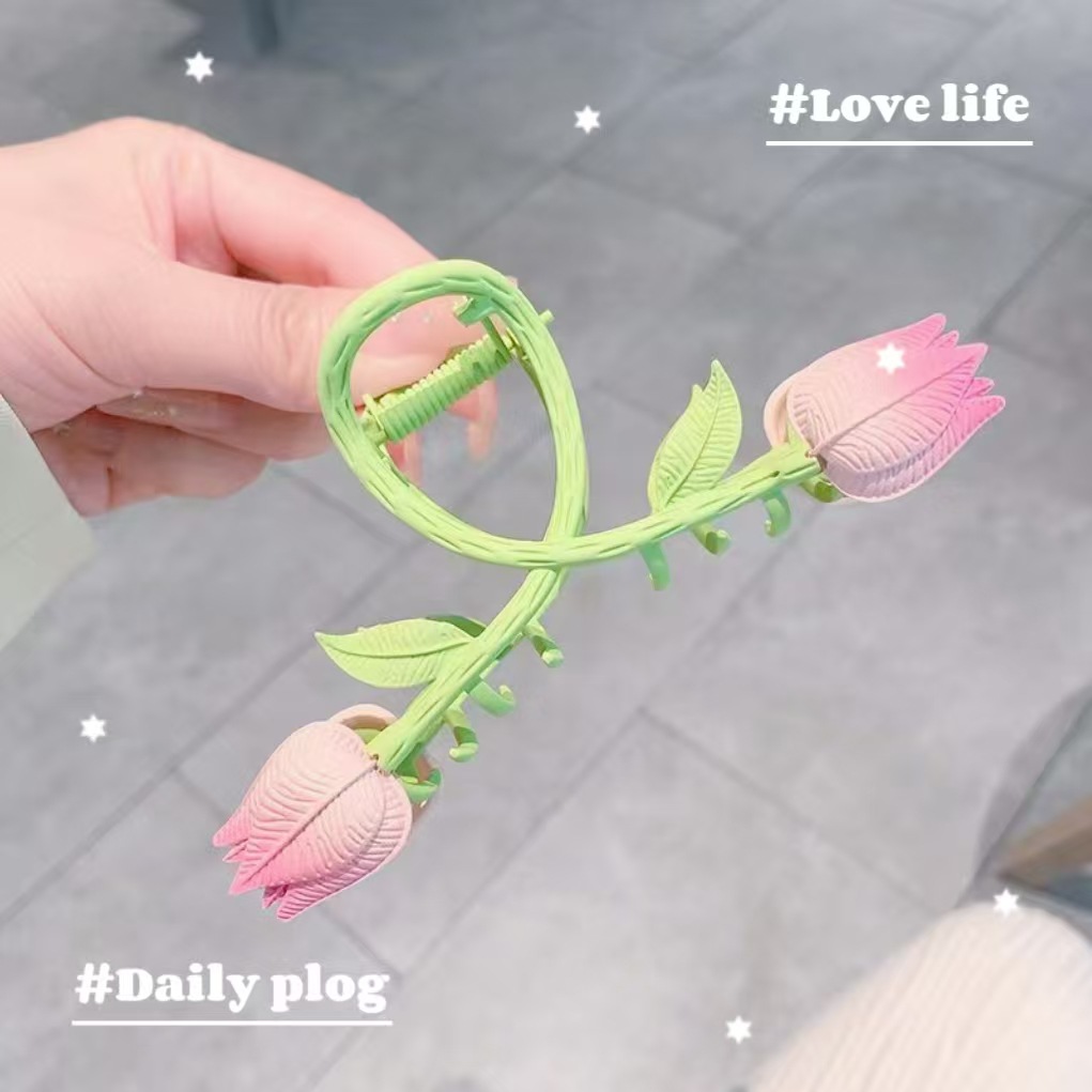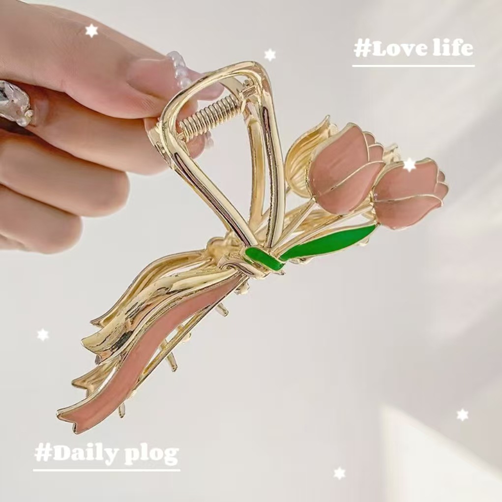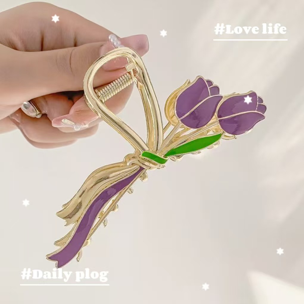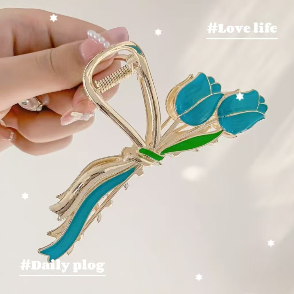 여름 신상 슈퍼 요정 한국식 상어 클립, 투명하고 달콤한 란링 꽃 대형 클립, 뒷머리에 절묘한 머리핀