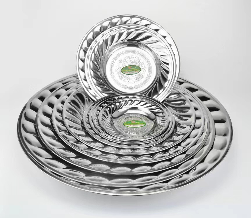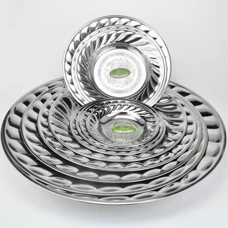 스테인레스 스틸 목련 접시 백합 접시 20-70cm 인쇄 원형 접시 다목적 접시 주방 국경 간 동중아프리카 수출스토어 가기