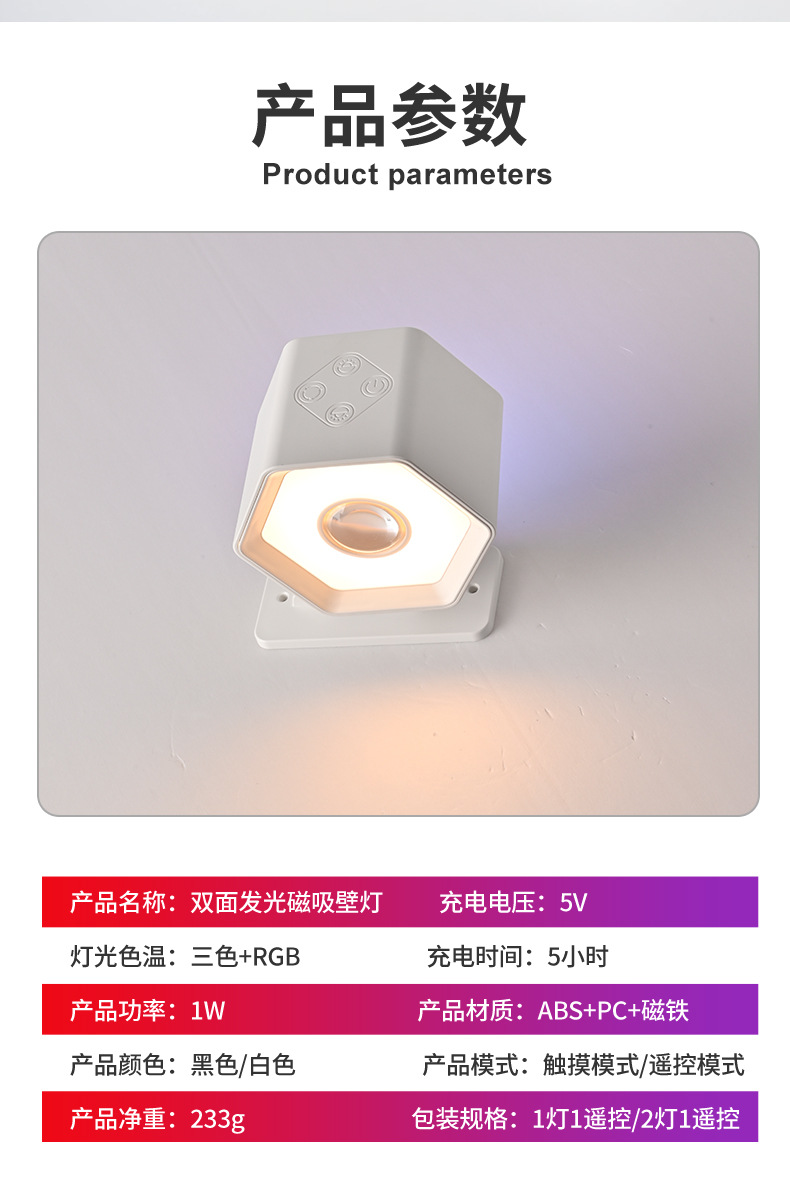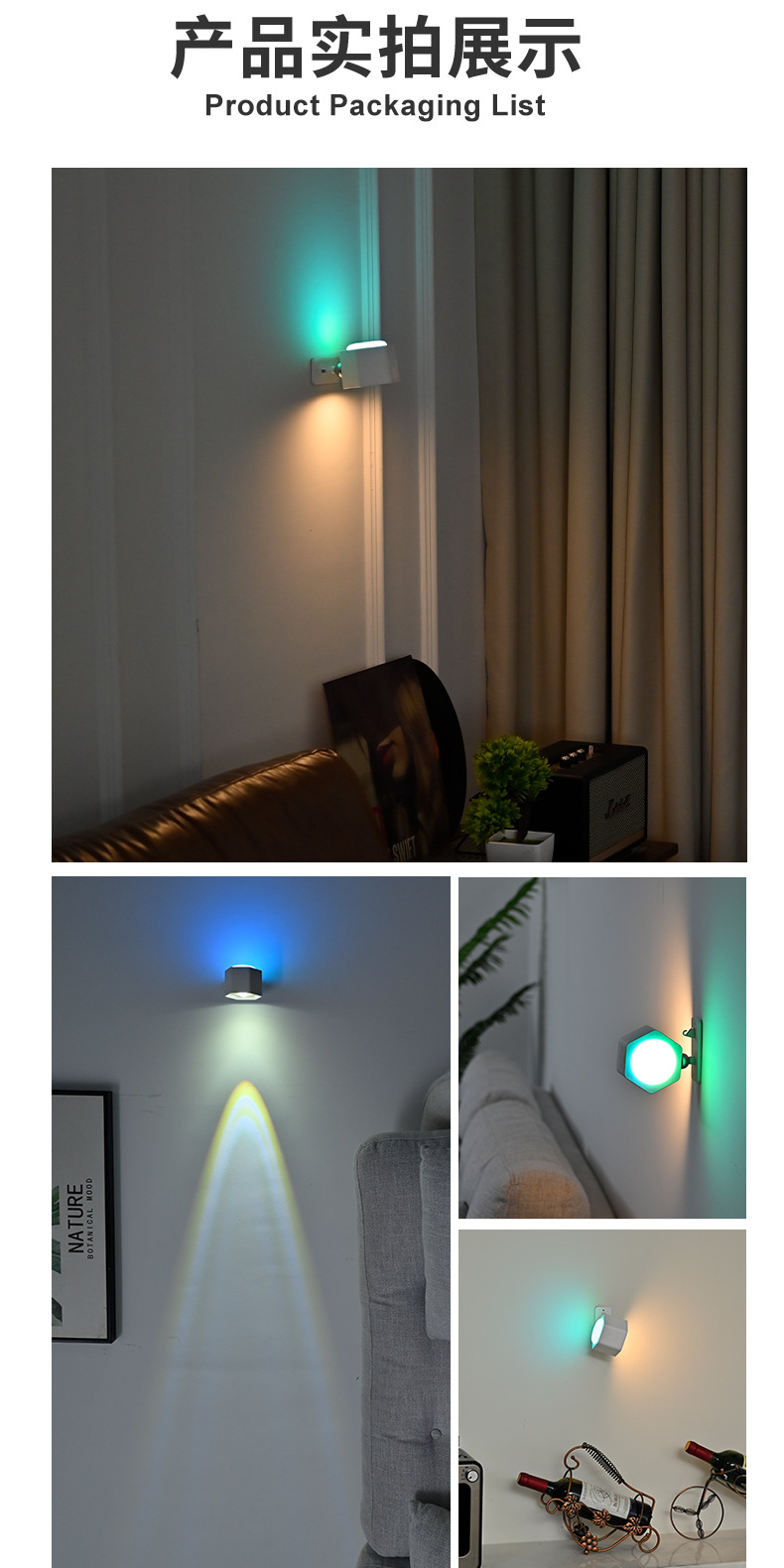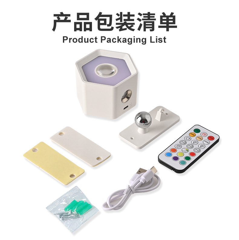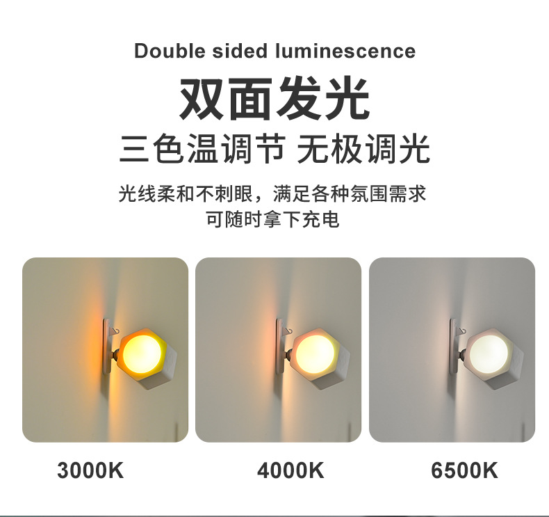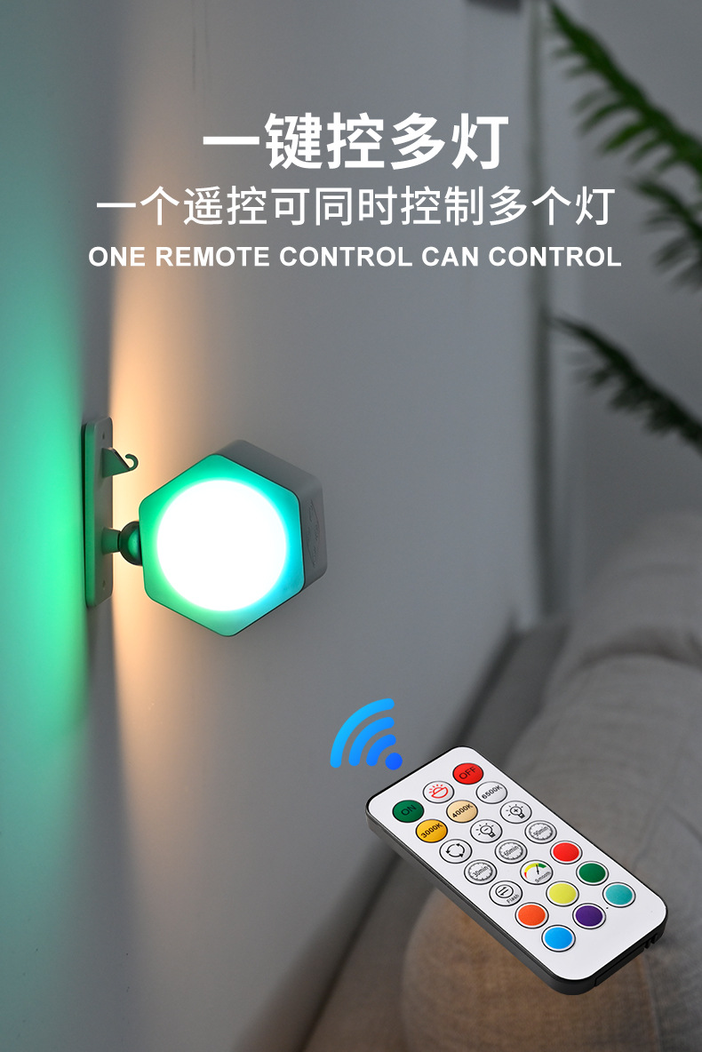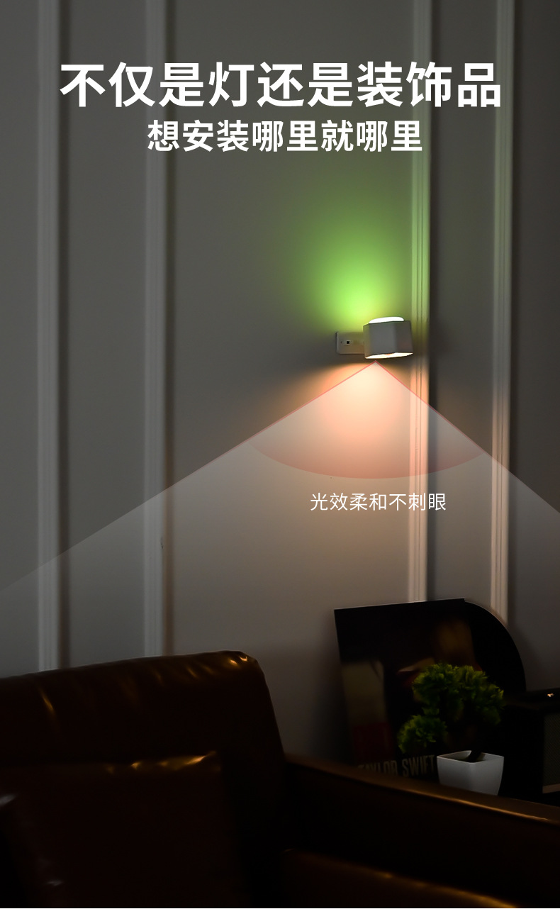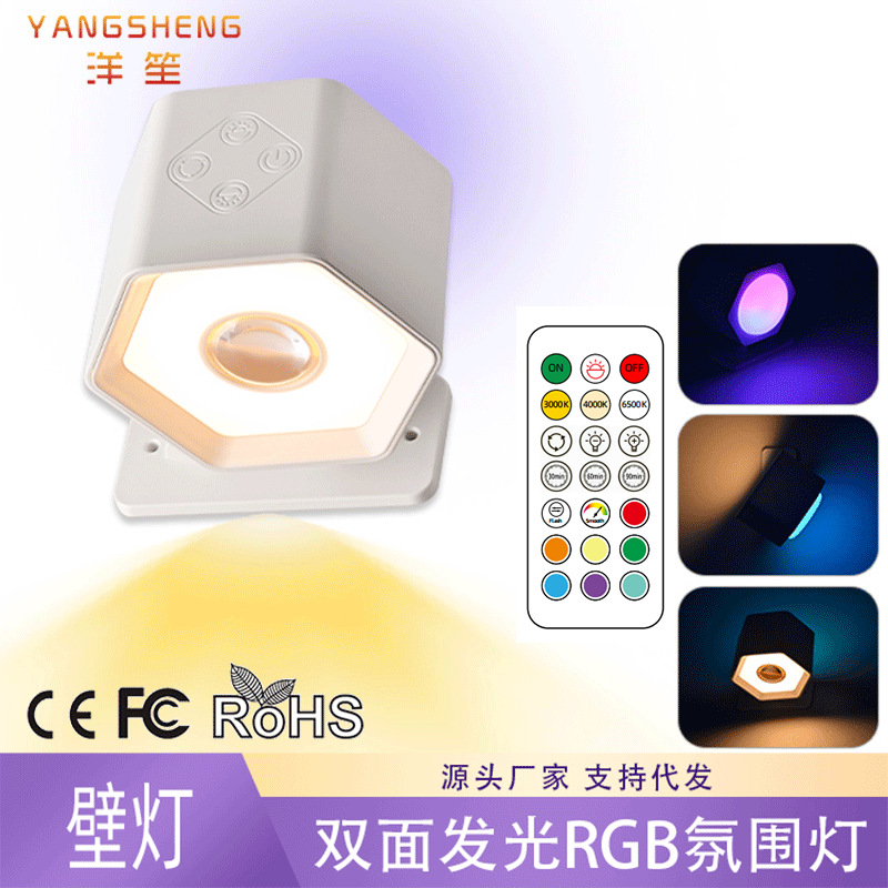 Led 분위기 스포트라이트 벽 램프 헤드 라이트 손전등 야간 테이블 램프 침실 양방향 발광 RGB 장식 플래시 색상 변경
