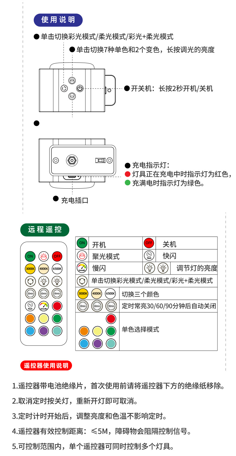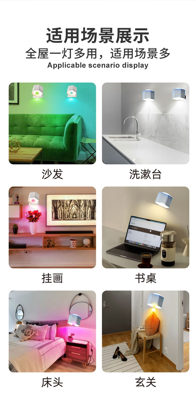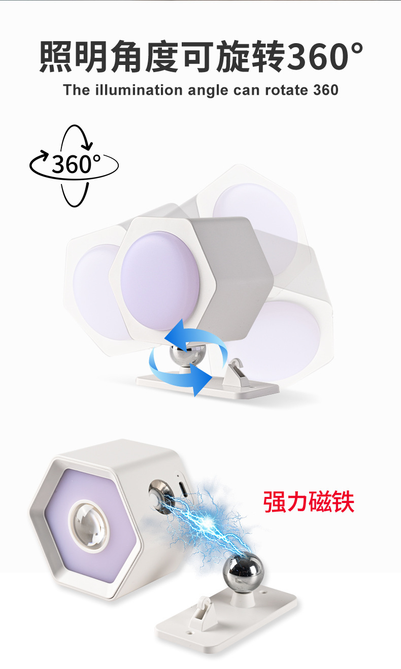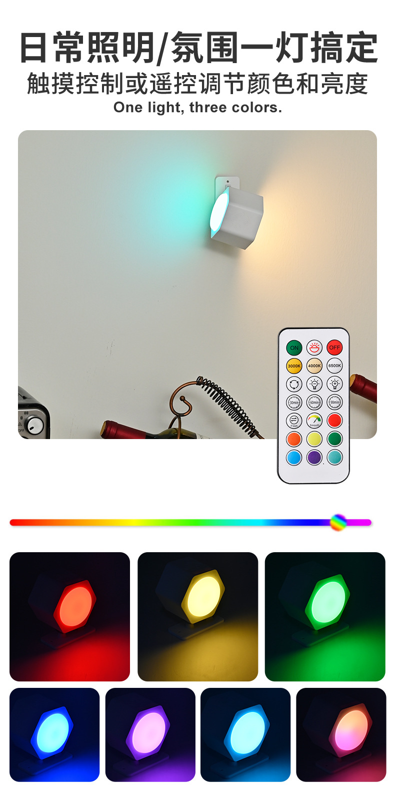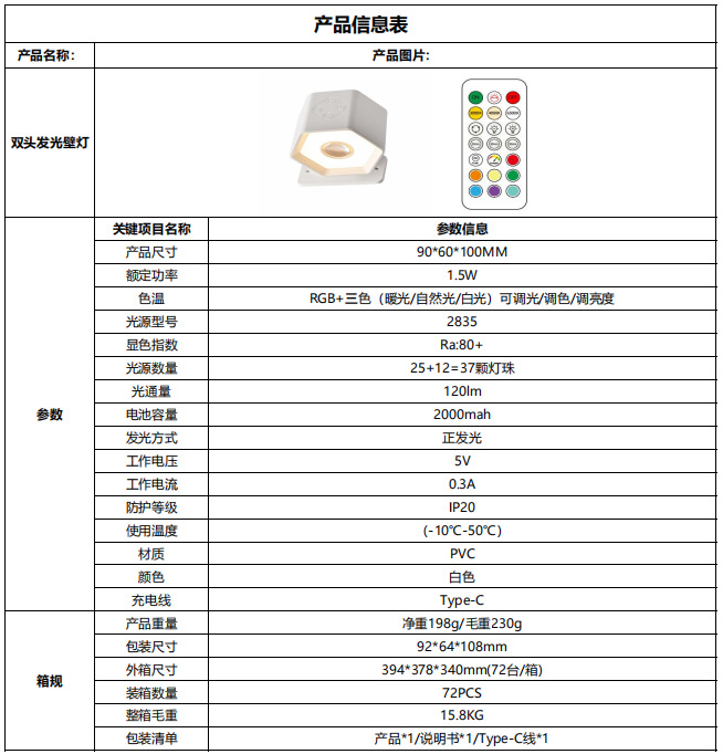Led 분위기 스포트라이트 벽 램프 헤드 라이트 손전등 야간 테이블 램프 침실 양방향 발광 RGB 장식 플래시 색상 변경