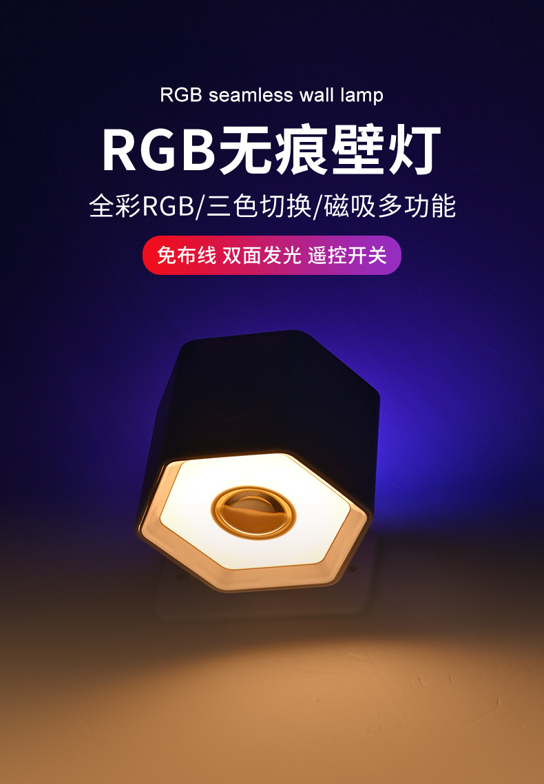 Led 분위기 스포트라이트 벽 램프 헤드 라이트 손전등 야간 테이블 램프 침실 양방향 발광 RGB 장식 플래시 색상 변경스토어 가기