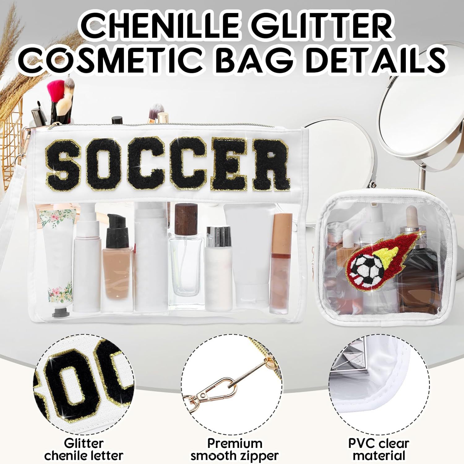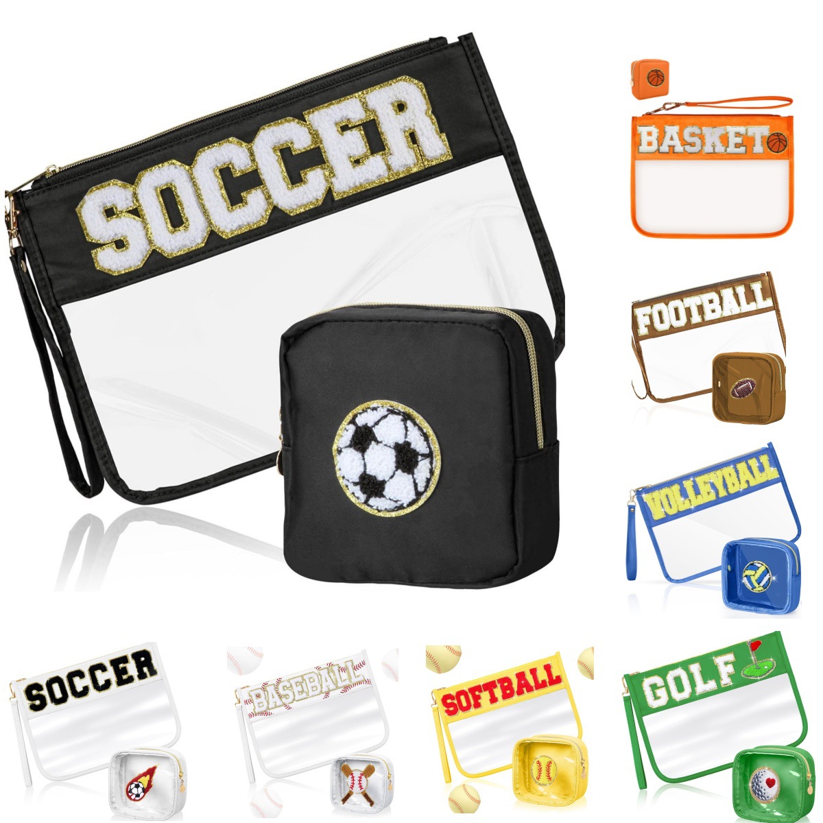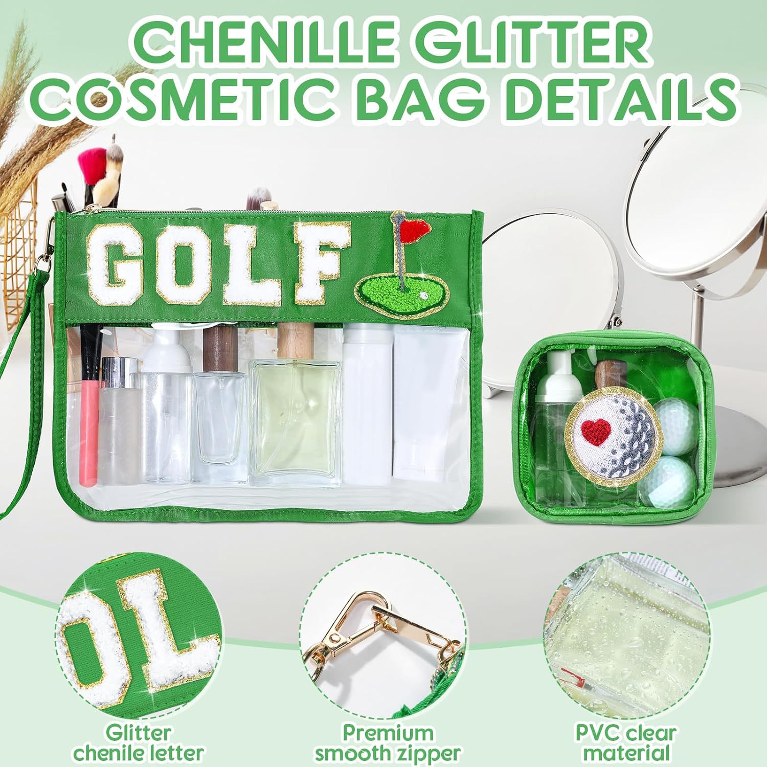 아마존 국경 간 2피스 세트 자수 문자 화장품 가방 PVC 스포츠 스타일 세면 용품 가방 대용량 보관 가방