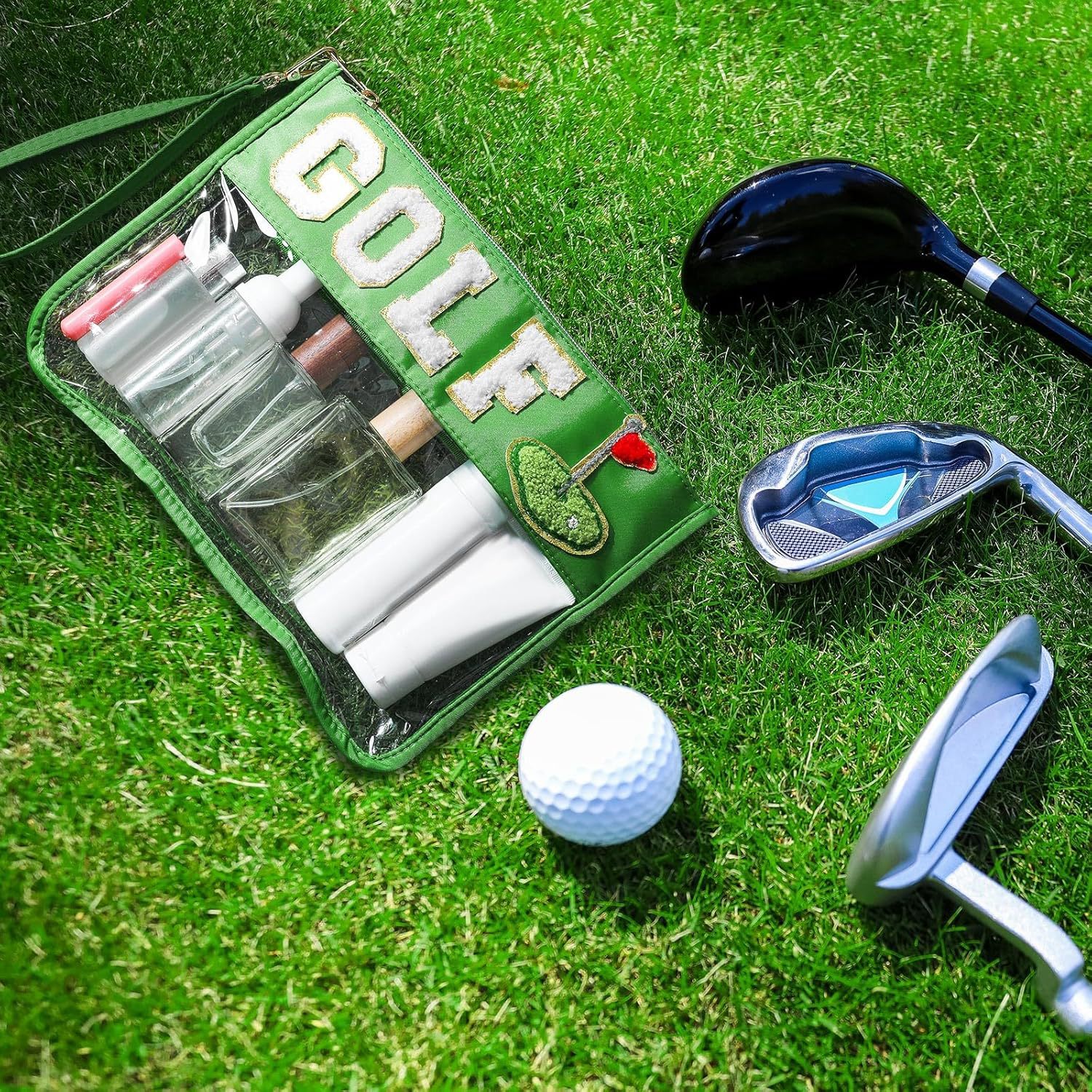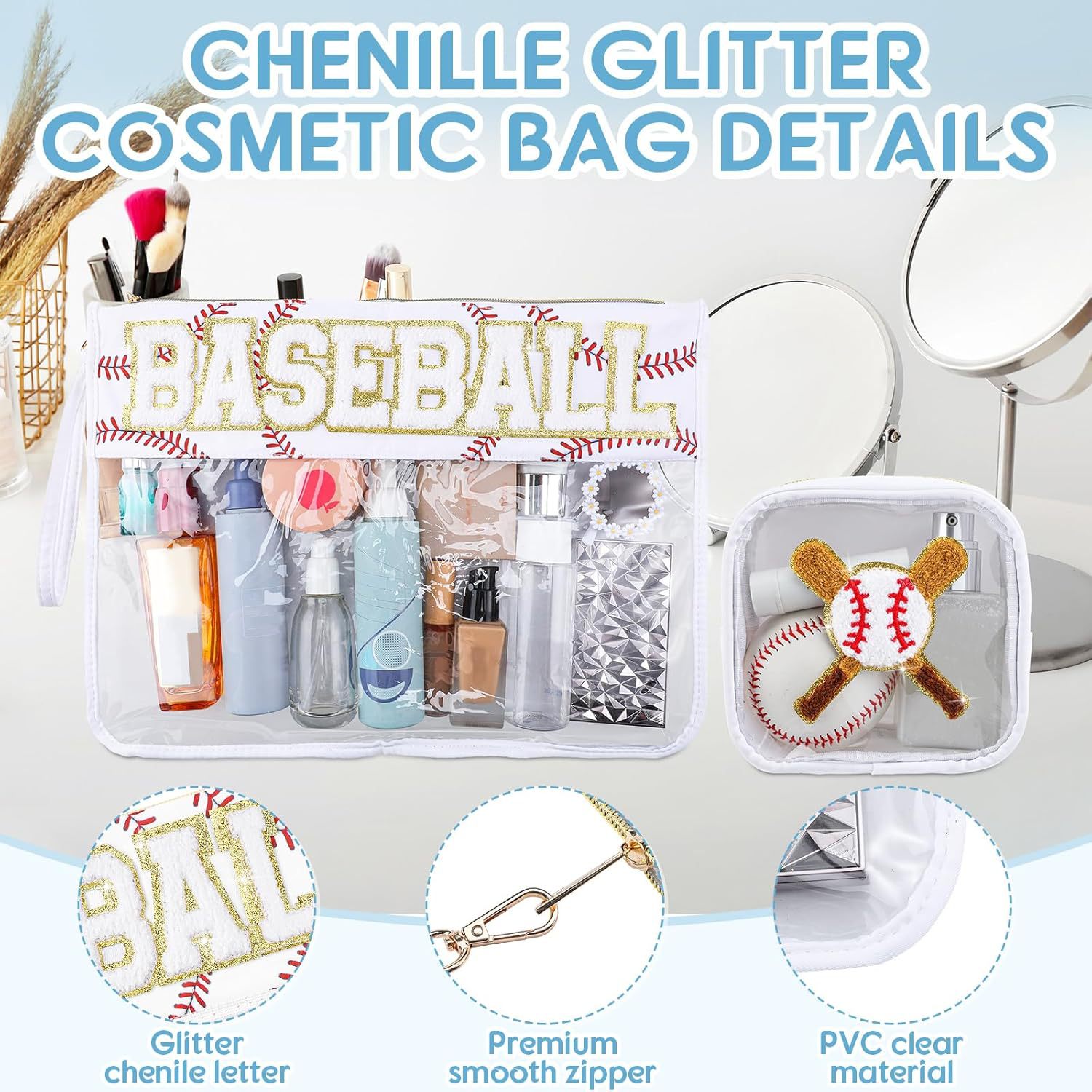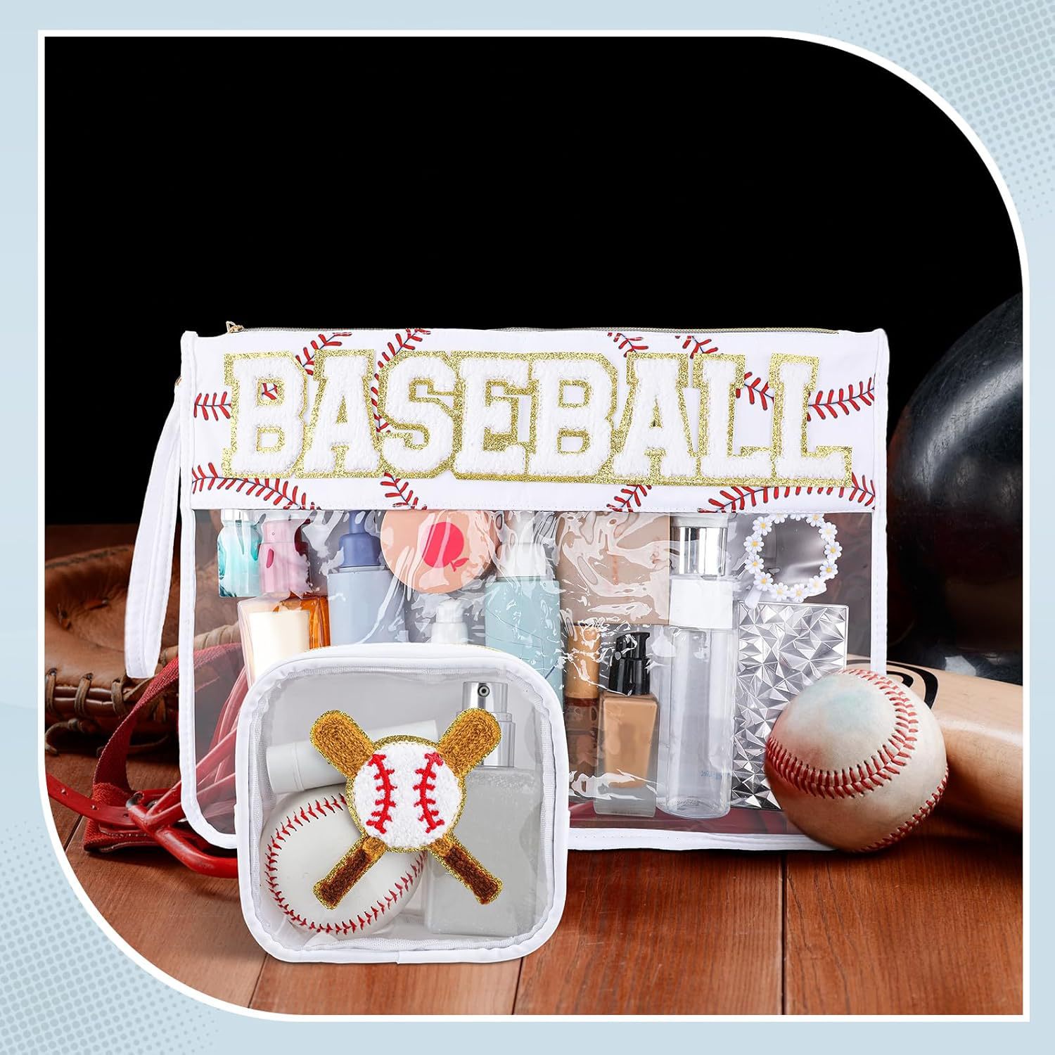 아마존 국경 간 2피스 세트 자수 문자 화장품 가방 PVC 스포츠 스타일 세면 용품 가방 대용량 보관 가방