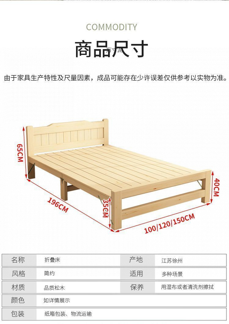원목 무설치 접이식 싱글 침대, 점심시간 임대용 실용적인 원목 침대, 하드보드 침대, 1.2m 소형 침대, 가정용 공장 직판스토어 가기