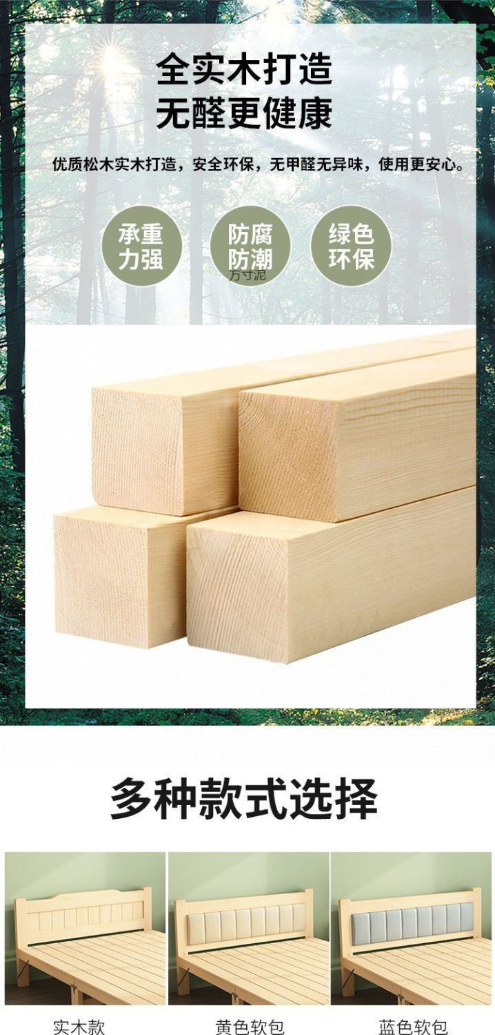 원목 무설치 접이식 싱글 침대, 점심시간 임대용 실용적인 원목 침대, 하드보드 침대, 1.2m 소형 침대, 가정용 공장 직판