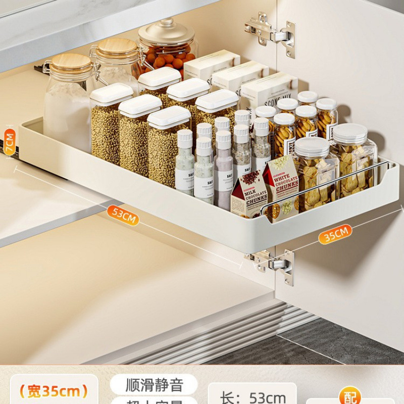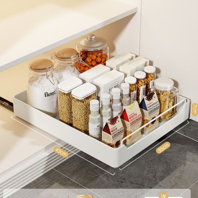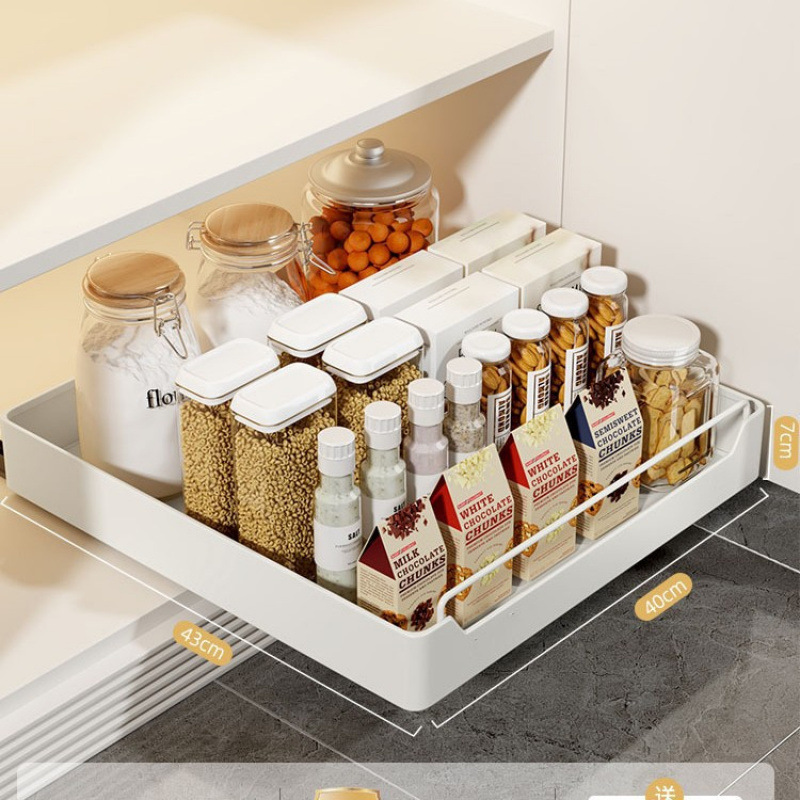 구멍이 없는 주방 캐비닛 서랍 바구니, 싱크대 아래 접시 보관함, 조미료 병 보관함