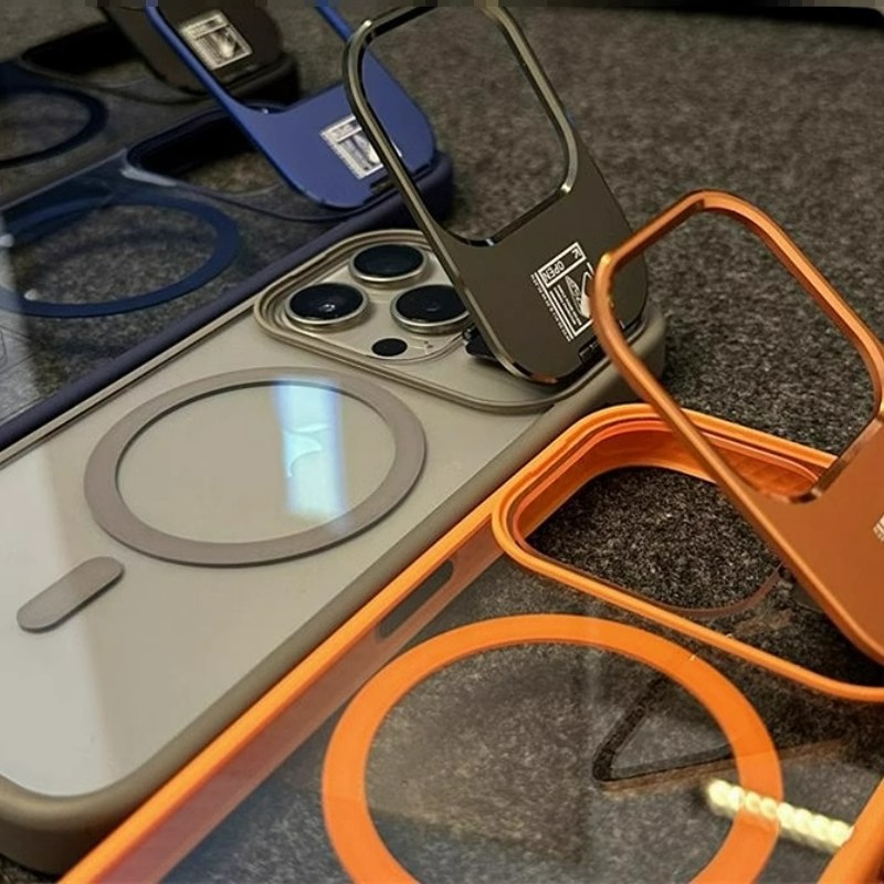 자석식 애플 17 휴대폰 케이스 메탈 렌즈 스탠드 아이폰15프로맥스 고투명 낙하 방지 보호 케이스