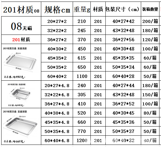 • 201 소재 0.8 두께 50*35*4.8cm (약 770g)