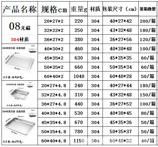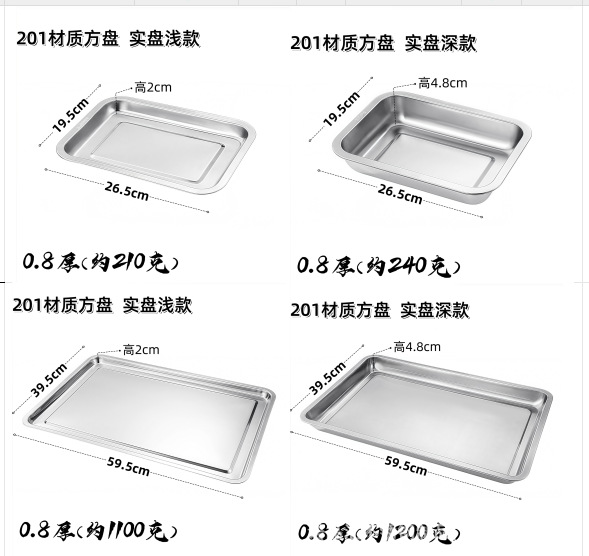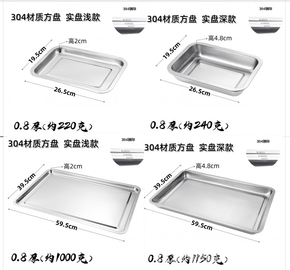 304 스테인리스 사각 접시 상업용 두꺼운 직사각형 호텔 레스토랑 대용량 밥찜기 비자성 트레이스토어 가기