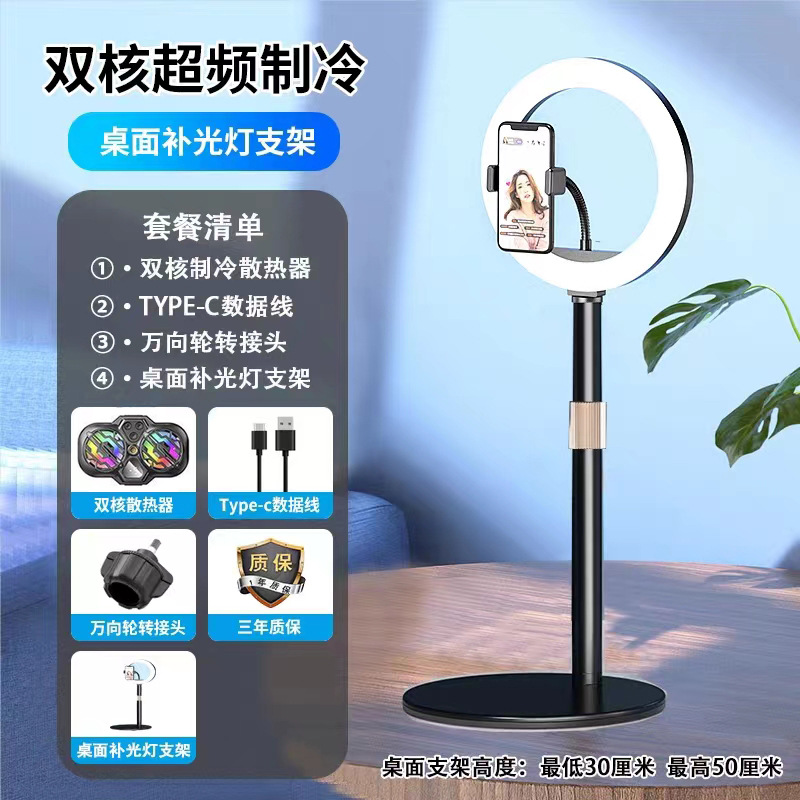 • [데스크탑 라이브 방송] 듀얼 코어 냉각 丨 3단 조절丨 디지털 디스플레이 + 금속 브래킷 + 필 라이트