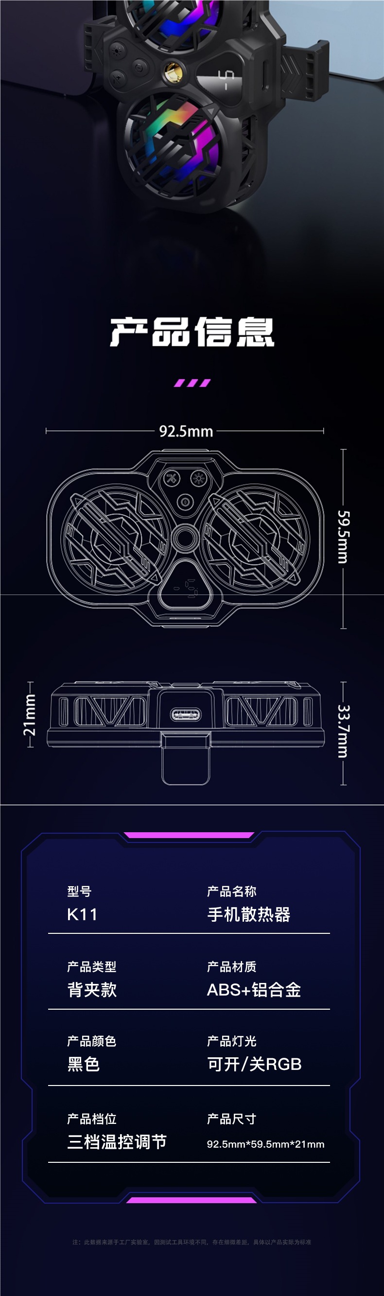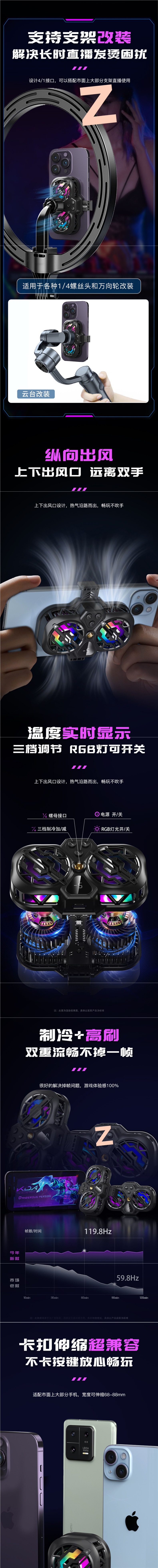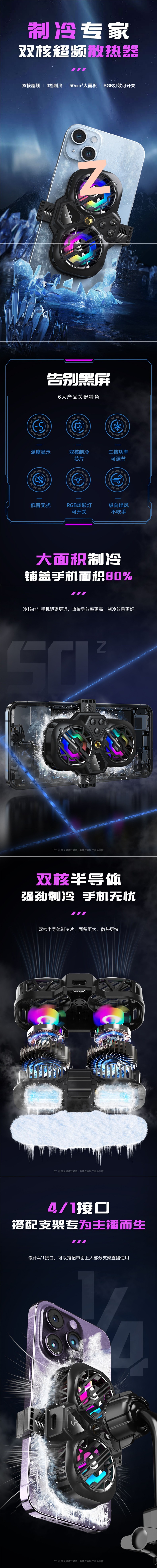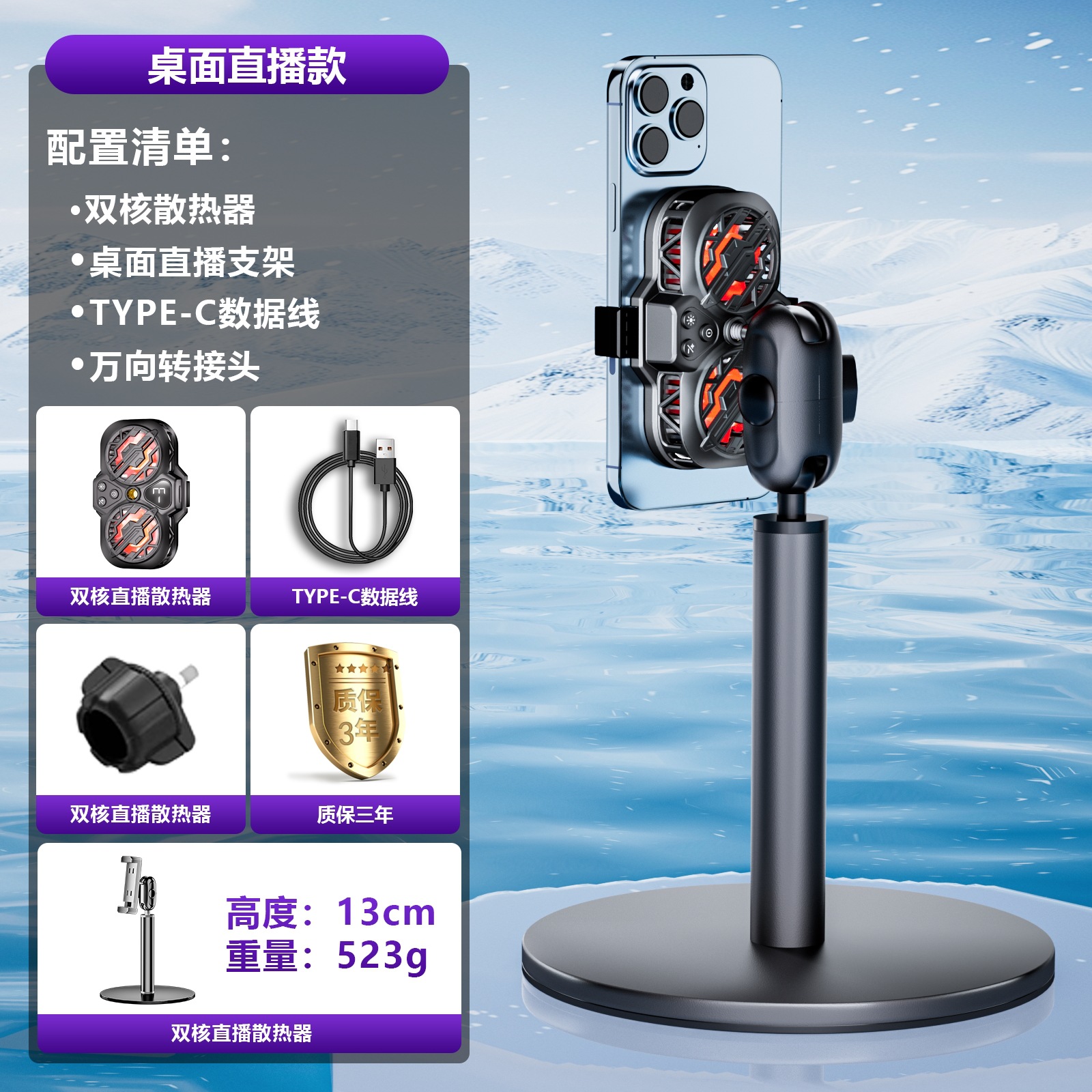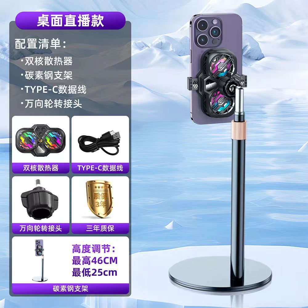 라이브 방송] 휴대폰 라디에이터 냉각 반도체 냉동 초저소음 얼음 밀봉 백 클립 데스크탑 스탠드 삼각대 메인