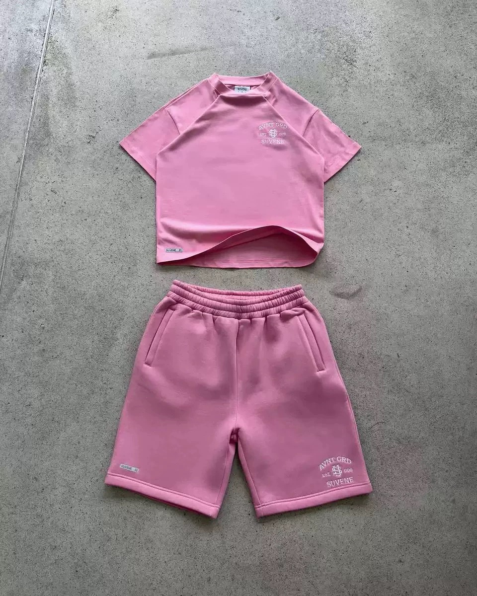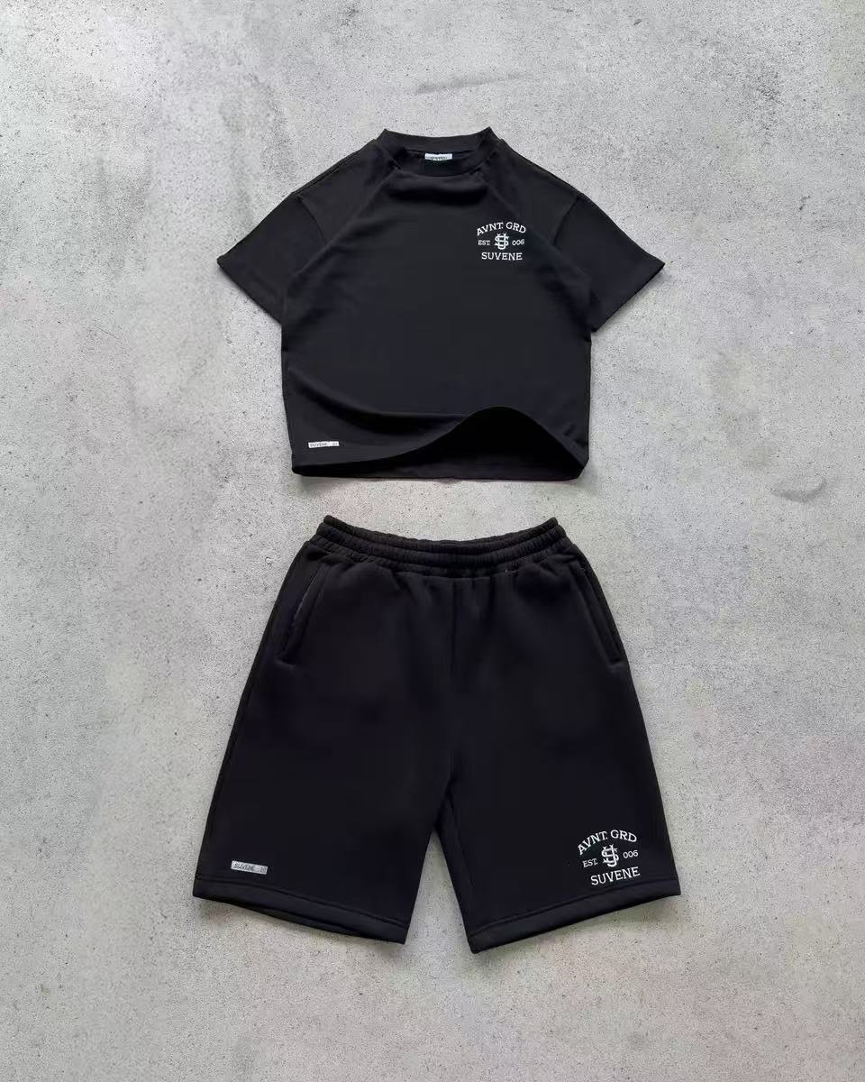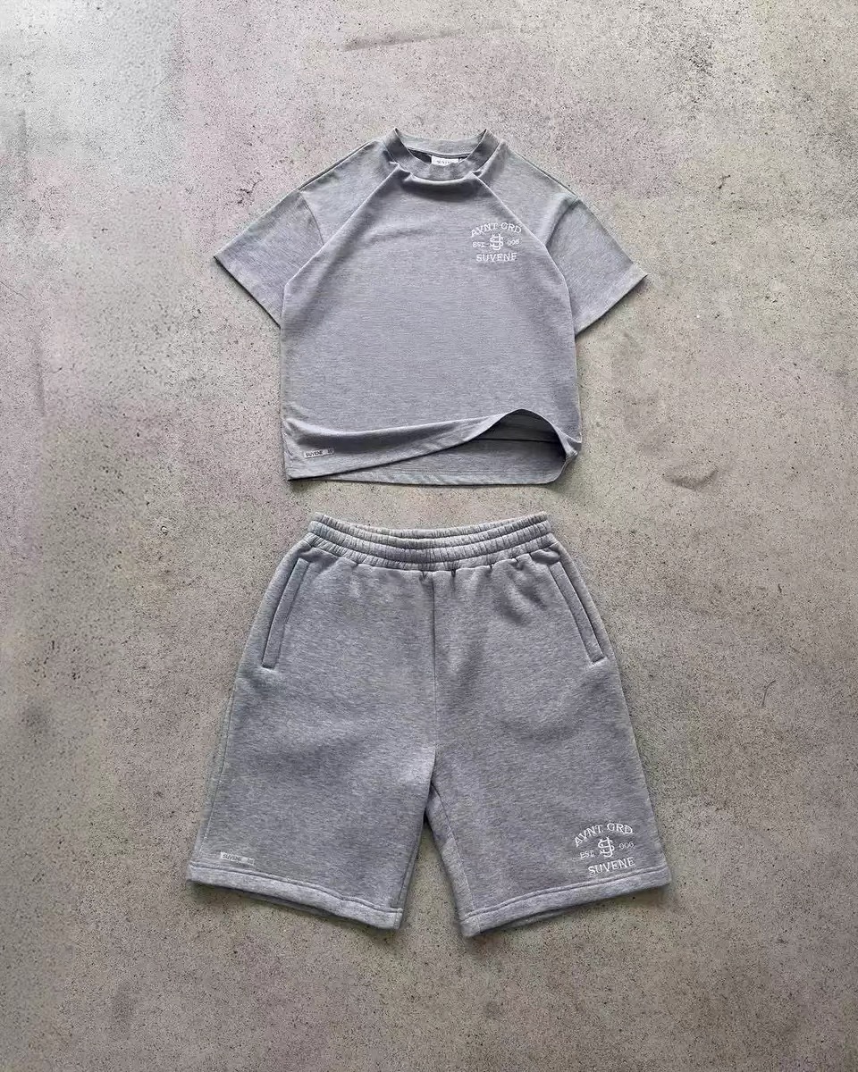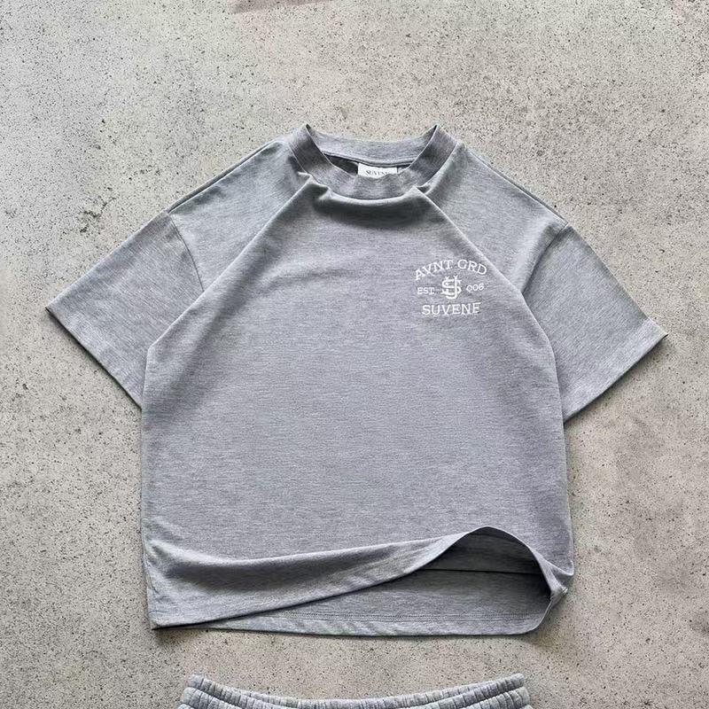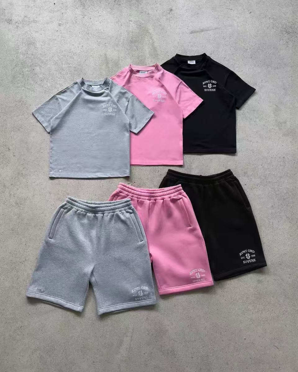 2312 # 십대 커플 캐주얼 와이드 레그를 위한 국경 간 2025 새로운 여름 S 자수 반팔 스포츠 슈트스토어 가기