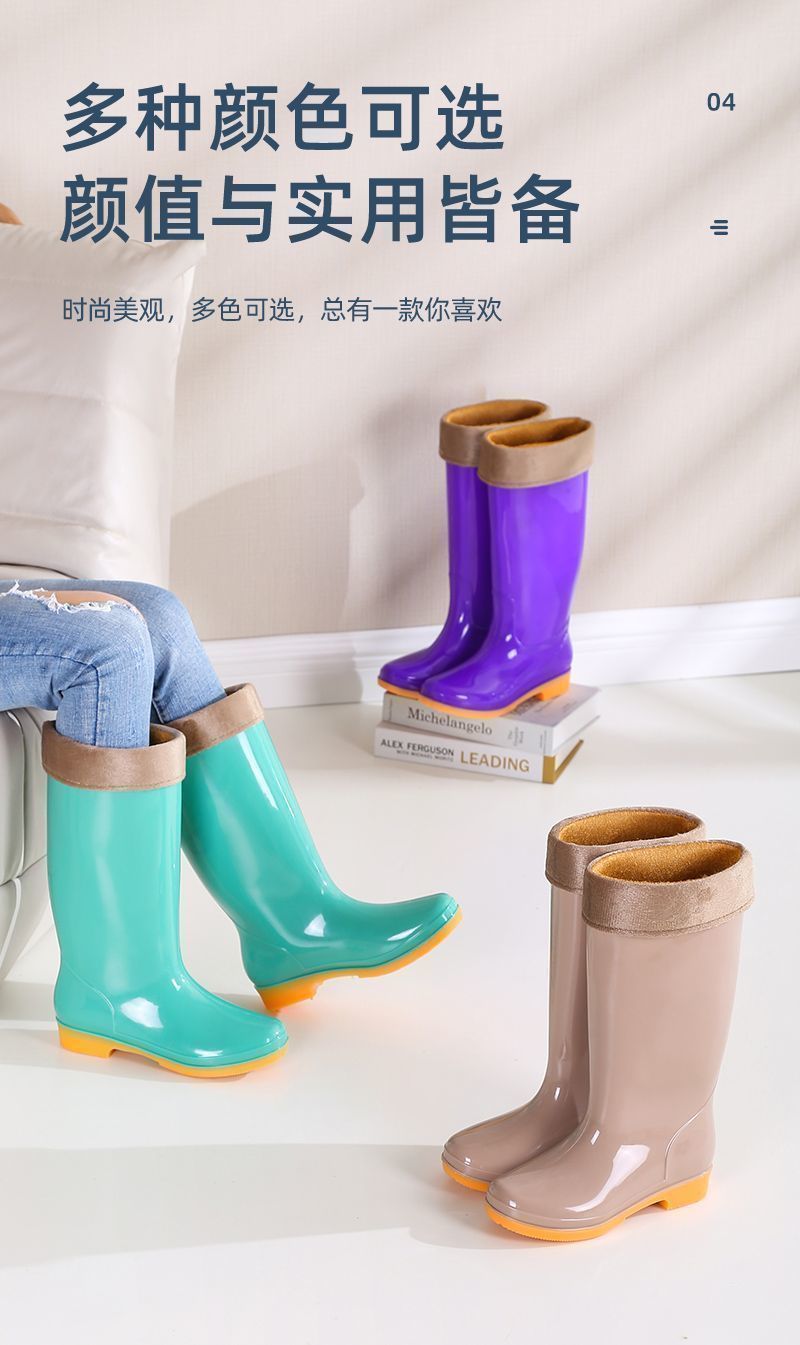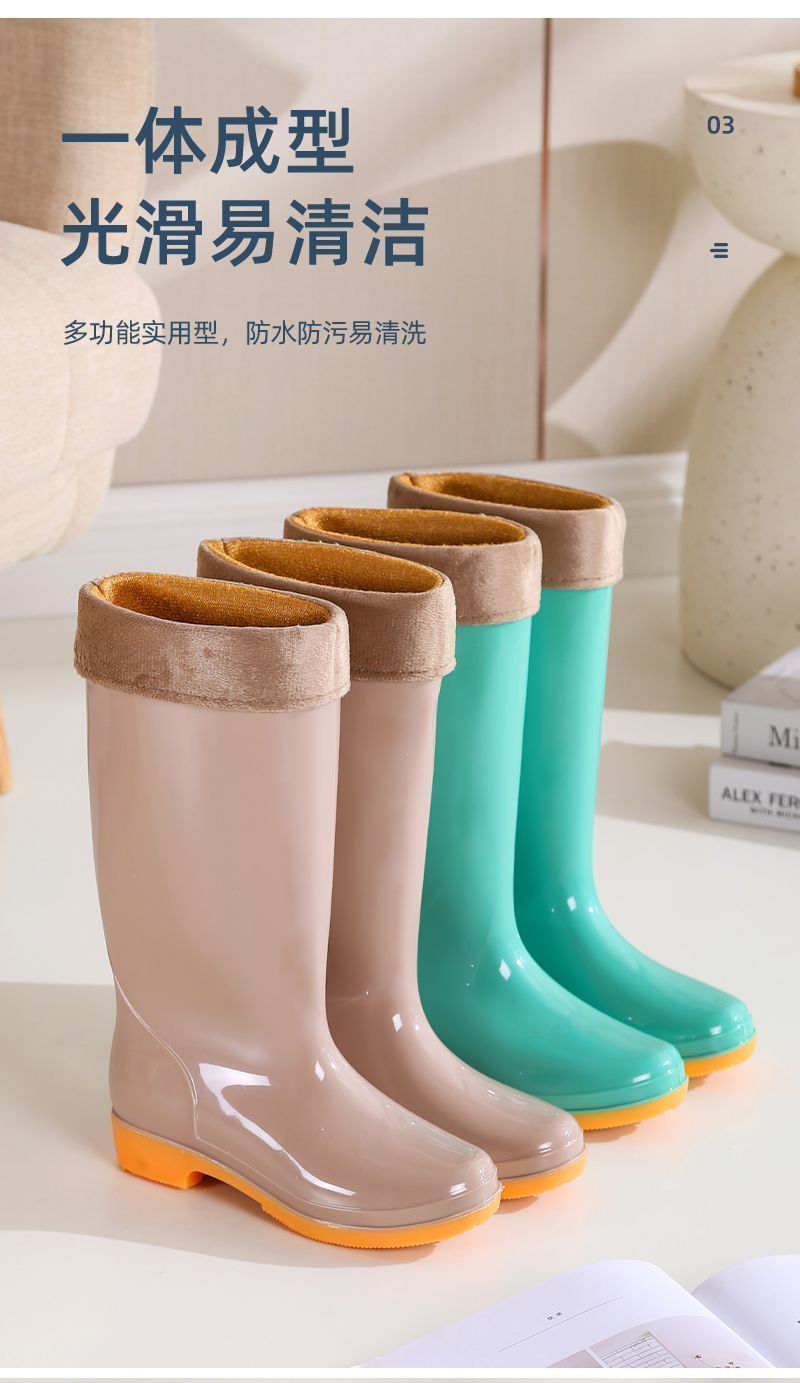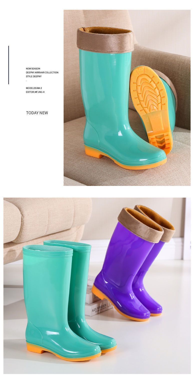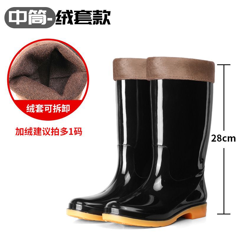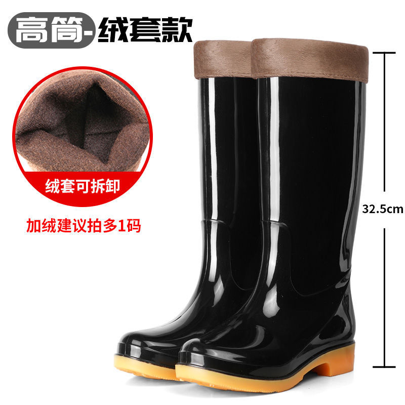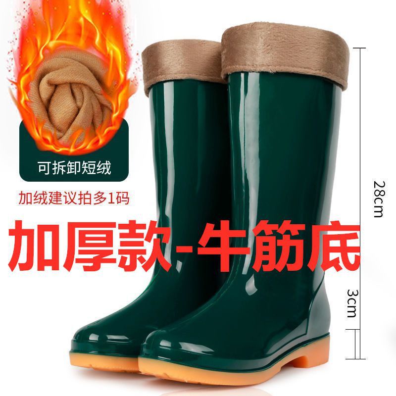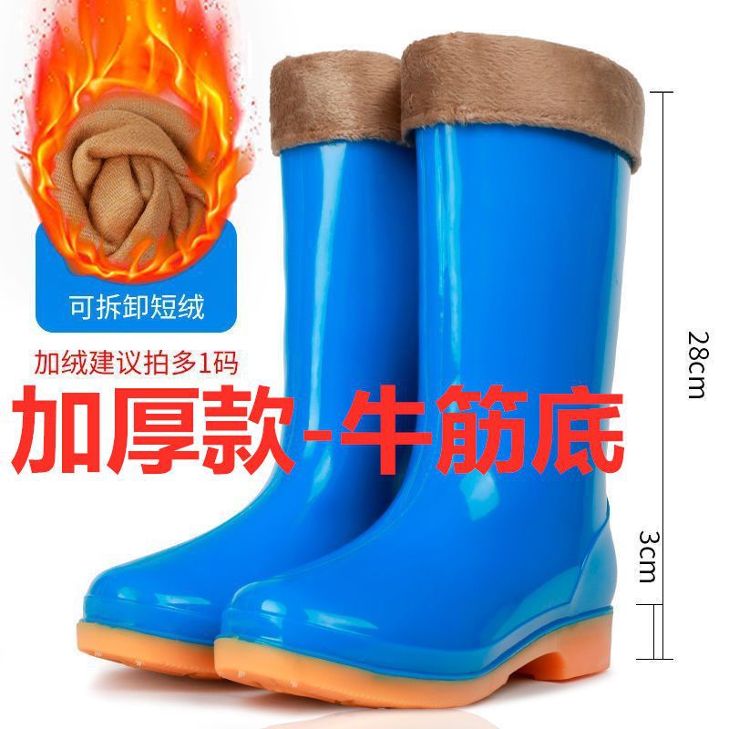 하이탑 쇠고기 힘줄 플러스 벨벳 코튼 레인부츠, 레인부츠, 방수신발, 고무신, 덧신, 워터부츠, 여성성인 주방 겨울여름